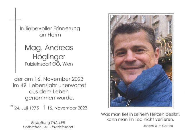 16.11.2023: Andreas Höglinger, Wien Meidling, 49. Lj.