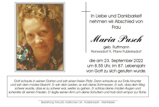 23.09.2022: Maria Pusch, Pernersdorf 9, 87. Lj