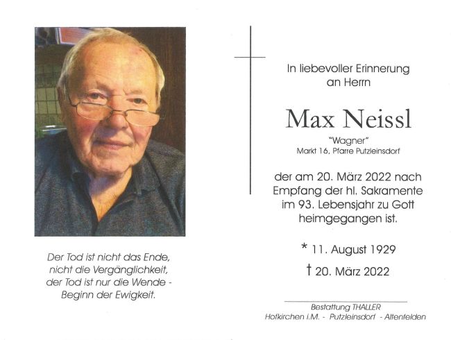 20.03.2022: Maximilian Neissl, Markt 16, 93. Lj
