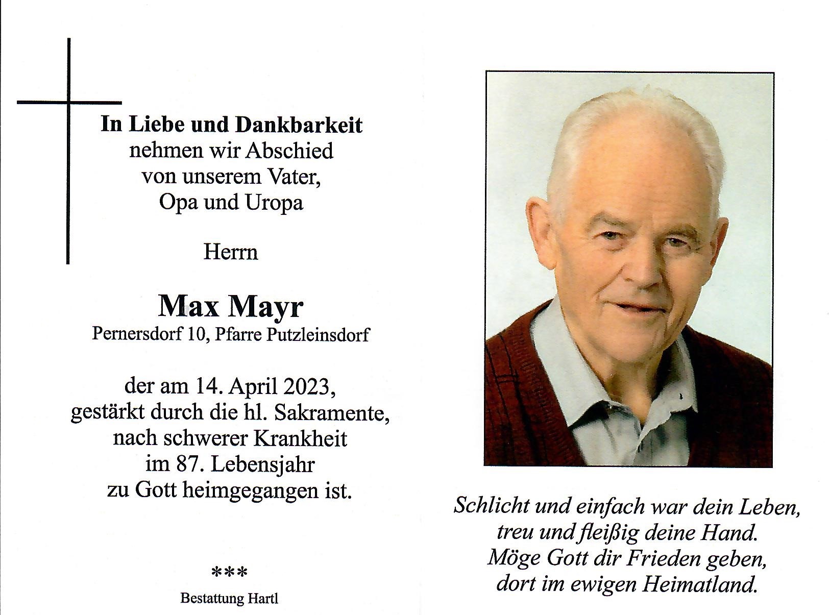 14.04.2023: Maximilian Mayr, Pernersdorf 10, 87. Lj.