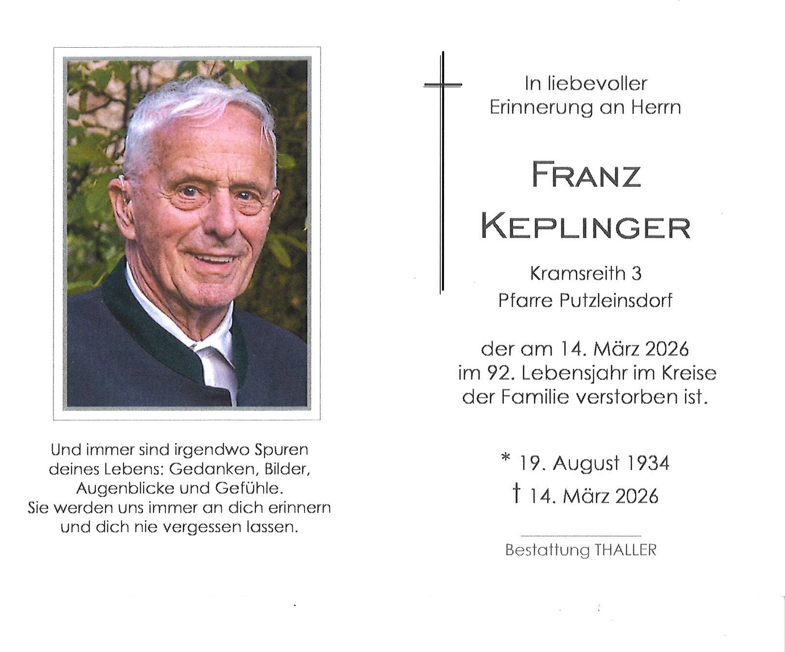 14.03.2026: Franz Keplinger, Kramsreith 3, 92. Lj.
