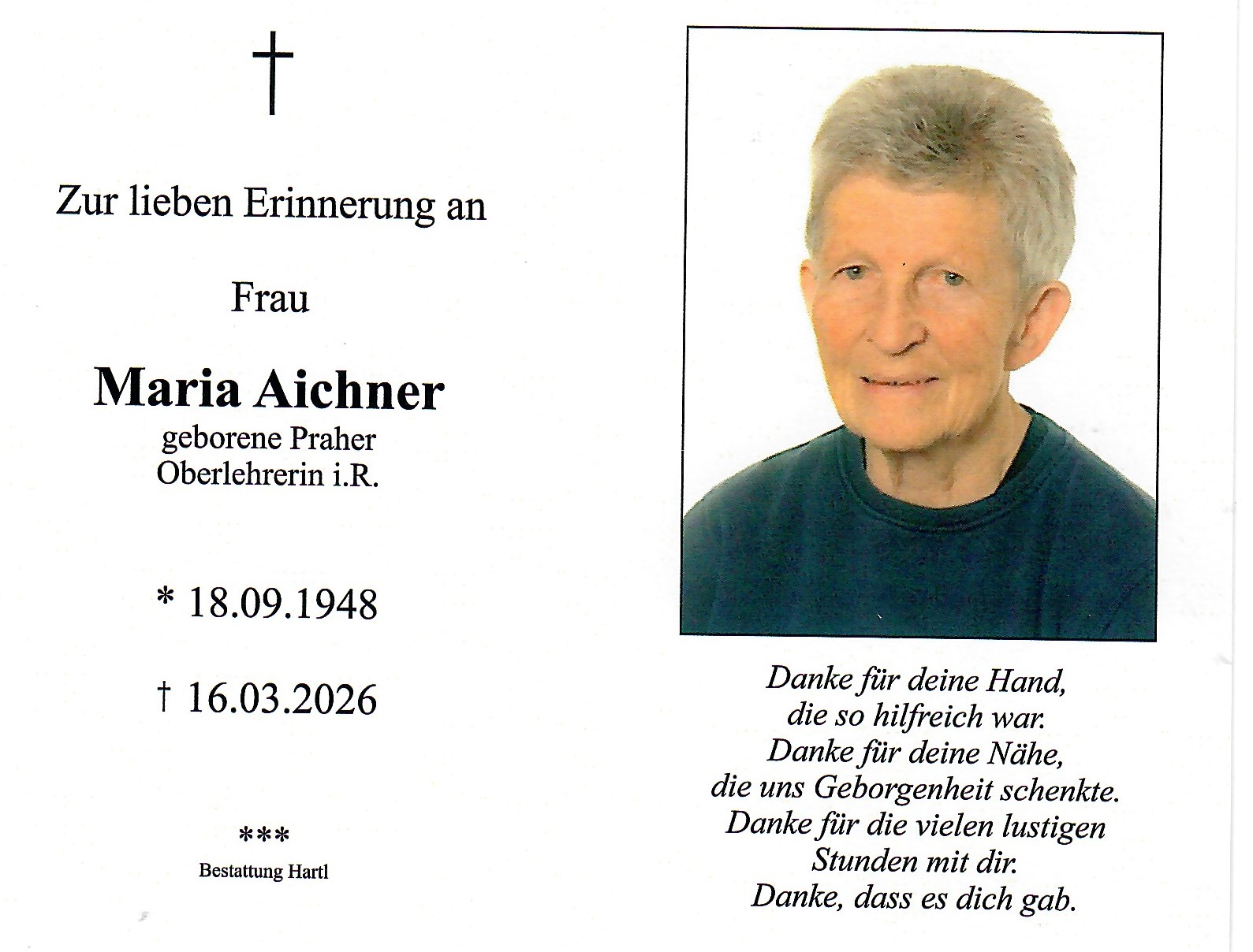 16.03.2026: Maria Aichner, Hanriederstraße 5, 78. Lj.