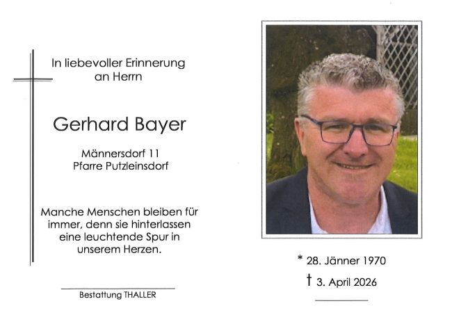 03.04.2026: Gerhard Bayer, Männersdorf 11, 57. Lj.