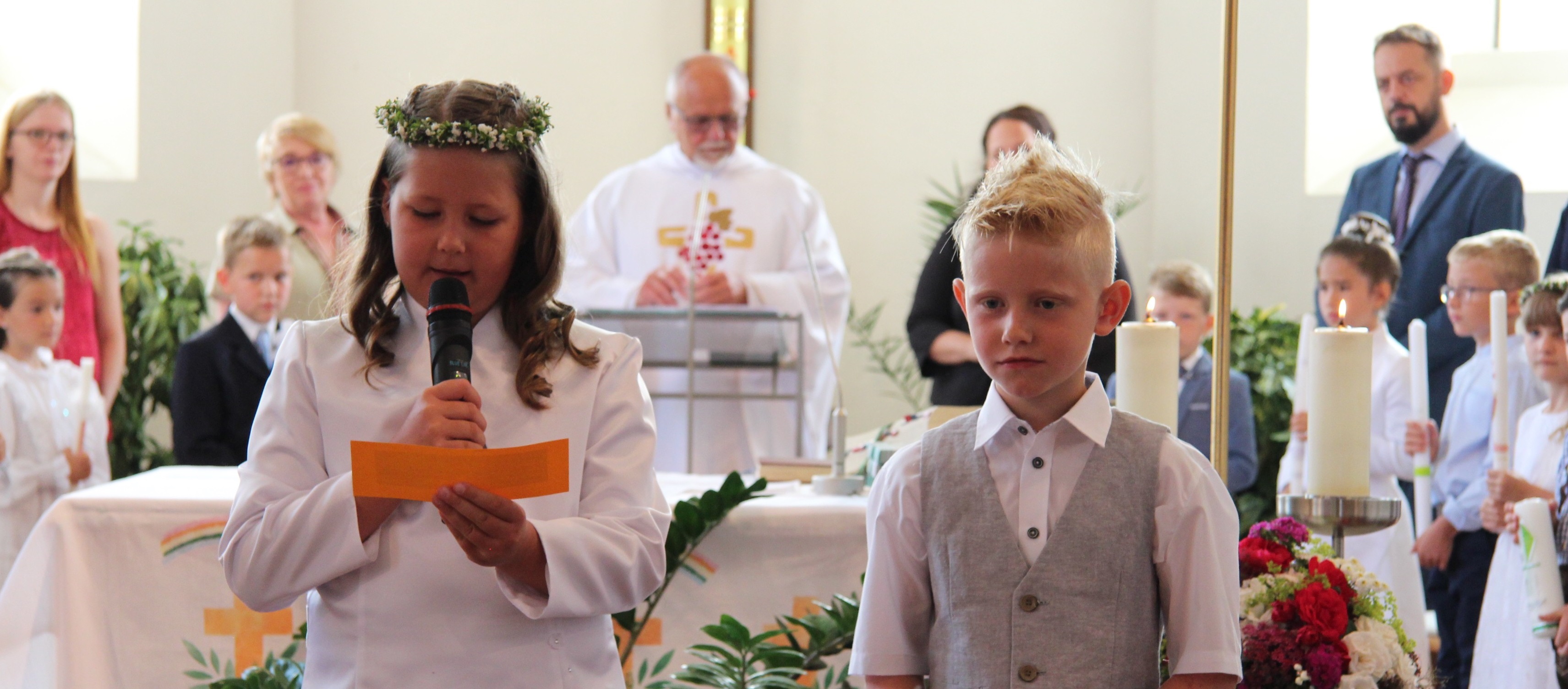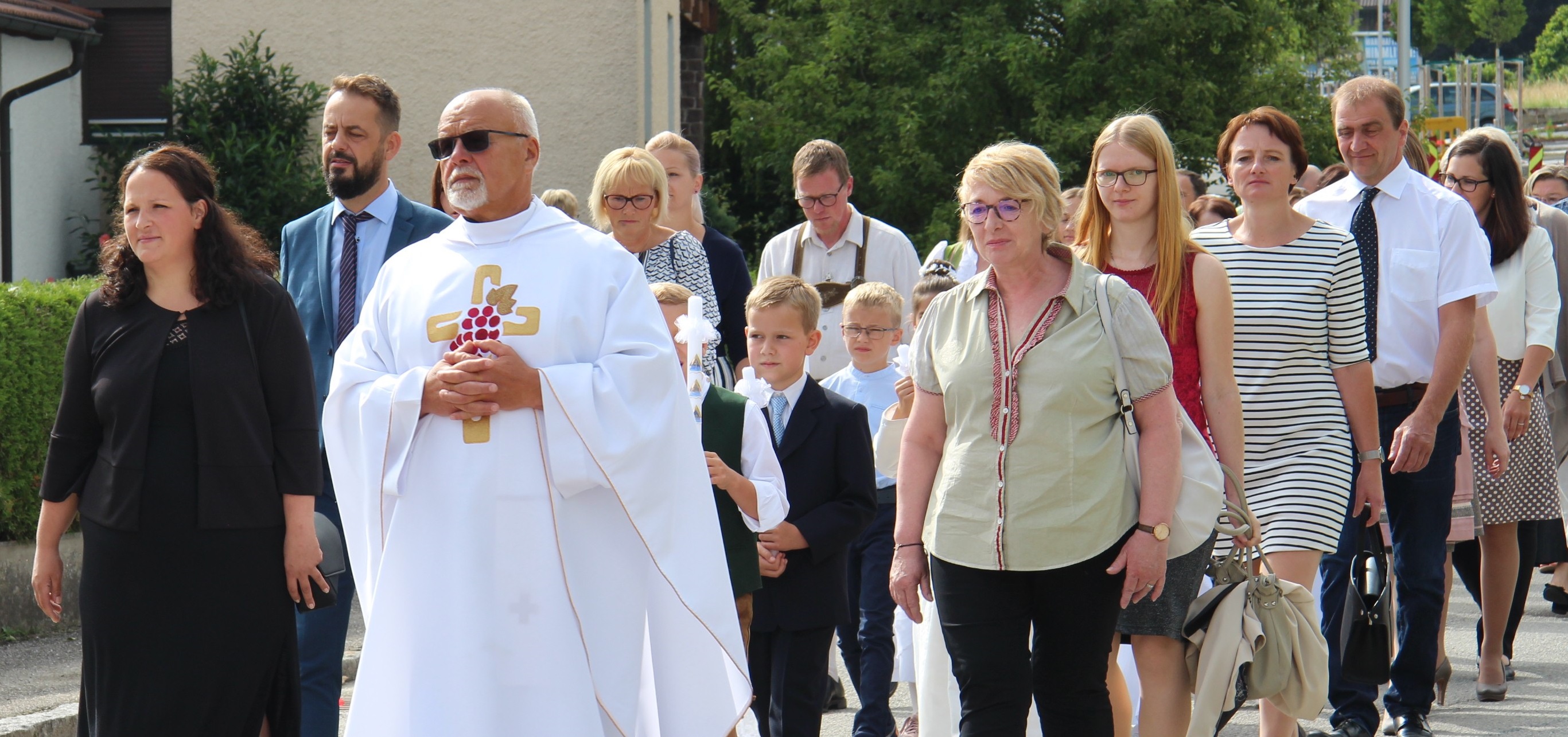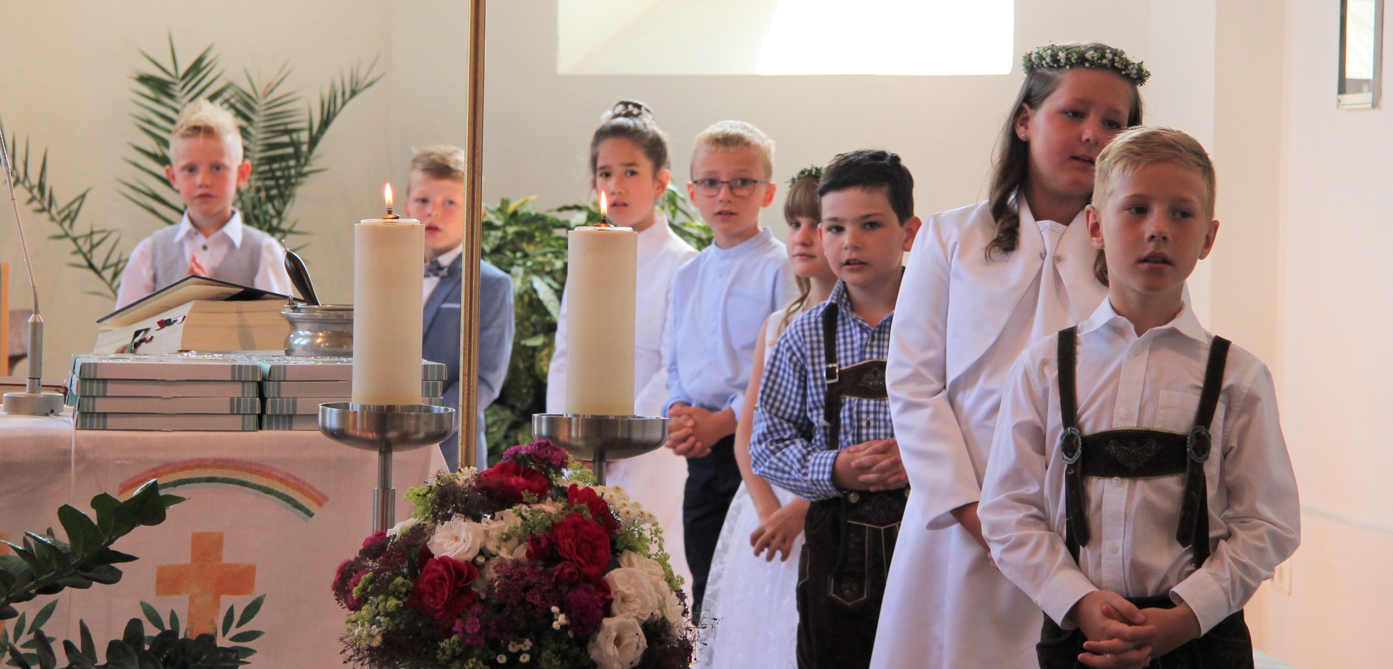Am 26. Juni feierten 16 Kinder die Hl. Erstkommunion. Die Kinder zogen mit ihren Eltern in die Kirche ein. Im feierlichen Gottesdienst mit Pfarrer Thaddäus, erlebten die Kinder und Eltern ein schönes Fest. . Bei der anschließenden Agape und bei strahlendem Sonnenschein feierten alle gemeinsam auf dem Kirchplatz weiter. Ein herzliches Dankeschön an das Erstkommunionteam und an alle, die zu diesem Fest beigetragen haben.