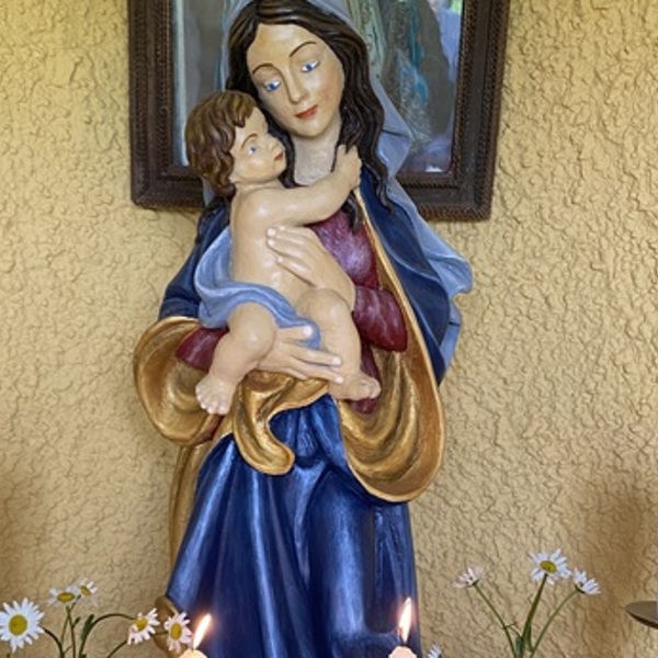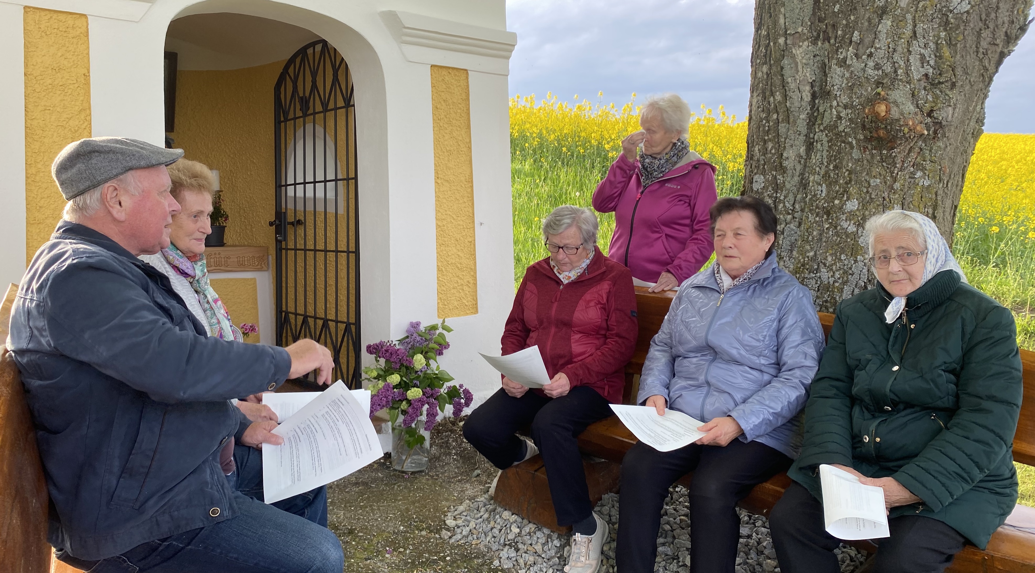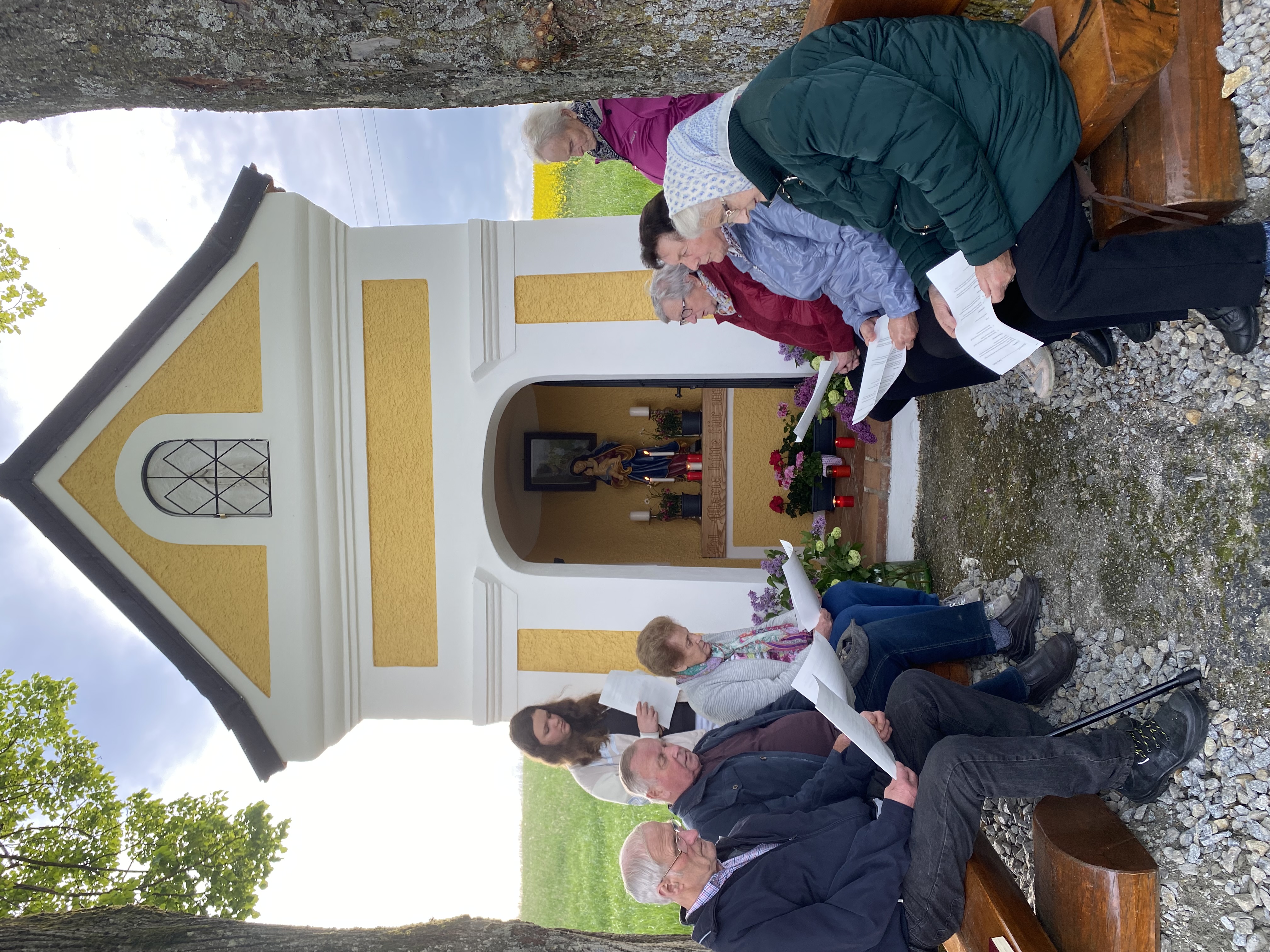 Heute haben wir die neue Marienfigur in der Kapelle der Familie Eder in Eggenberg innerhalb einer Maiandacht gesegnet .