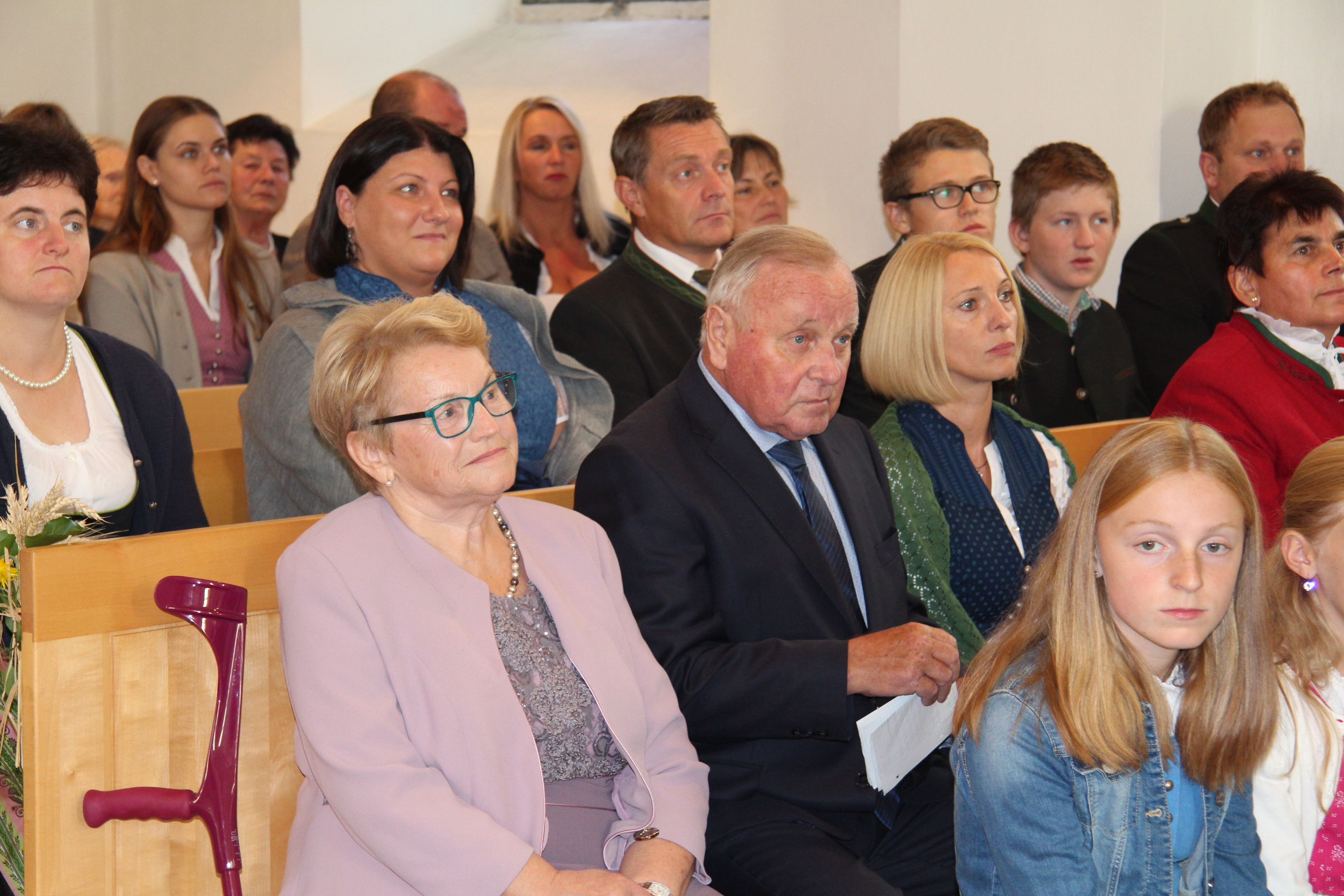 Fredi Steininger gratuliert im Namen der Diözese mit einen kleinen Präsent und einem großen Applaus für das jahrzehntelanges Engagement!