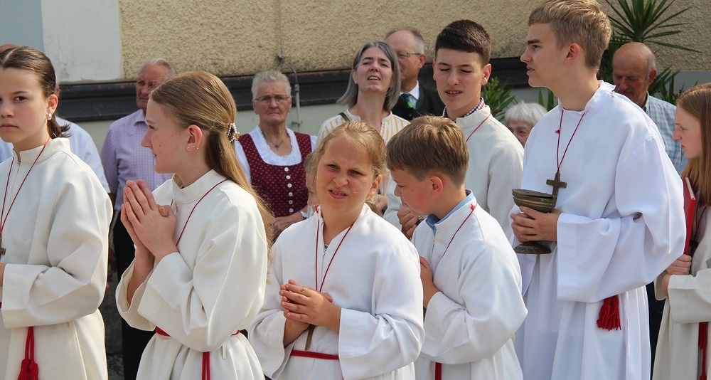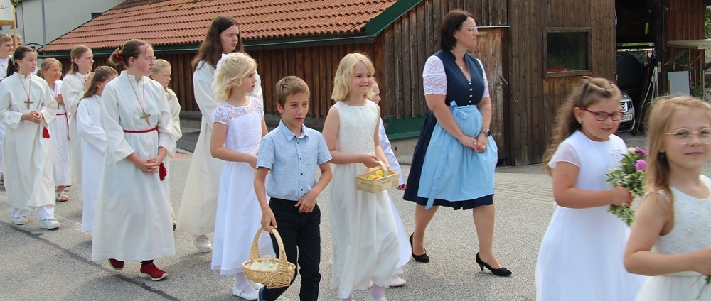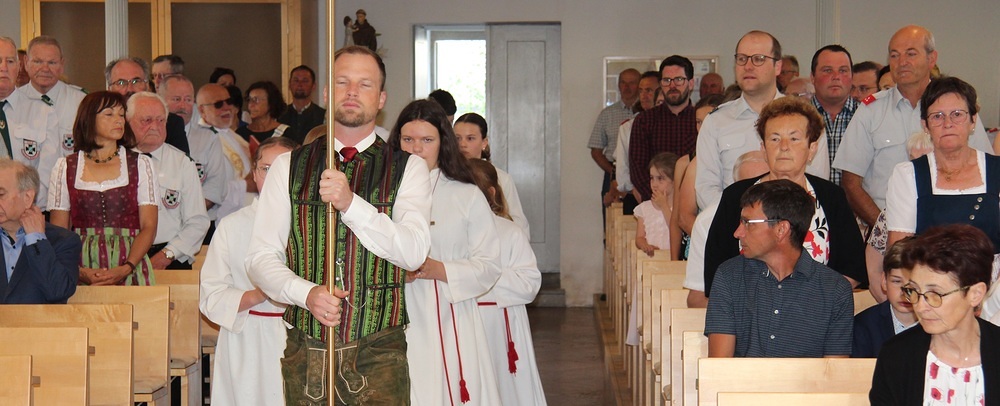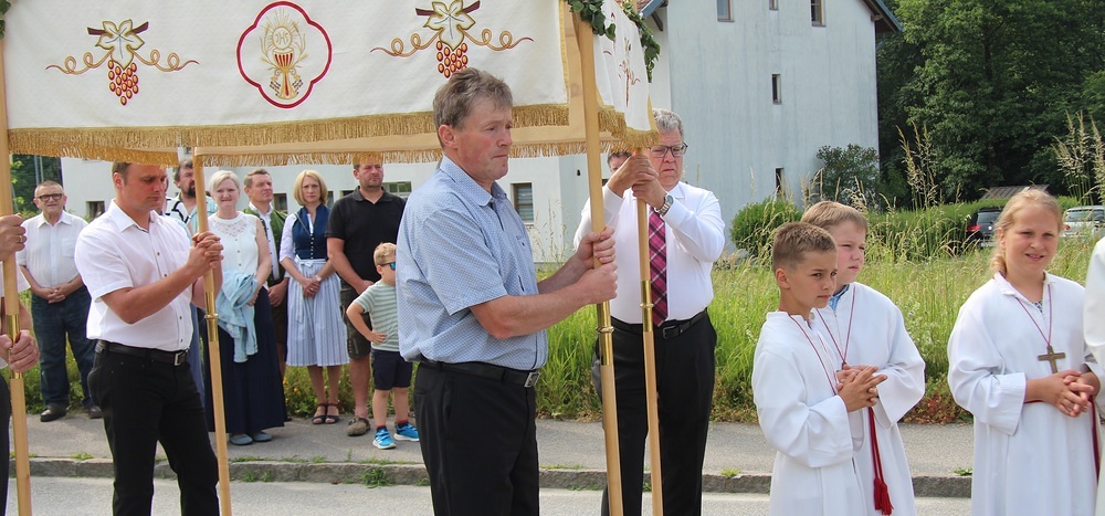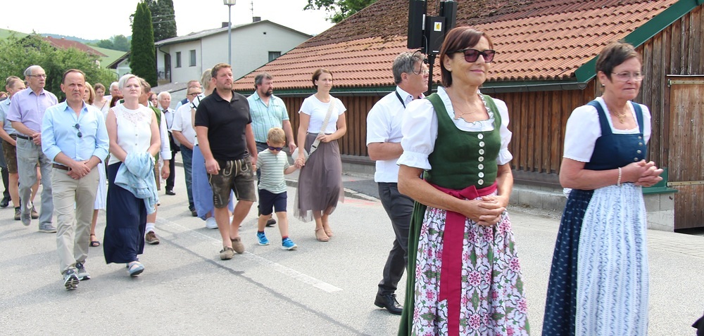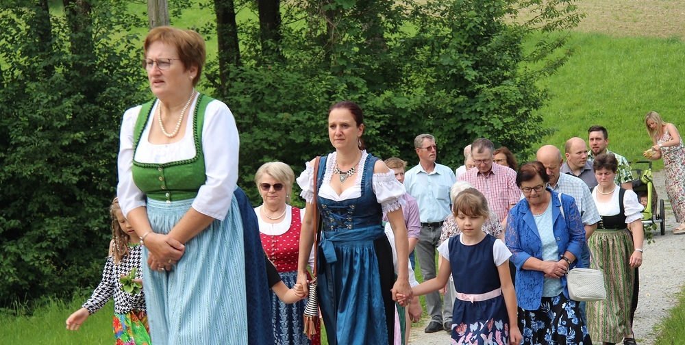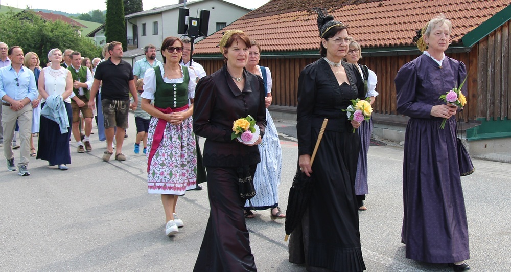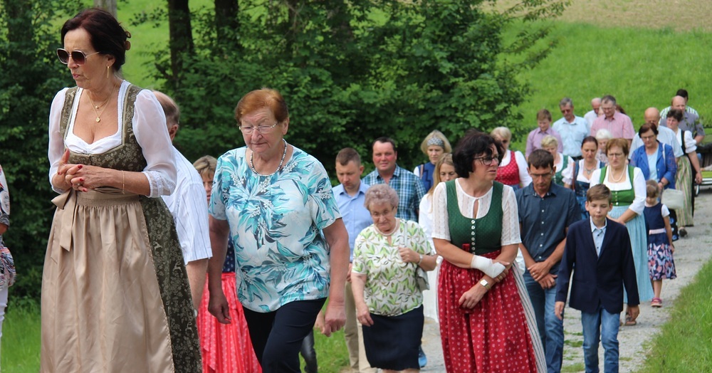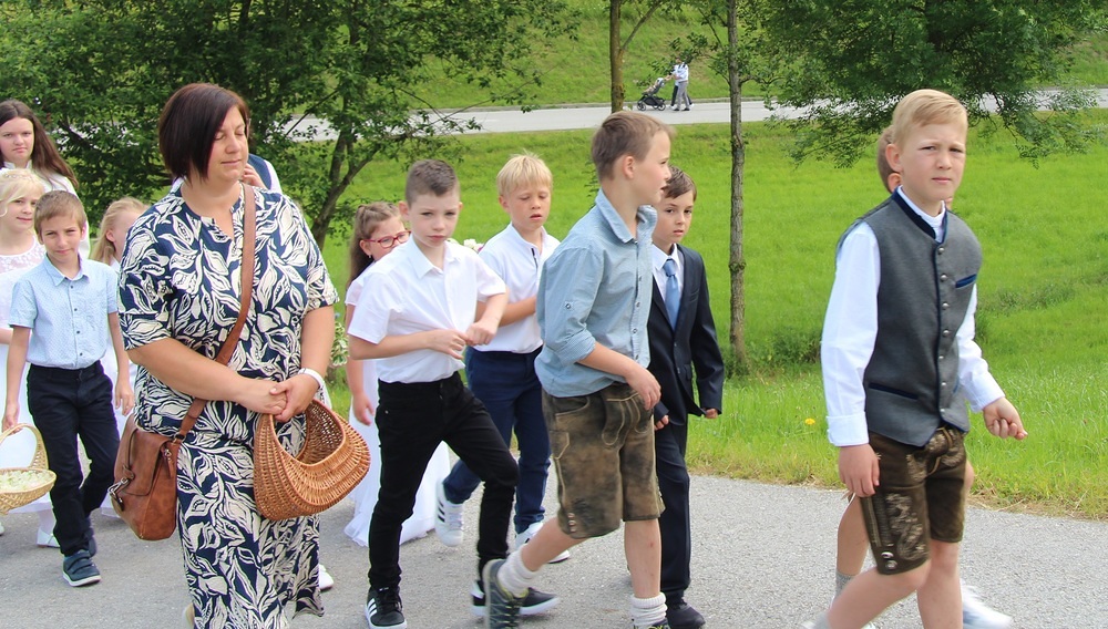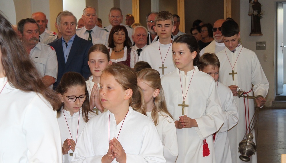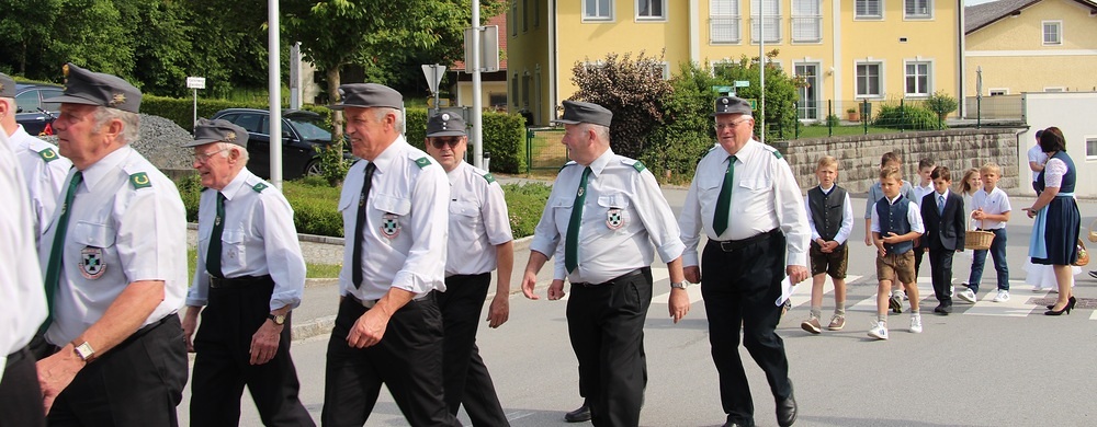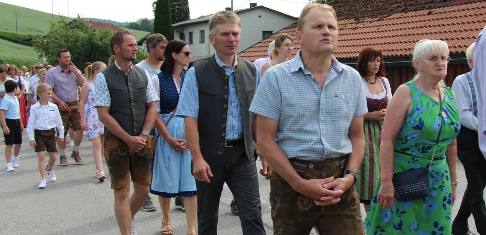 Diese Fronleichnamsprozession die von Pfarrer Thaddäus Kret gehalten wurde, der zuvor auch in der Pfarrkirche die Frühmesse hielt wurde zu einem würdigen Fest des Altarssakramentes, die Himmelträger, begleitet von Ministrantinnen und Ministranten, Musikerinnen und Musikern, Erstkommunion-Kindern, Trachten und zahlreichen Menschen.Die Goldhaubenfrauen waren ebenso dabei wie andere pfarrliche Organisationen und der Kirchenchor. Die Musikkapelle hatte die Prozession musikalisch mitgestaltet.