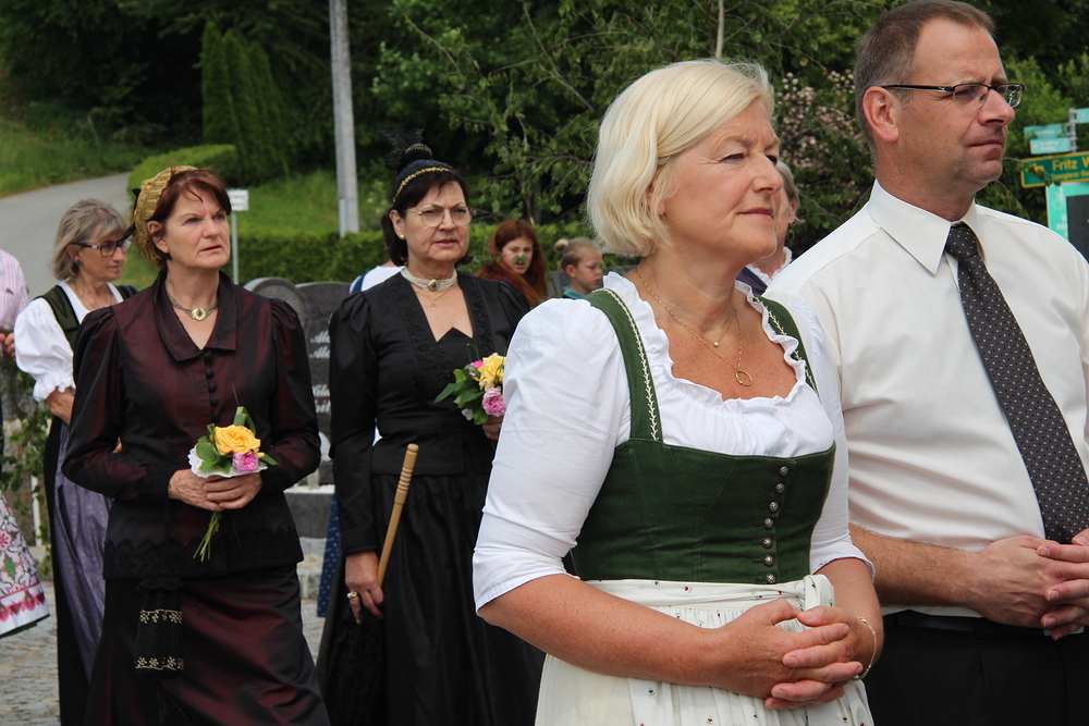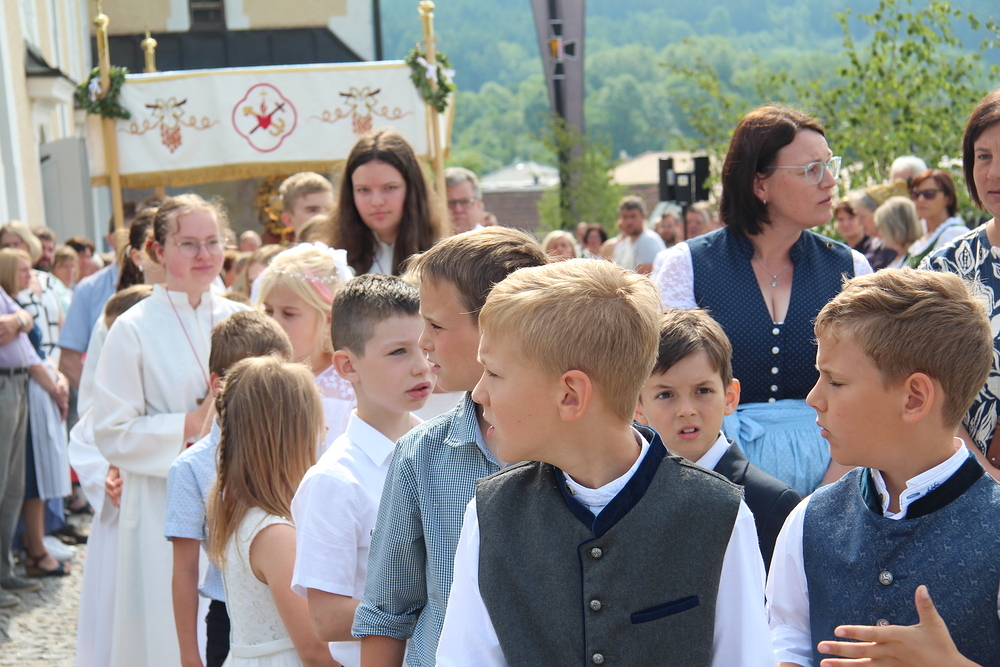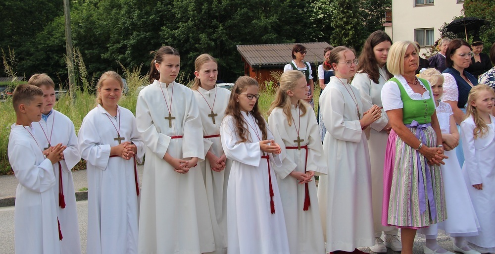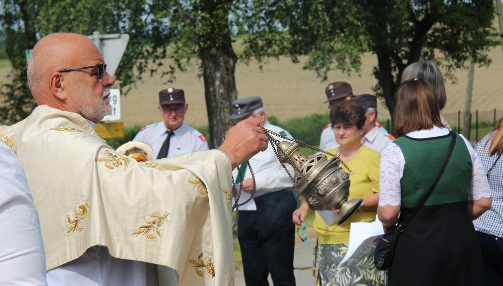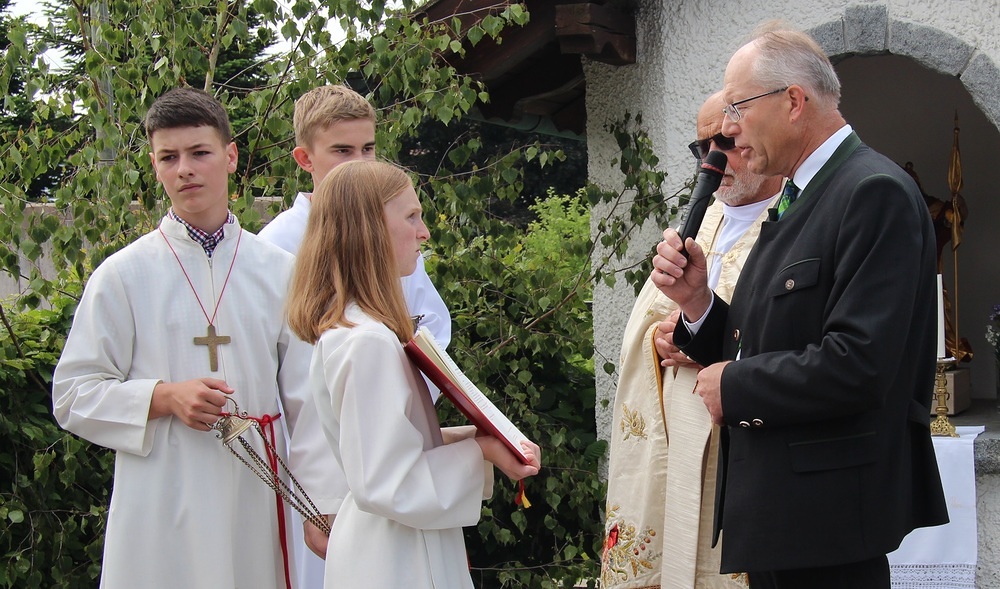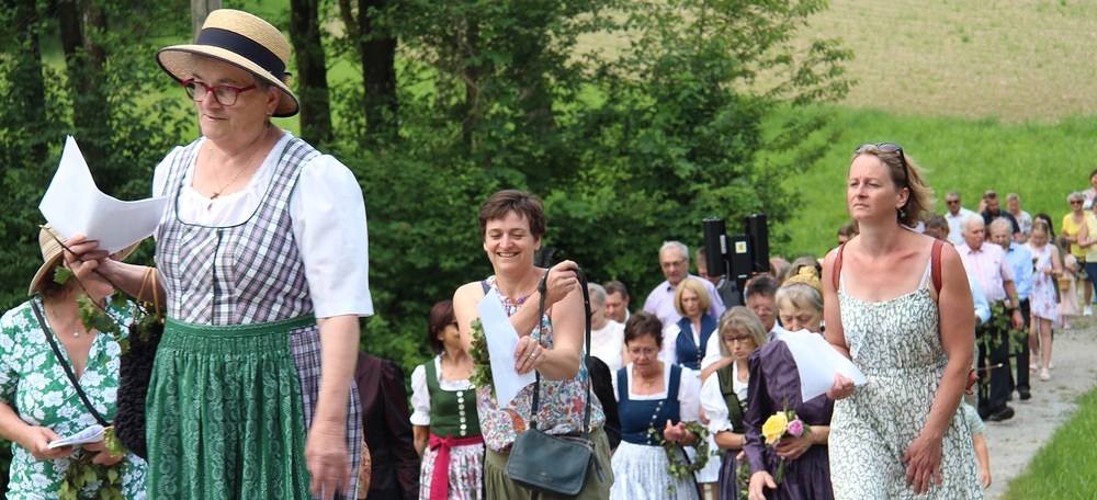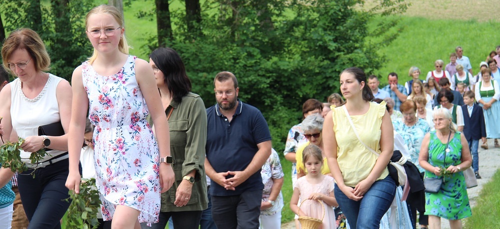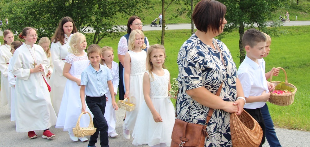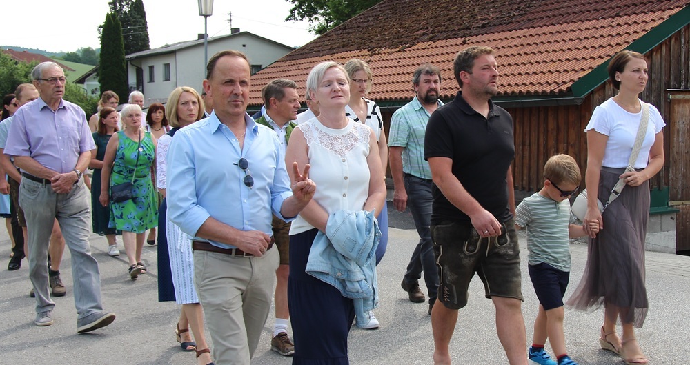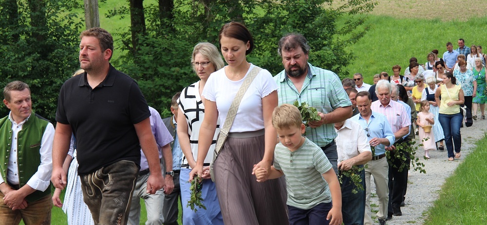 Diese Fronleichnamsprozession die von Pfarrer Thaddäus Kret gehalten wurde, der zuvor auch in der Pfarrkirche die Frühmesse hielt wurde zu einem würdigen Fest des Altarssakramentes, die Himmelträger, begleitet von Ministrantinnen und Ministranten, Musikerinnen und Musikern, Erstkommunion-Kindern, Trachten und zahlreichen Menschen.Die Goldhaubenfrauen waren ebenso dabei wie andere pfarrliche Organisationen und der Kirchenchor. Die Musikkapelle hatte die Prozession musikalisch mitgestaltet.
