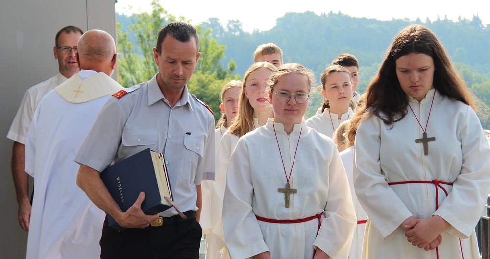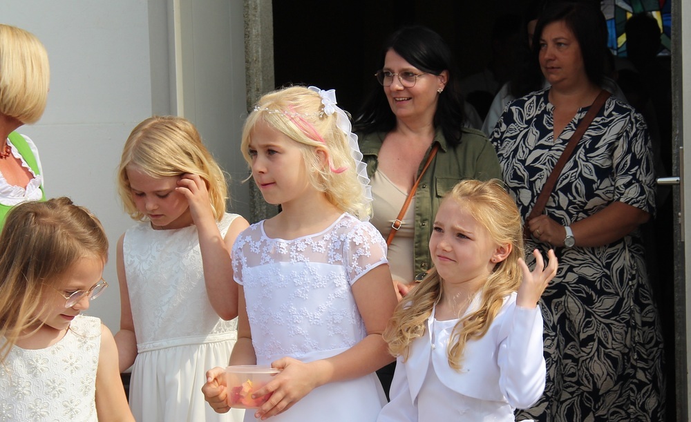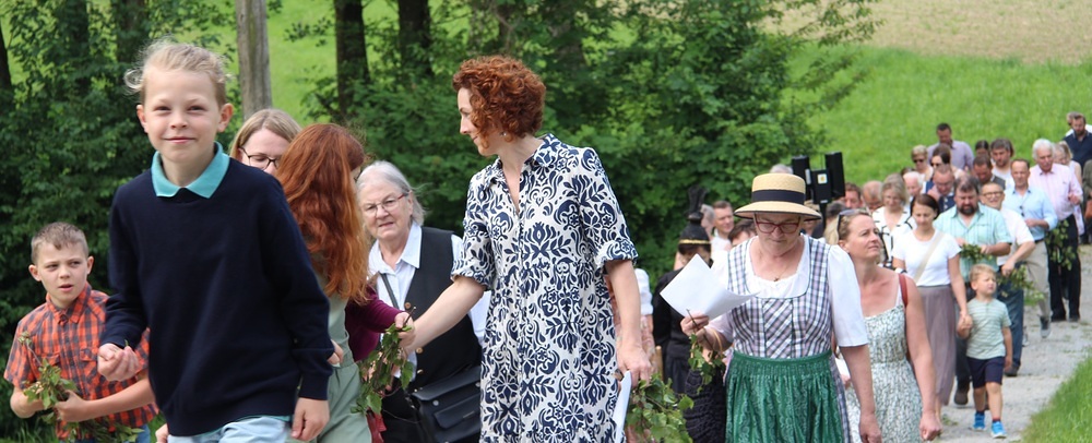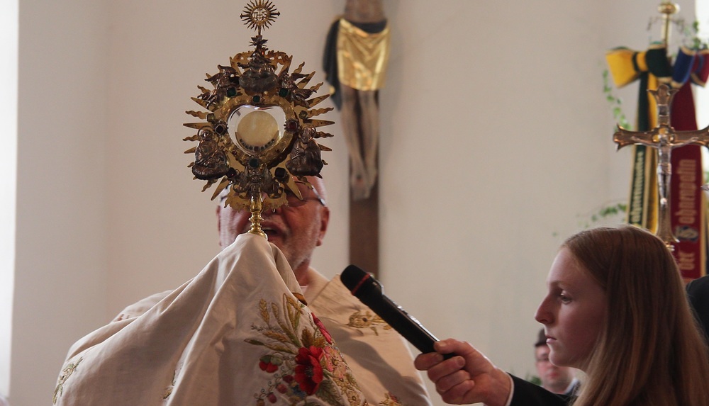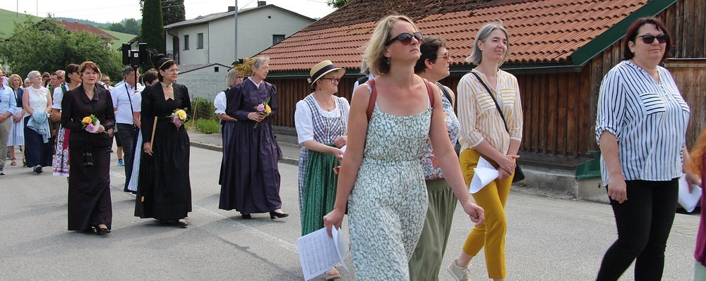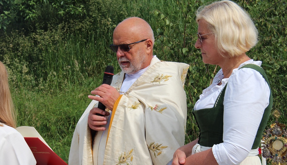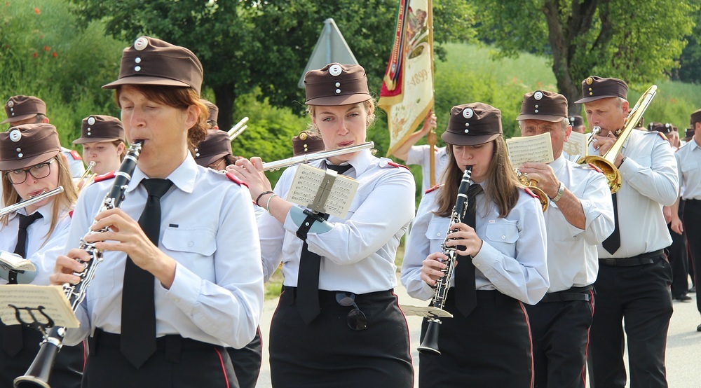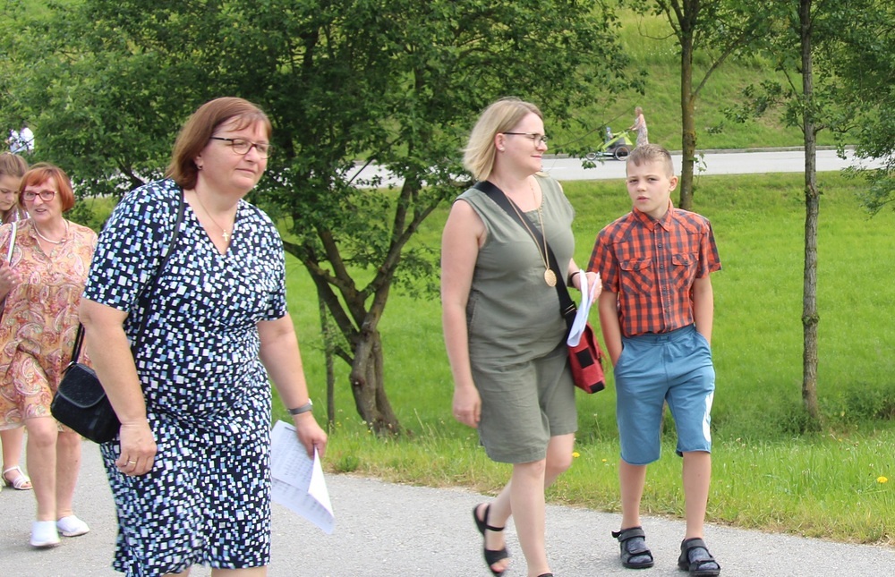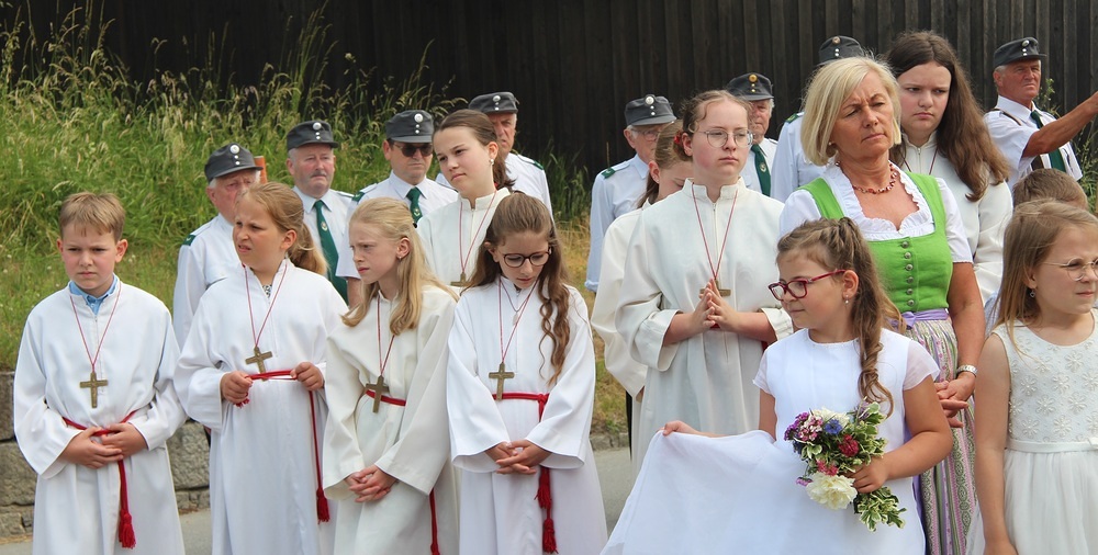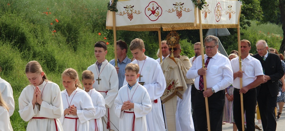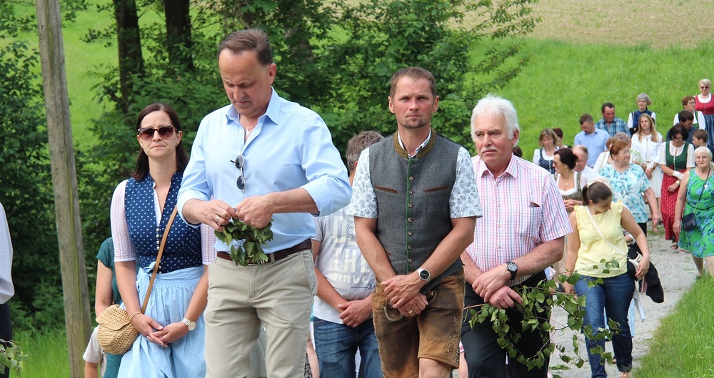 Diese Fronleichnamsprozession die von Pfarrer Thaddäus Kret gehalten wurde, der zuvor auch in der Pfarrkirche die Frühmesse hielt wurde zu einem würdigen Fest des Altarssakramentes, die Himmelträger, begleitet von Ministrantinnen und Ministranten, Musikerinnen und Musikern, Erstkommunion-Kindern, Trachten und zahlreichen Menschen.Die Goldhaubenfrauen waren ebenso dabei wie andere pfarrliche Organisationen und der Kirchenchor. Die Musikkapelle hatte die Prozession musikalisch mitgestaltet.