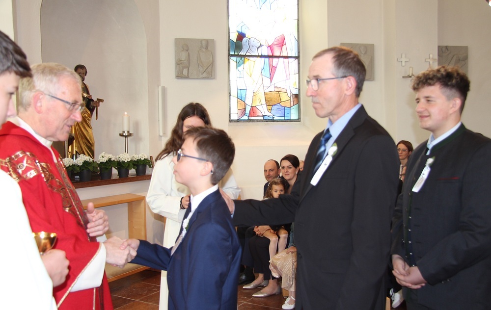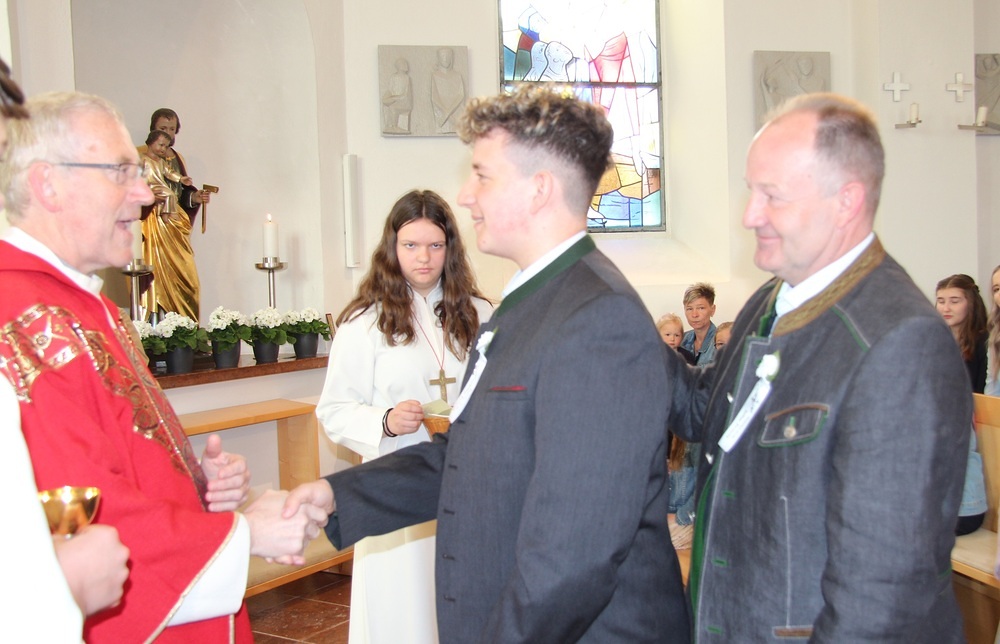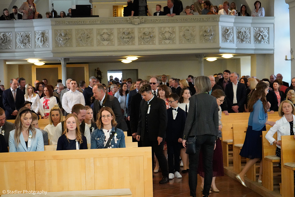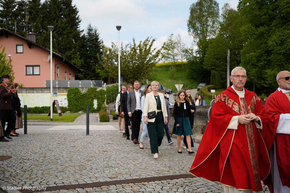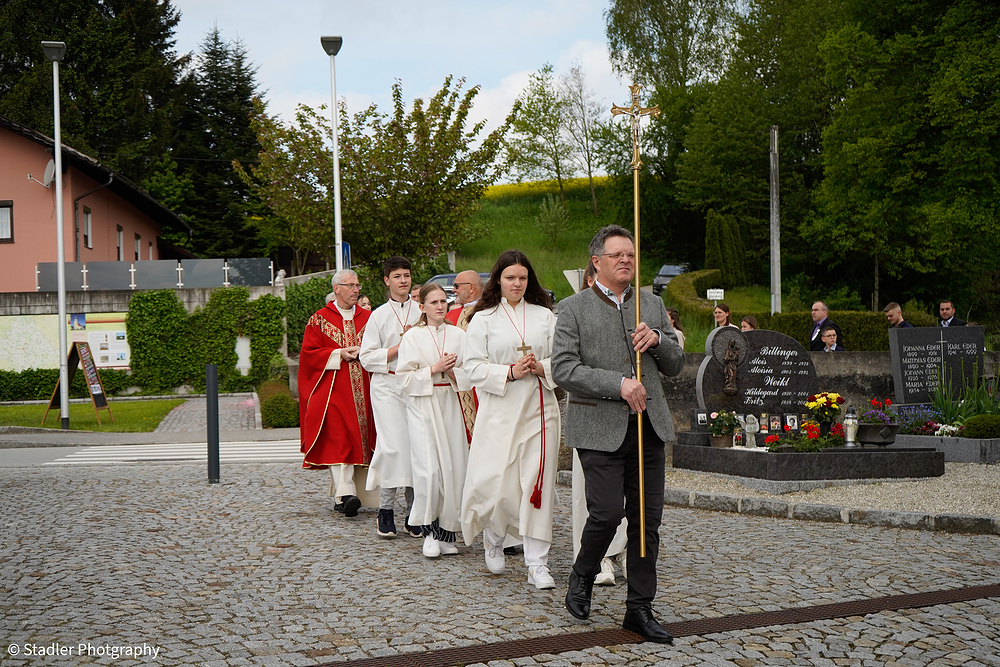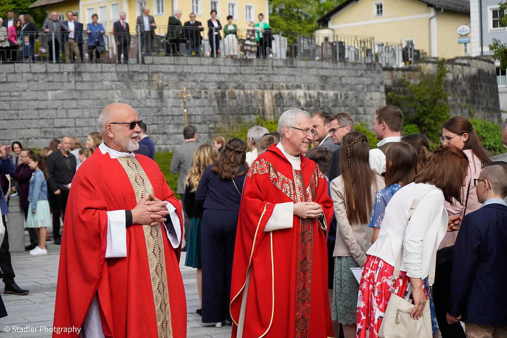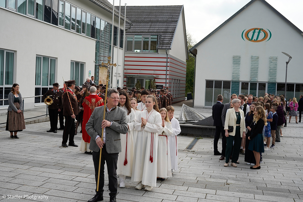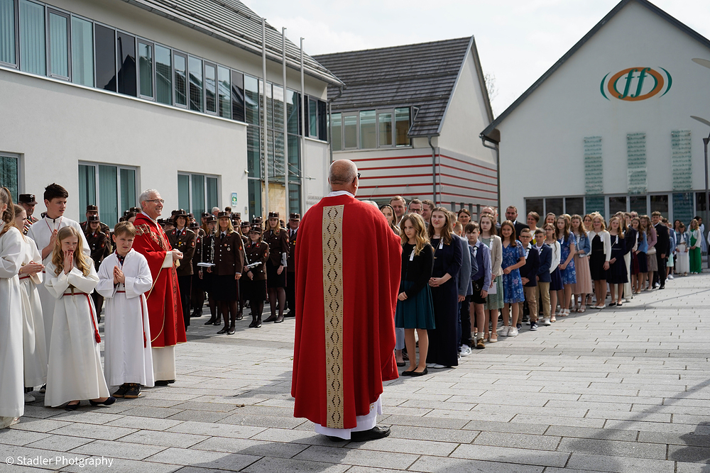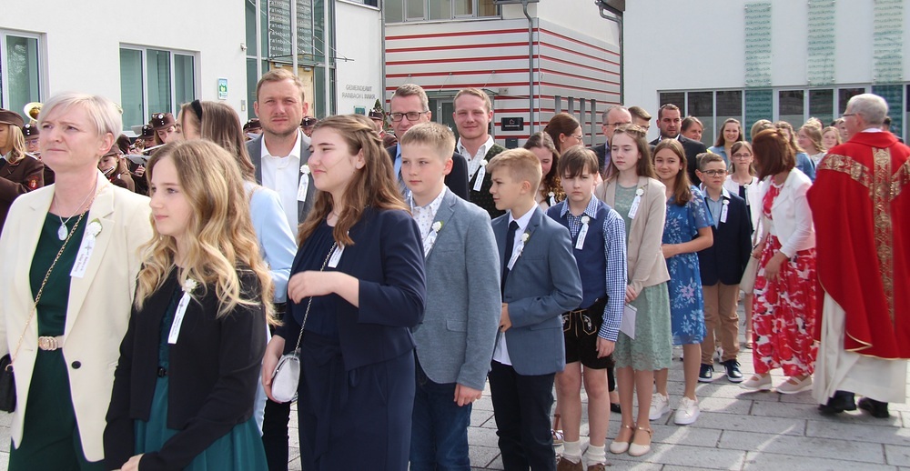 Nach dem festlichen Empfang des Firmspenders Kan. KonsR Dr. Johann Hintermaier mit Pfarrer Thaddäus und der Firmlinge am Gemeindeplatz folgte der Einzug in die Pfarrkirche und die Feier der Hl. Messe mit der Firmspendung.