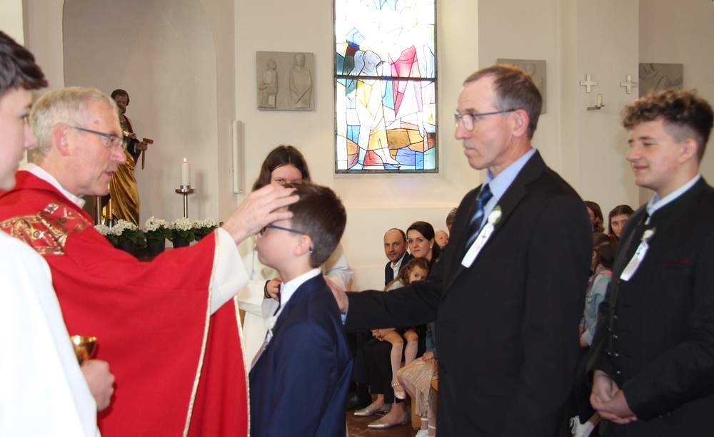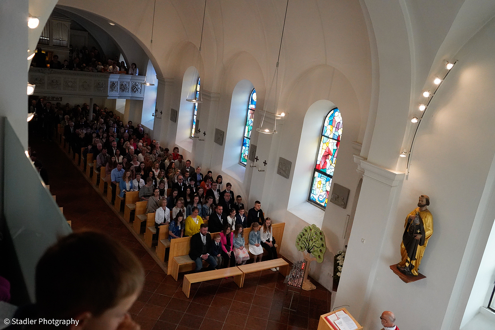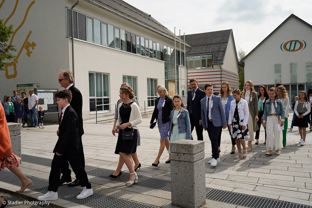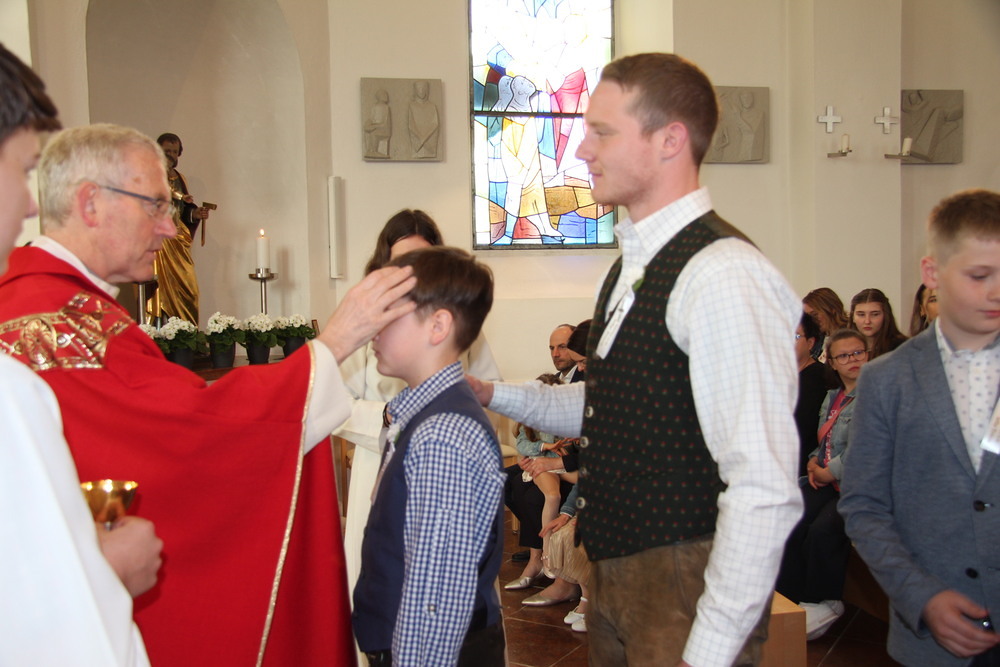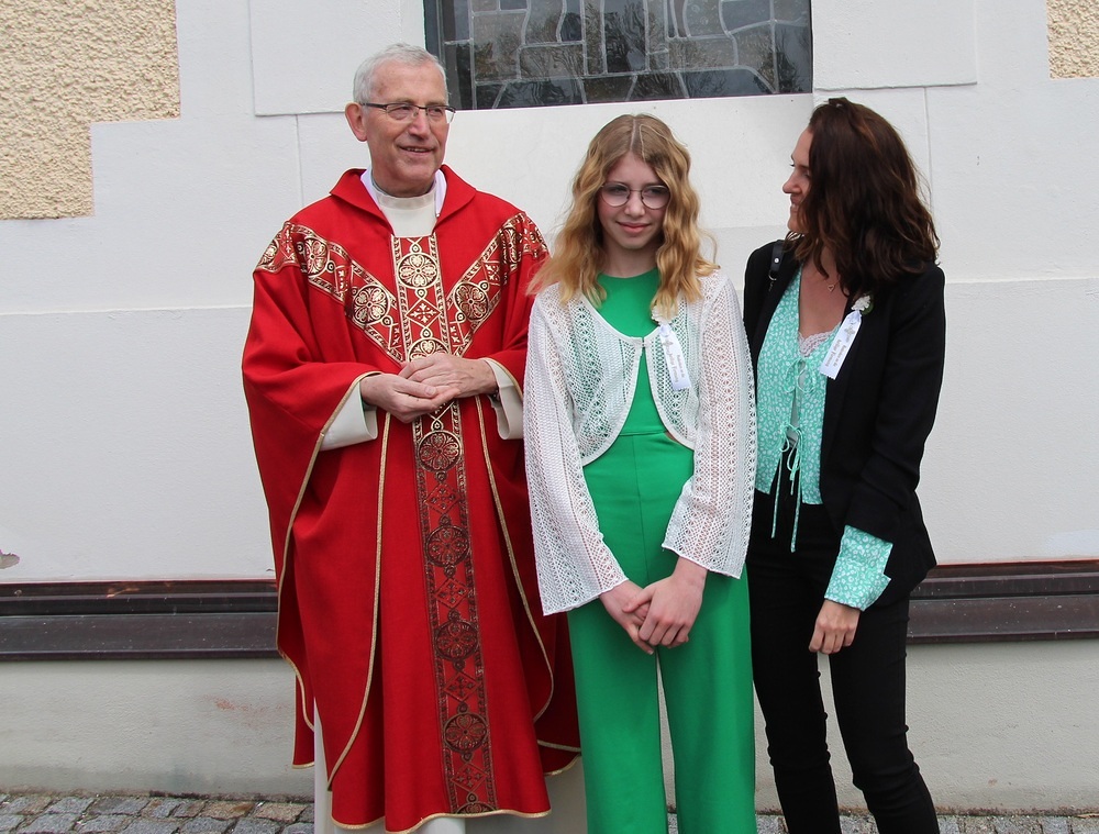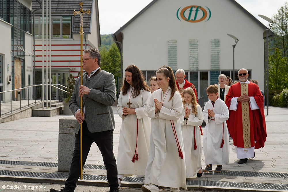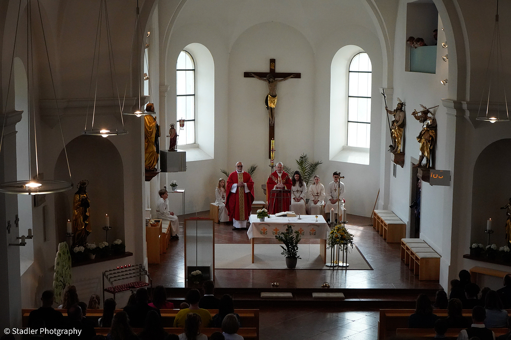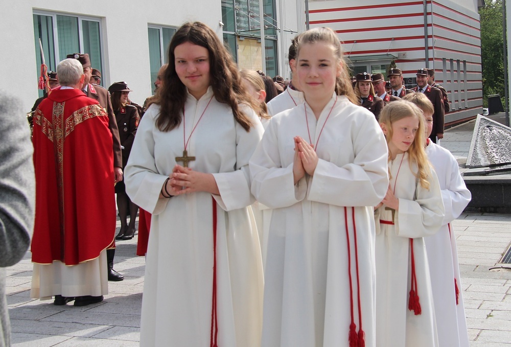 Nach dem festlichen Empfang des Firmspenders Kan. KonsR Dr. Johann Hintermaier mit Pfarrer Thaddäus und der Firmlinge am Gemeindeplatz folgte der Einzug in die Pfarrkirche und die Feier der Hl. Messe mit der Firmspendung.