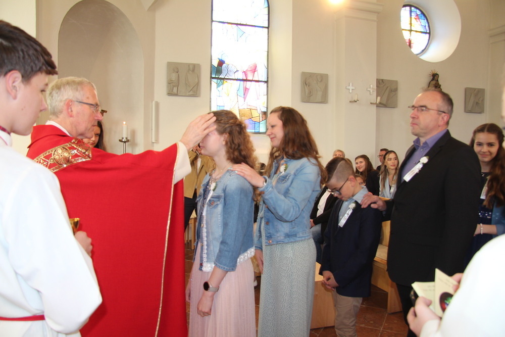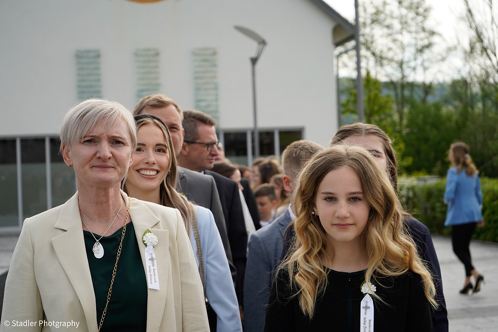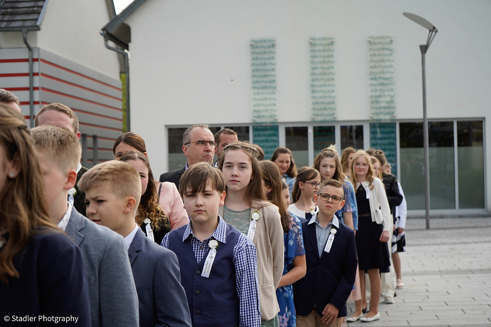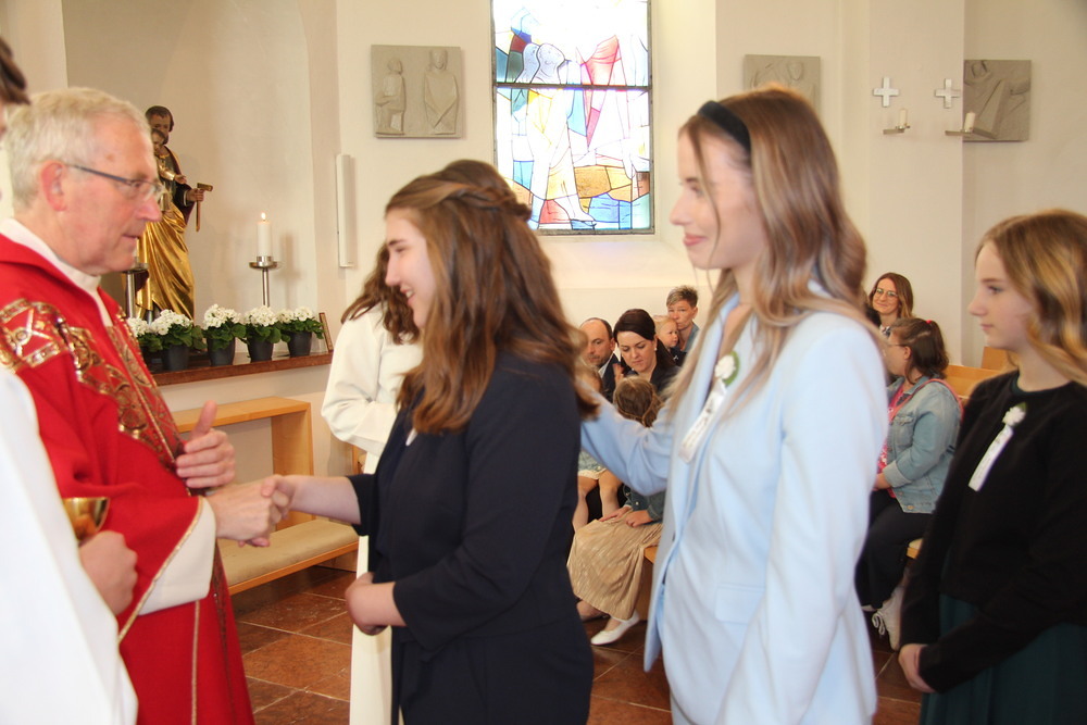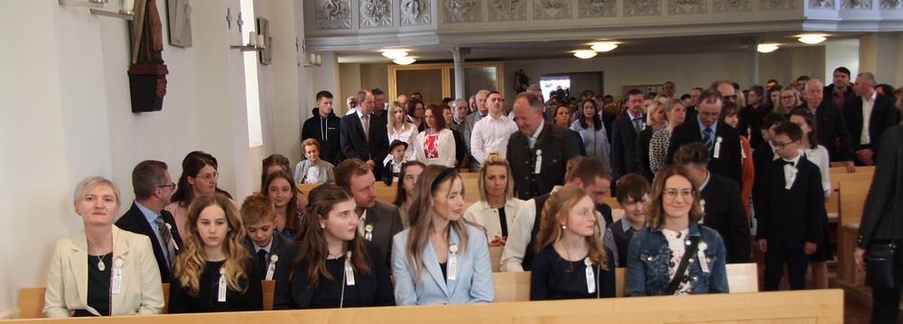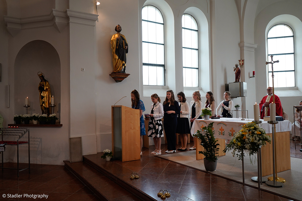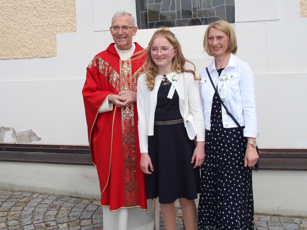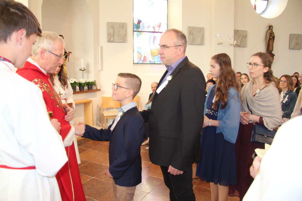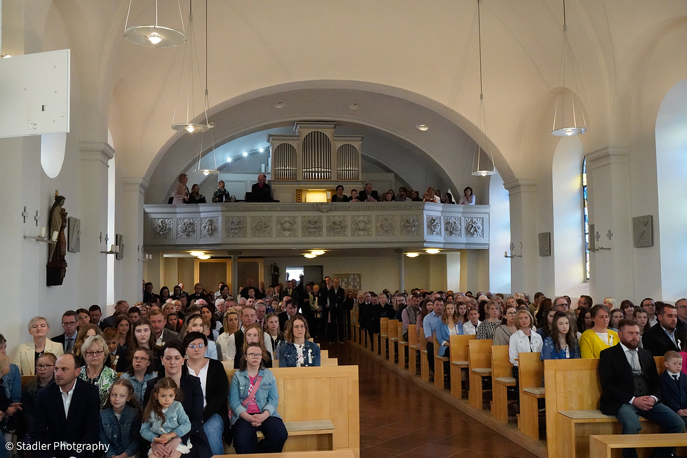 Nach dem festlichen Empfang des Firmspenders Kan. KonsR Dr. Johann Hintermaier mit Pfarrer Thaddäus und der Firmlinge am Gemeindeplatz folgte der Einzug in die Pfarrkirche und die Feier der Hl. Messe mit der Firmspendung.