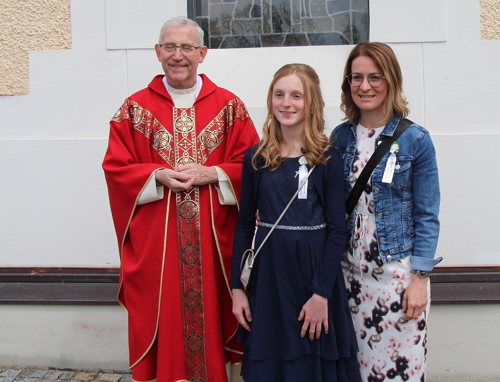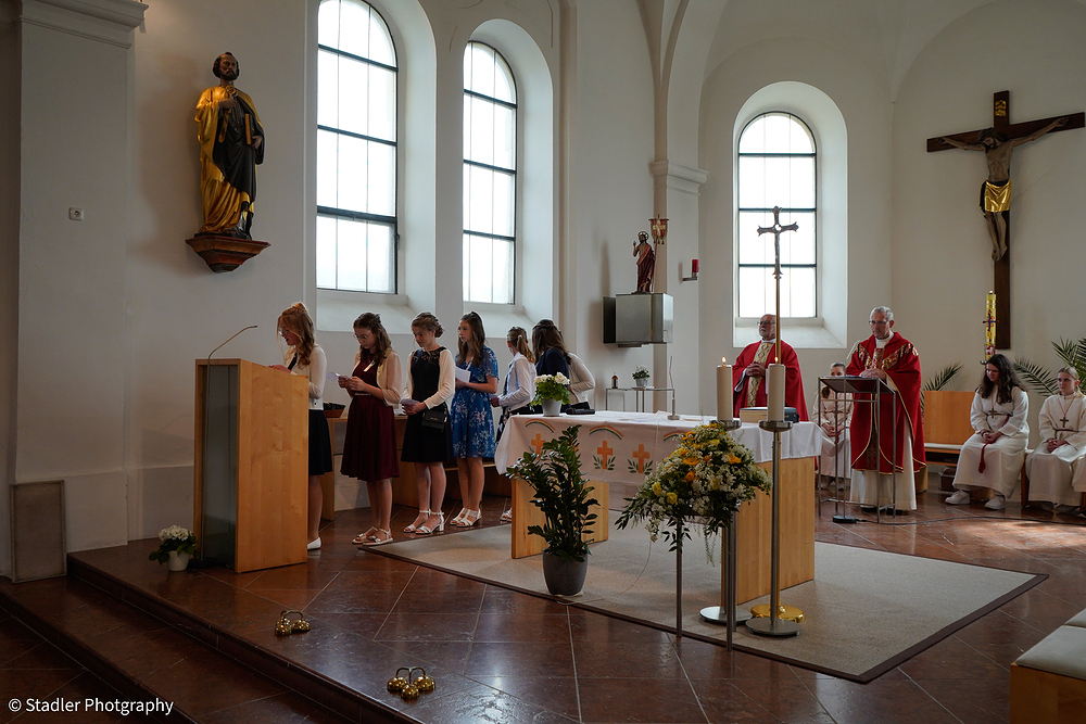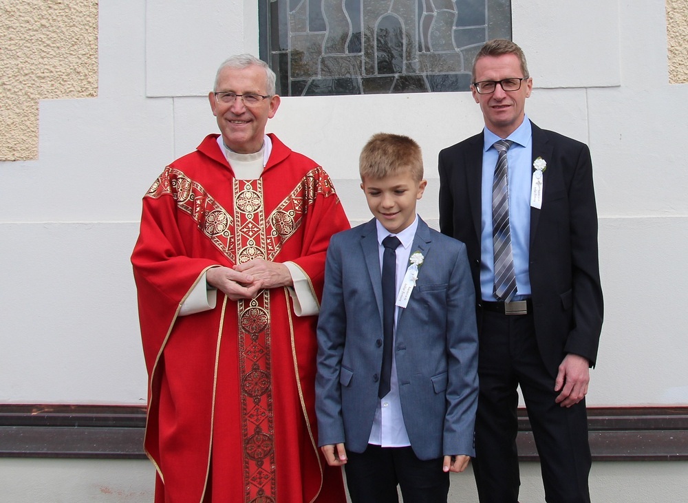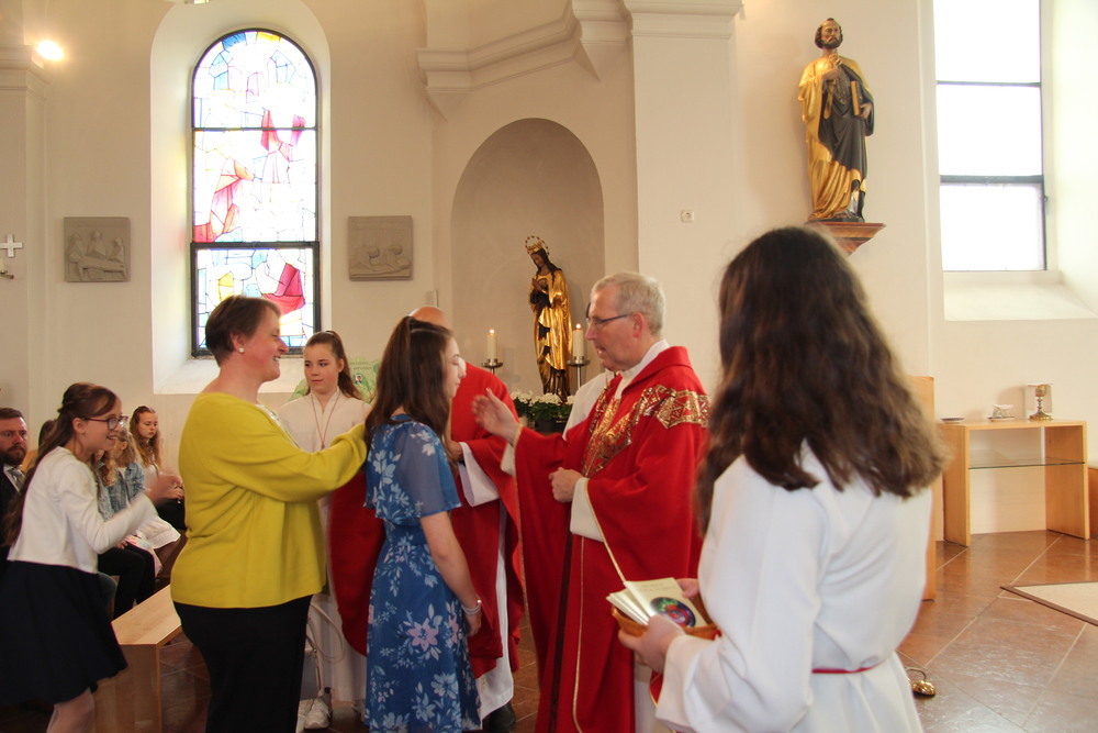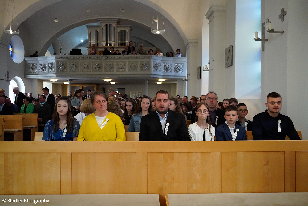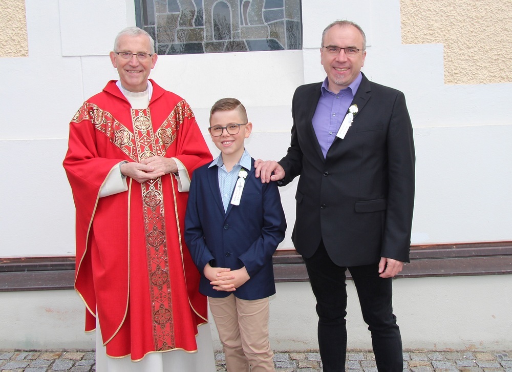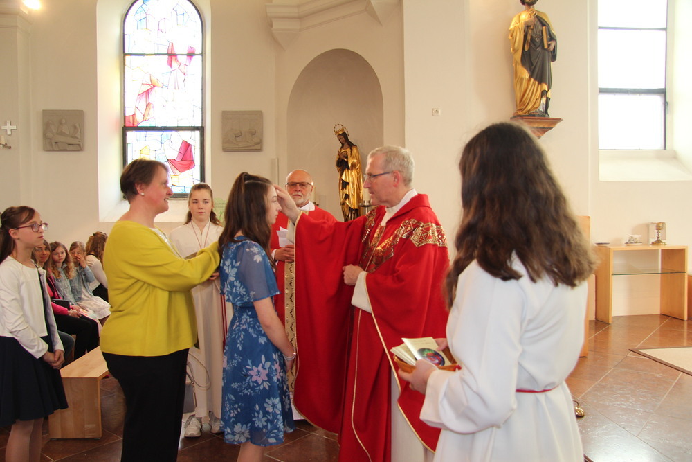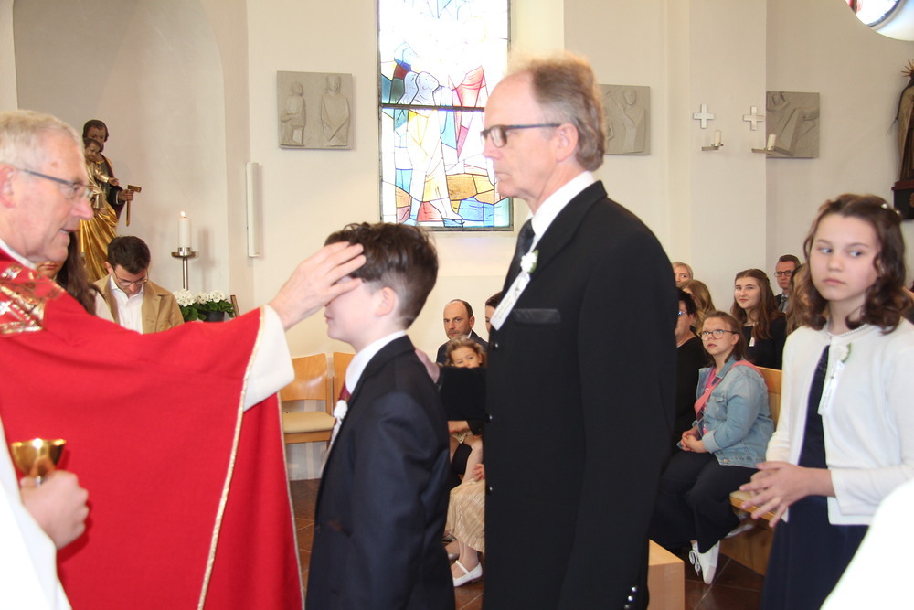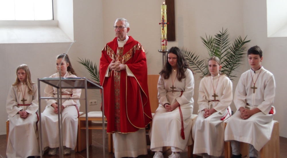 Nach dem festlichen Empfang des Firmspenders Kan. KonsR Dr. Johann Hintermaier mit Pfarrer Thaddäus und der Firmlinge am Gemeindeplatz folgte der Einzug in die Pfarrkirche und die Feier der Hl. Messe mit der Firmspendung.