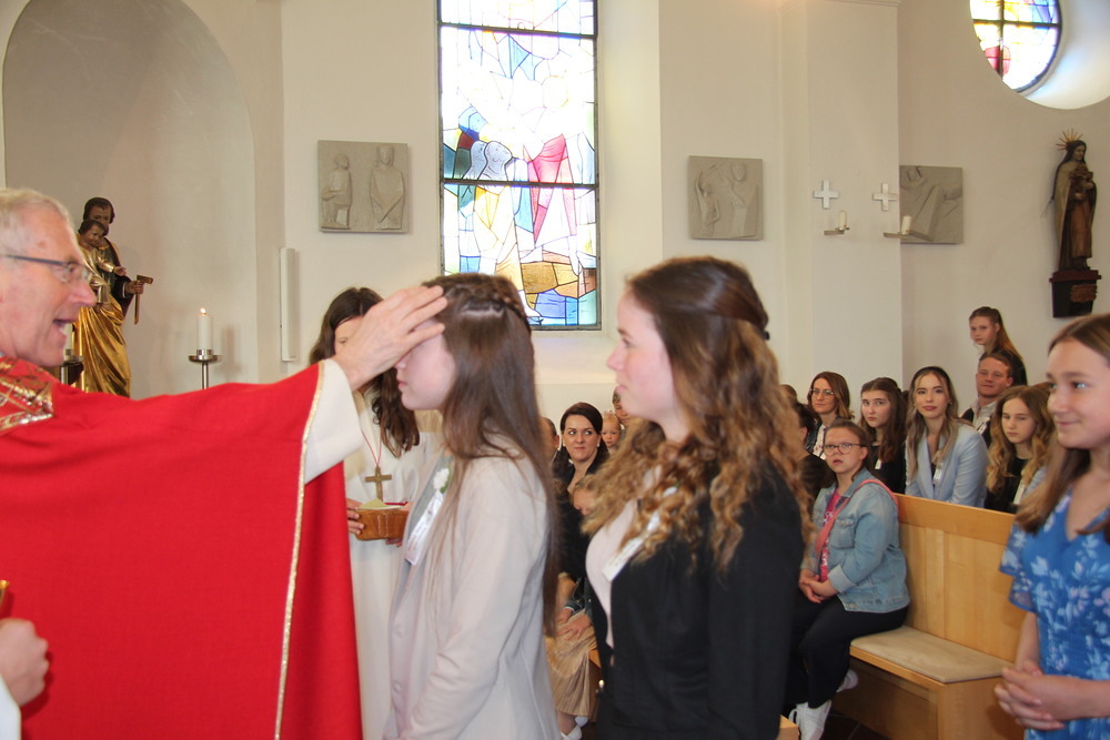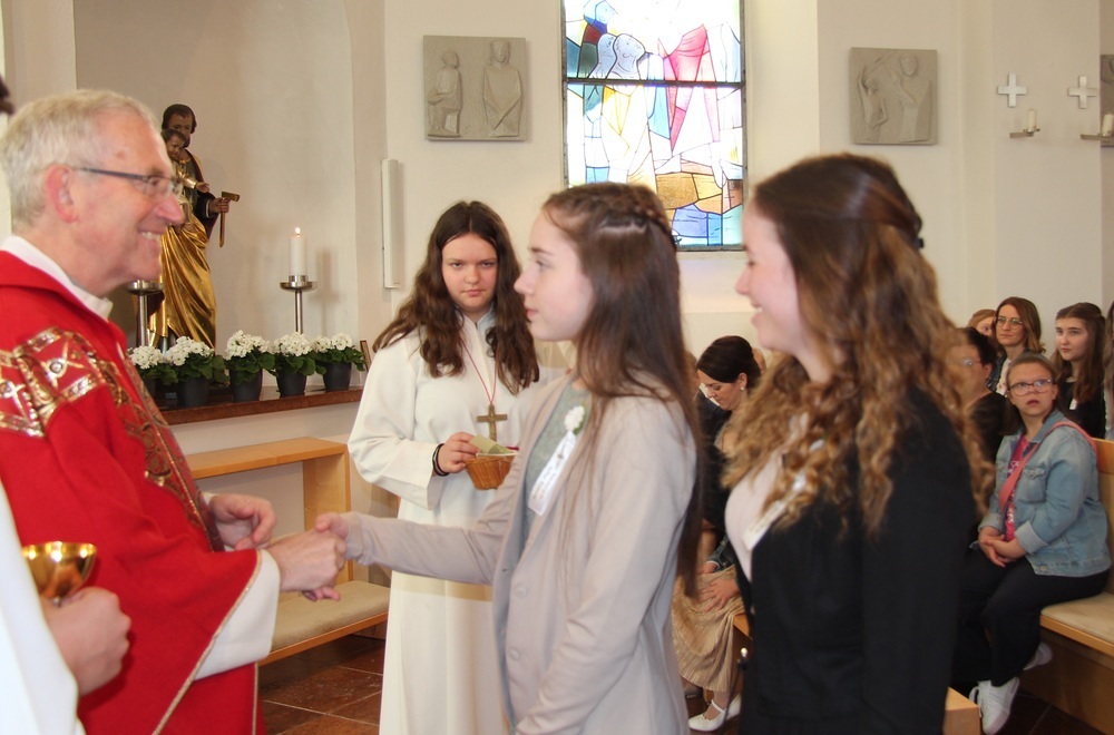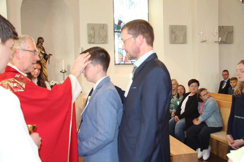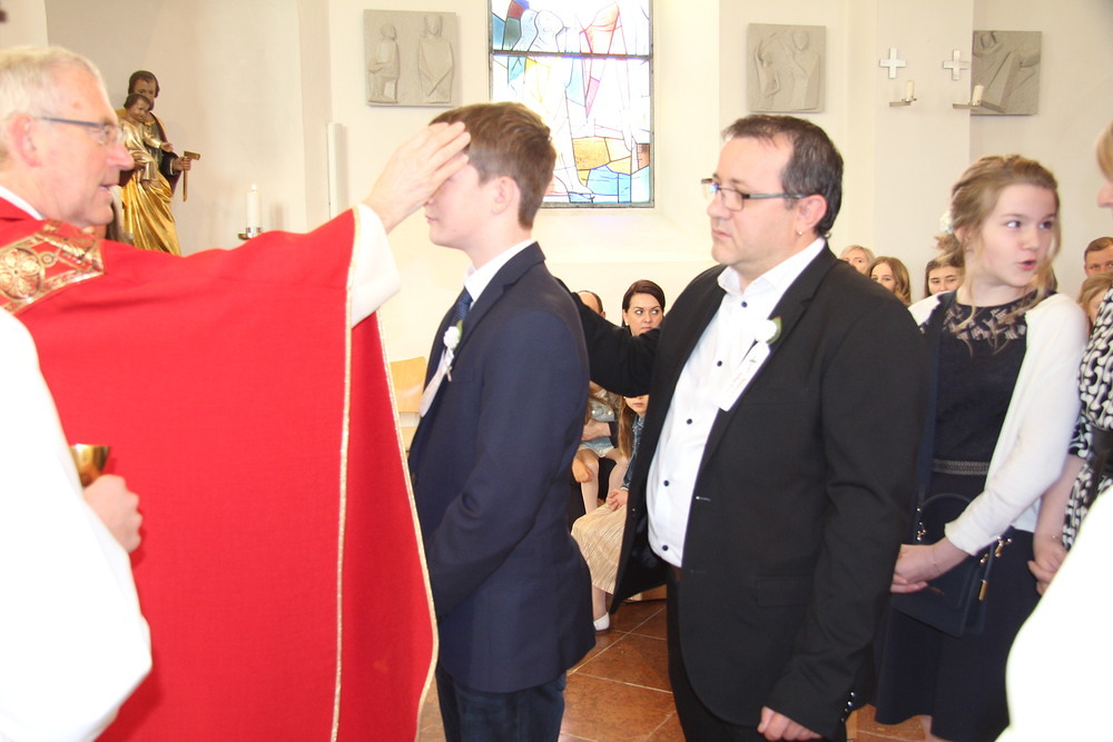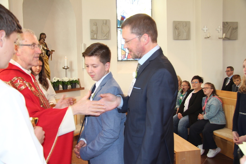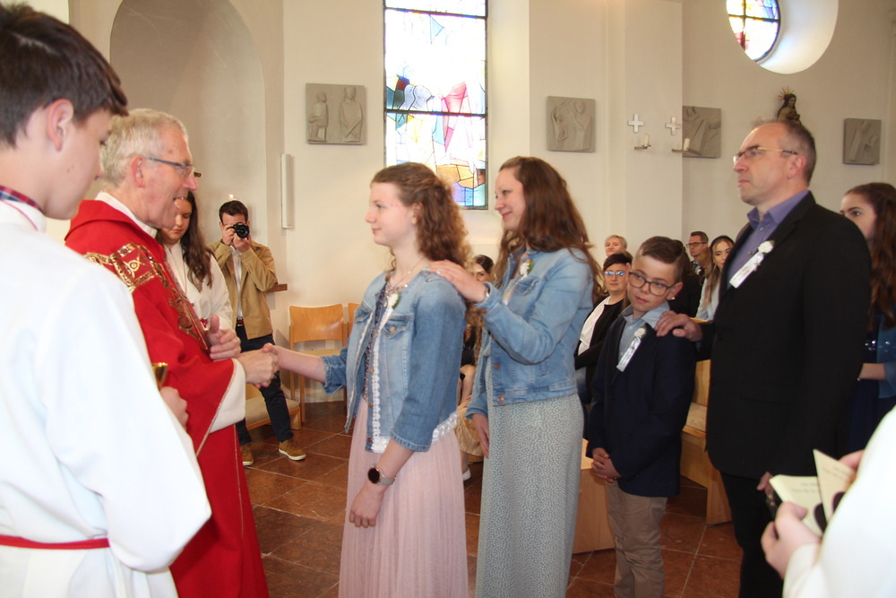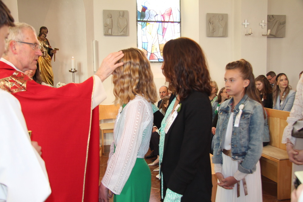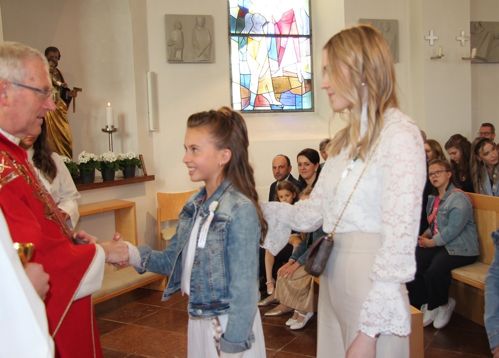 Nach dem festlichen Empfang des Firmspenders Kan. KonsR Dr. Johann Hintermaier mit Pfarrer Thaddäus und der Firmlinge am Gemeindeplatz folgte der Einzug in die Pfarrkirche und die Feier der Hl. Messe mit der Firmspendung.