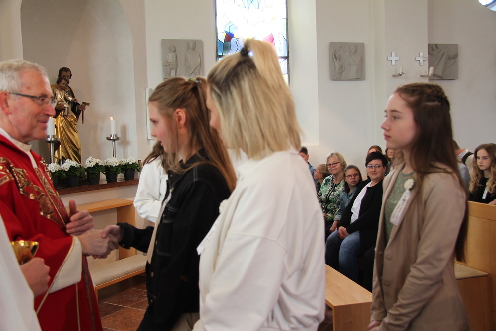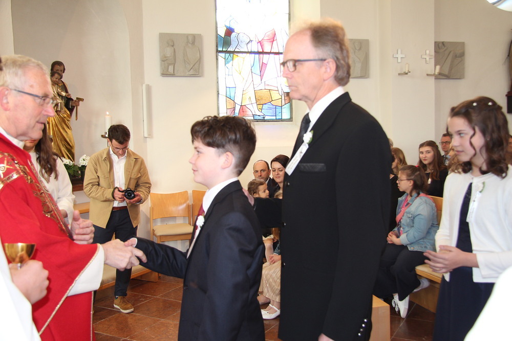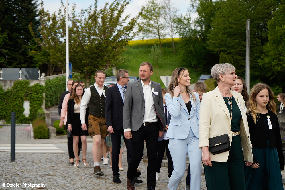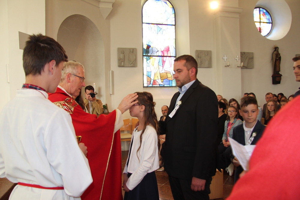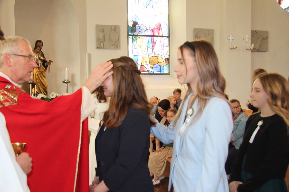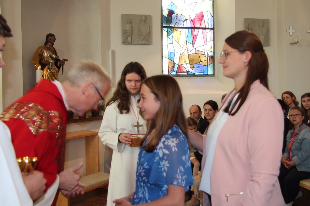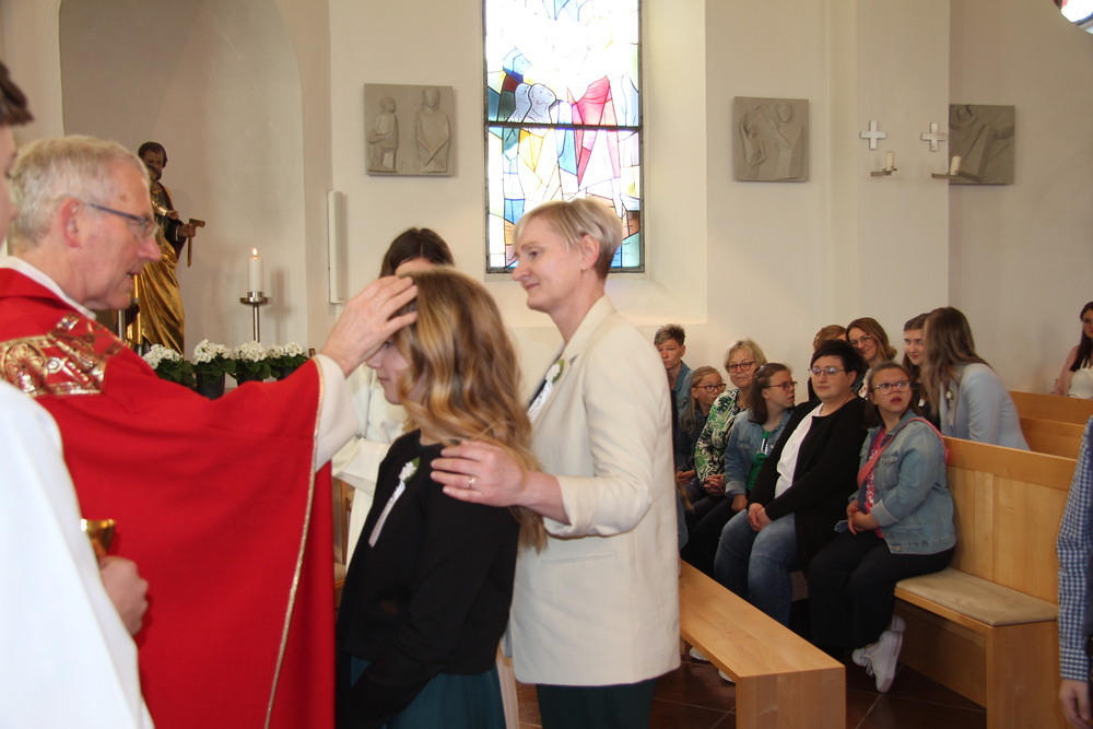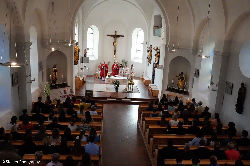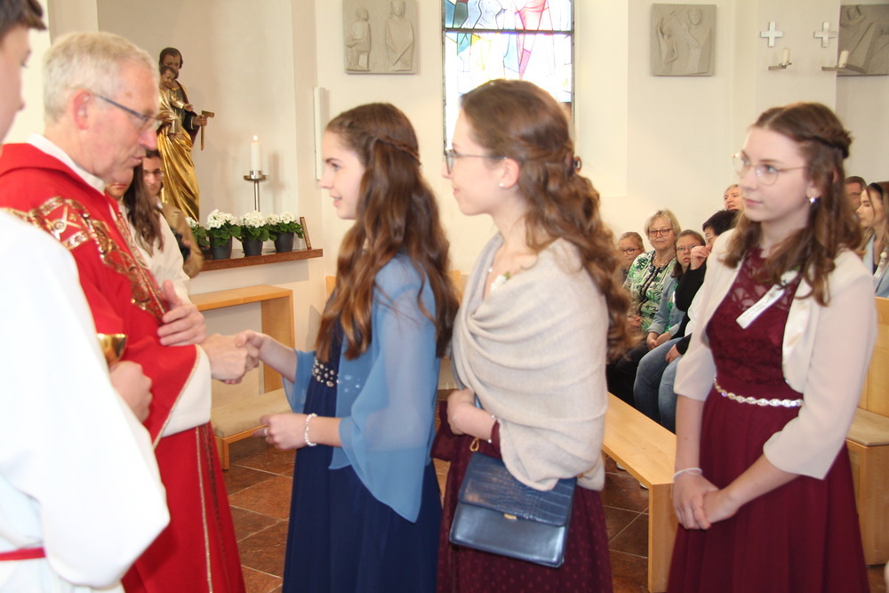 Nach dem festlichen Empfang des Firmspenders Kan. KonsR Dr. Johann Hintermaier mit Pfarrer Thaddäus und der Firmlinge am Gemeindeplatz folgte der Einzug in die Pfarrkirche und die Feier der Hl. Messe mit der Firmspendung.
