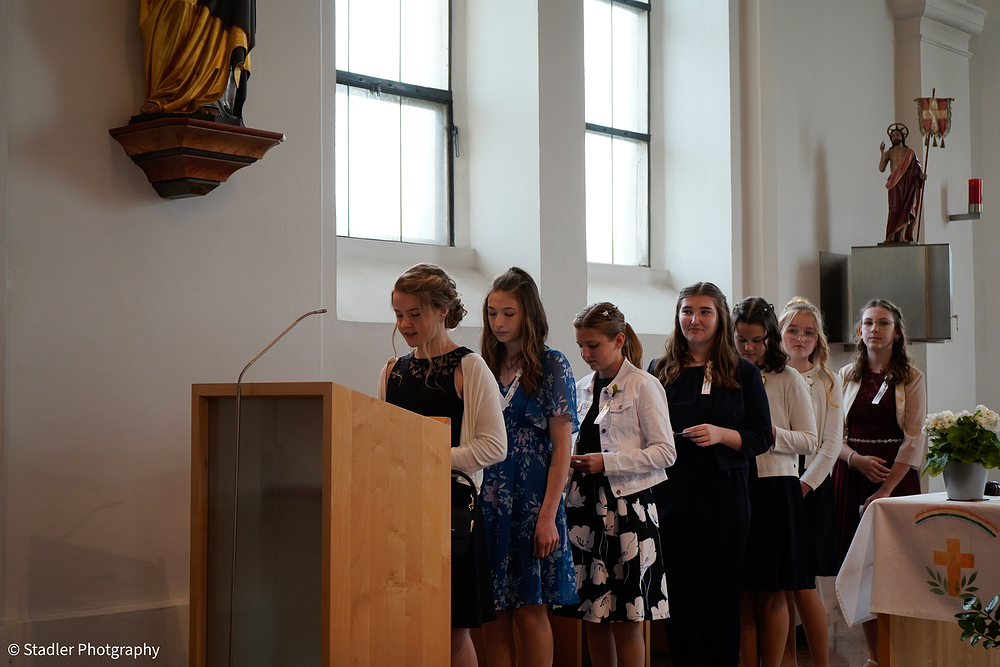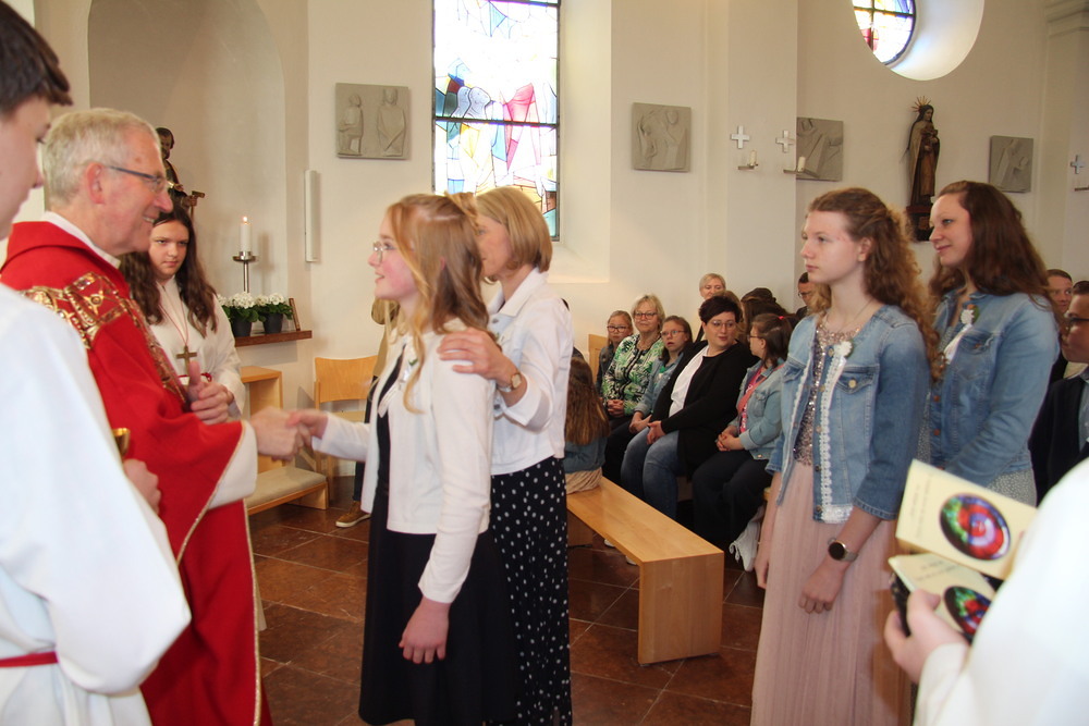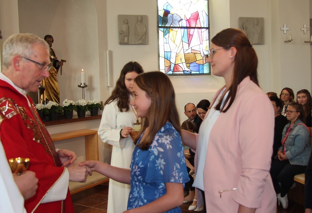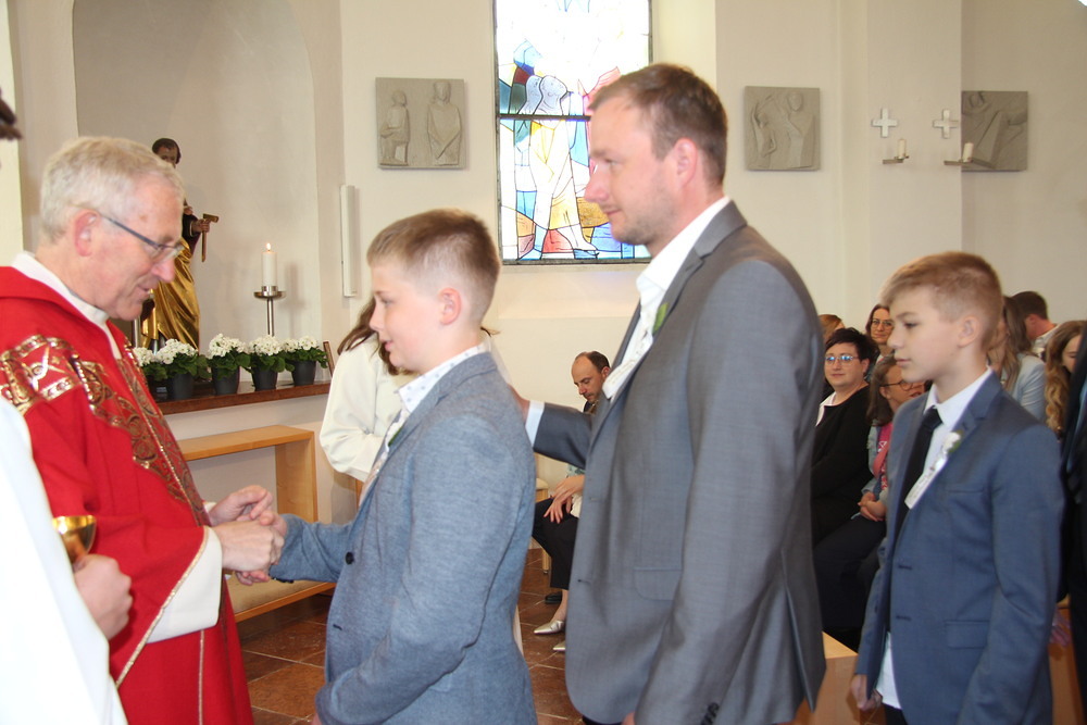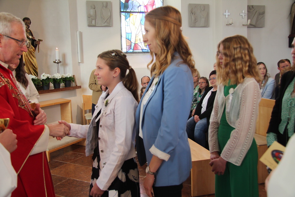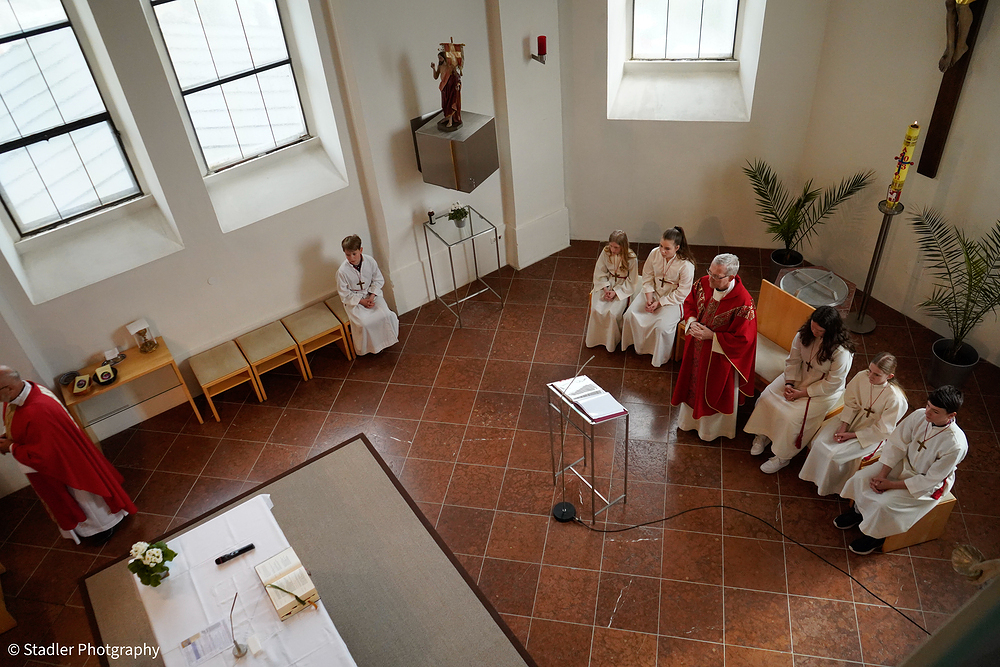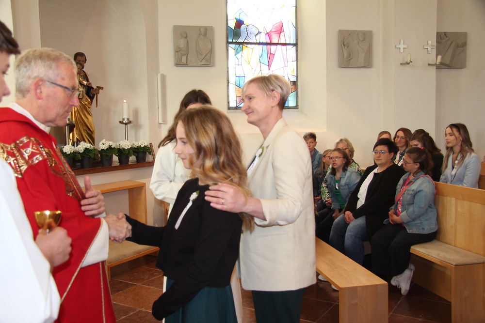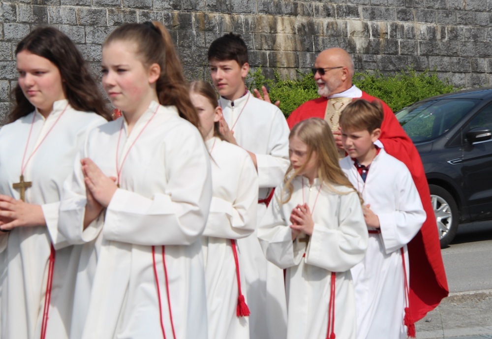 Nach dem festlichen Empfang des Firmspenders Kan. KonsR Dr. Johann Hintermaier mit Pfarrer Thaddäus und der Firmlinge am Gemeindeplatz folgte der Einzug in die Pfarrkirche und die Feier der Hl. Messe mit der Firmspendung.