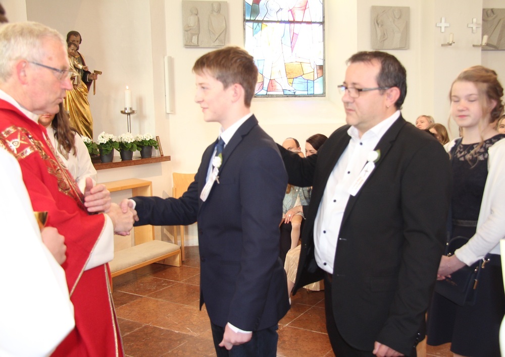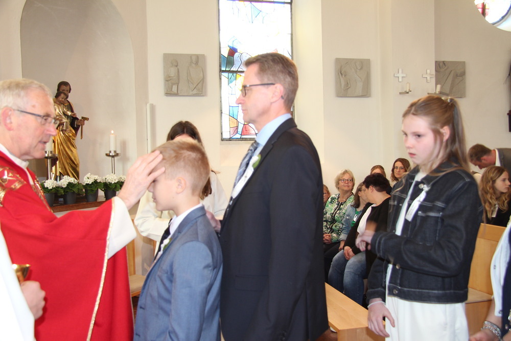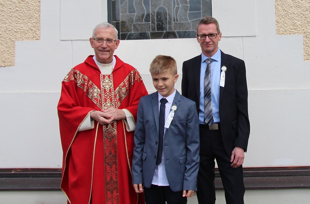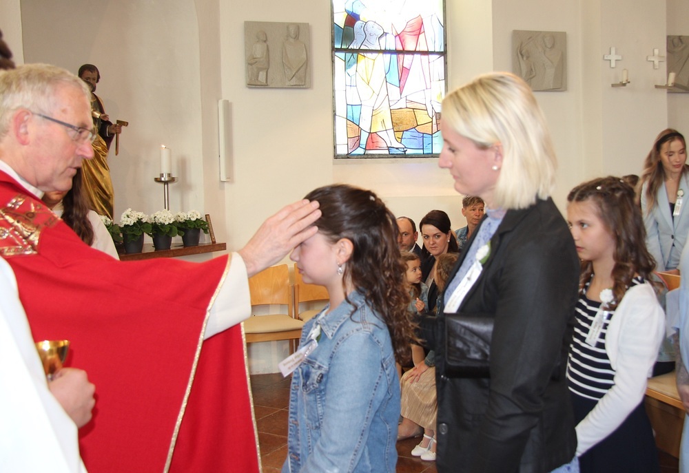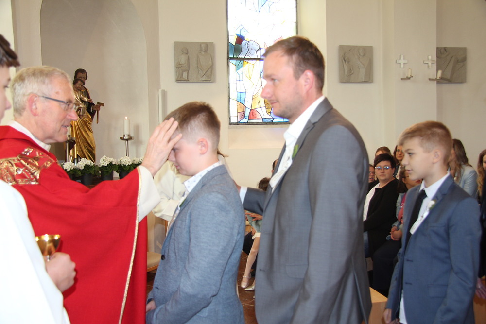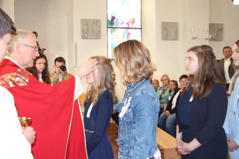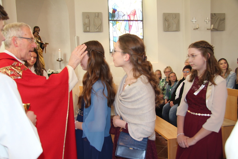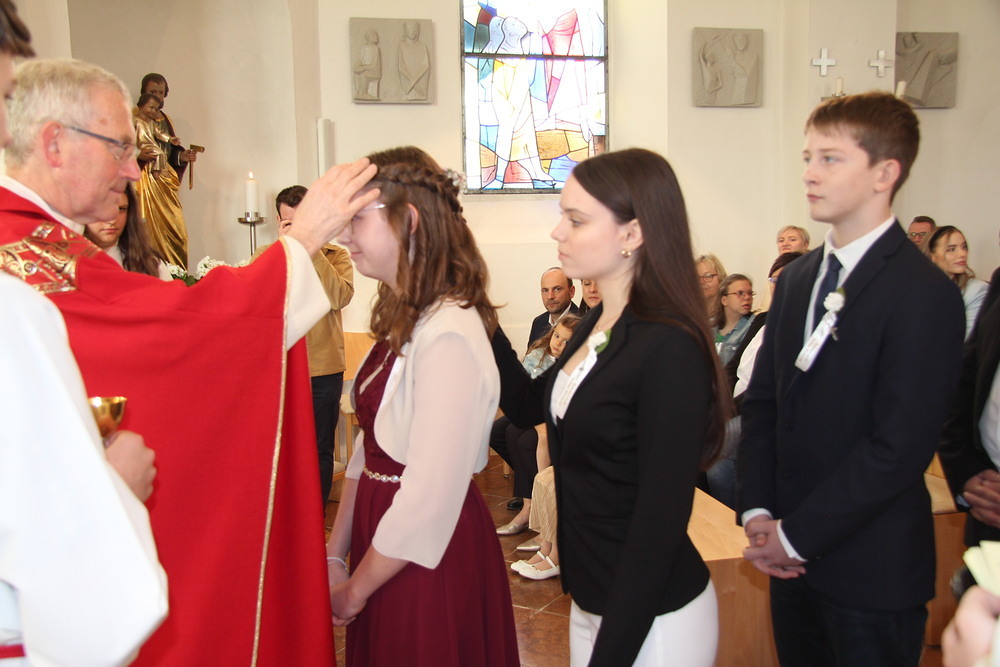 Nach dem festlichen Empfang des Firmspenders Kan. KonsR Dr. Johann Hintermaier mit Pfarrer Thaddäus und der Firmlinge am Gemeindeplatz folgte der Einzug in die Pfarrkirche und die Feier der Hl. Messe mit der Firmspendung.