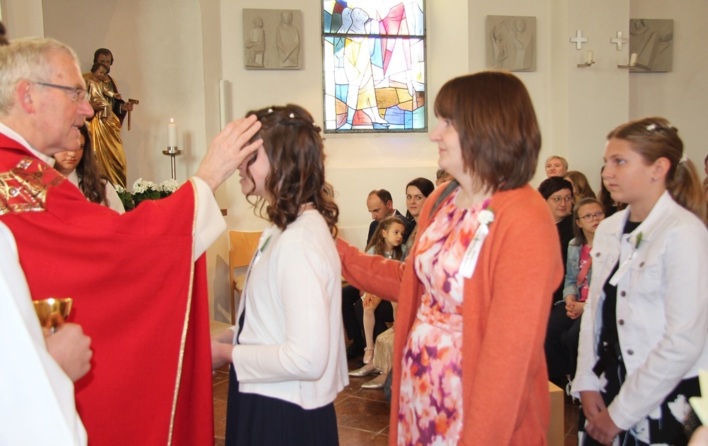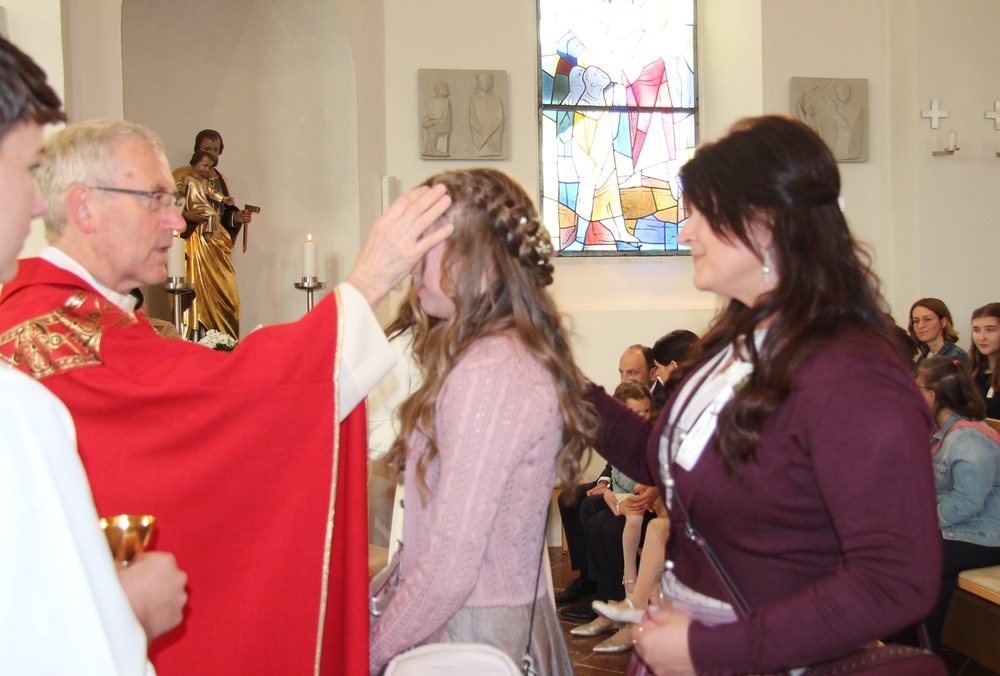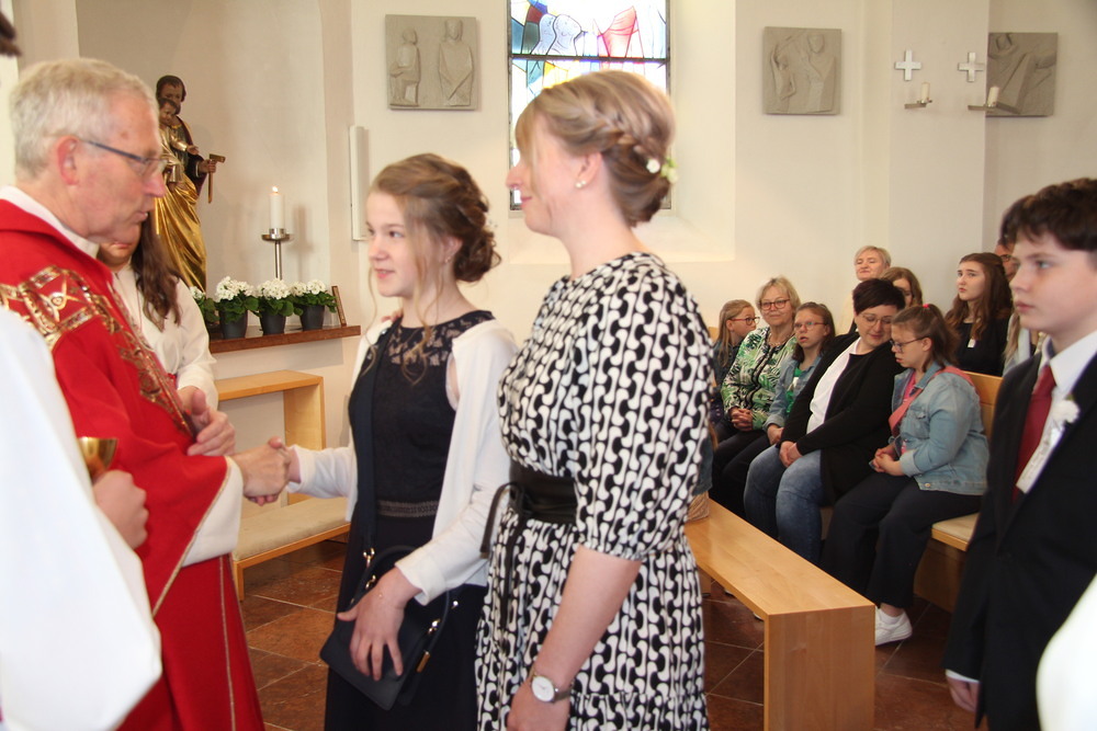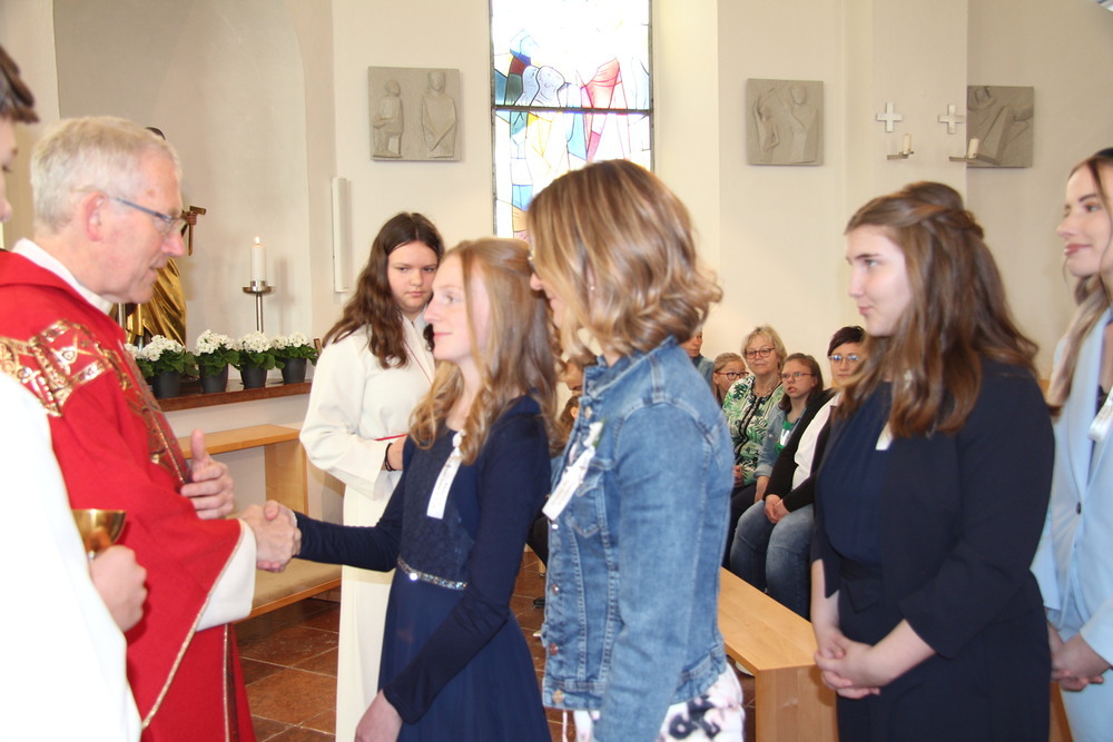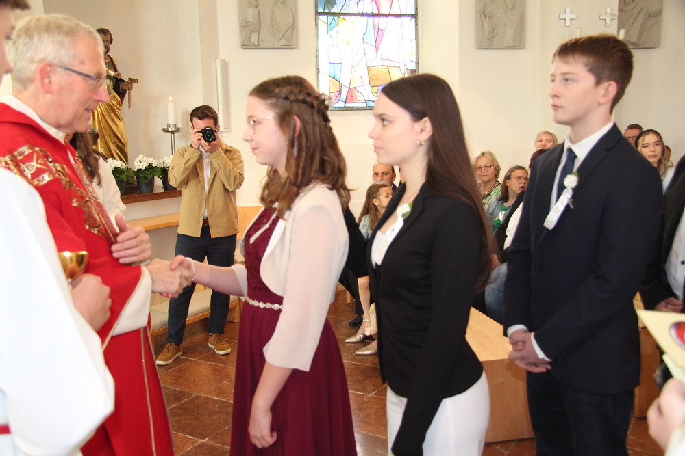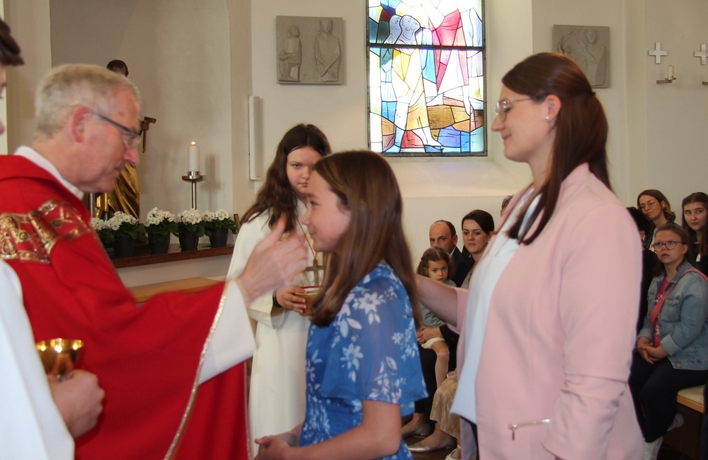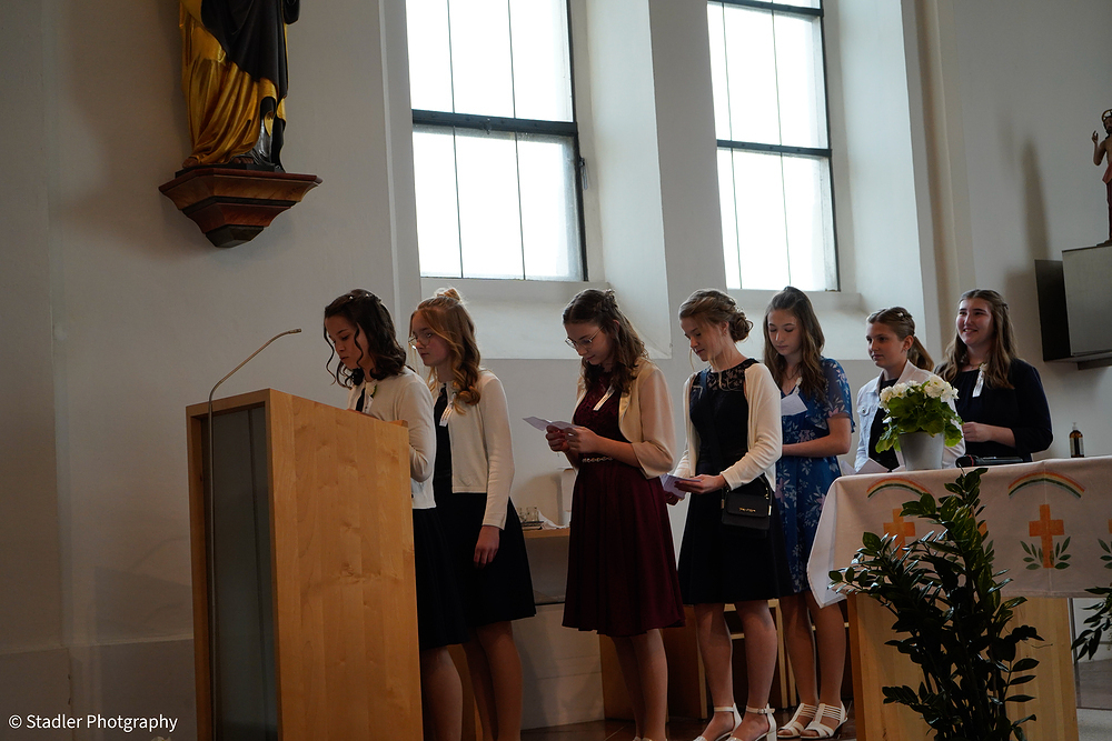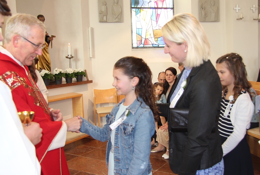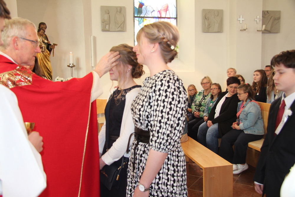 Nach dem festlichen Empfang des Firmspenders Kan. KonsR Dr. Johann Hintermaier mit Pfarrer Thaddäus und der Firmlinge am Gemeindeplatz folgte der Einzug in die Pfarrkirche und die Feier der Hl. Messe mit der Firmspendung.