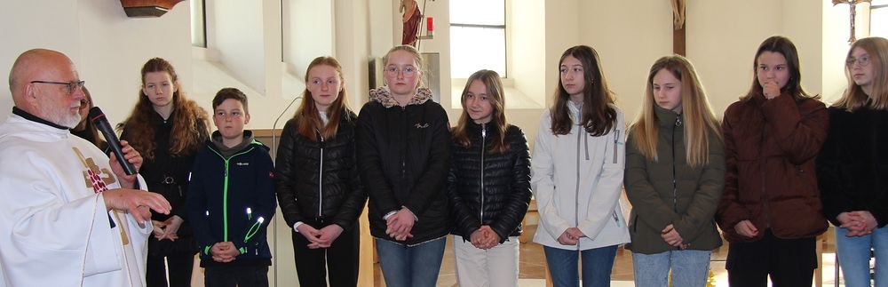 Am Sonntag, dem 10.4.2023, wurden 18 Firmlinge im Rahmen des Sonntagsgottesdienstes der Gemeinde vorgestellt. Wir freuen uns, dass wir die Jugendlichen in den kommenden Monaten gemeinsam auf das Fest vorbereiten dürfen, damit sie ihren Glauben besser verstehen und begreifen mögen und der Heilige Geist ihnen Liebe und Geduld dabei schenke.