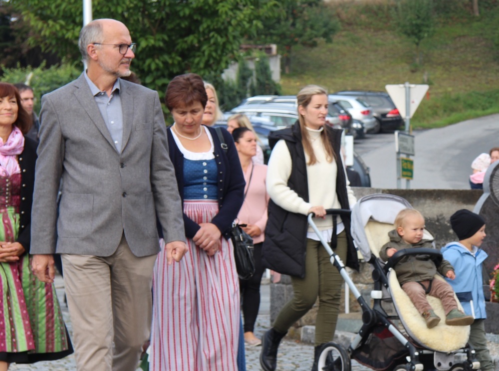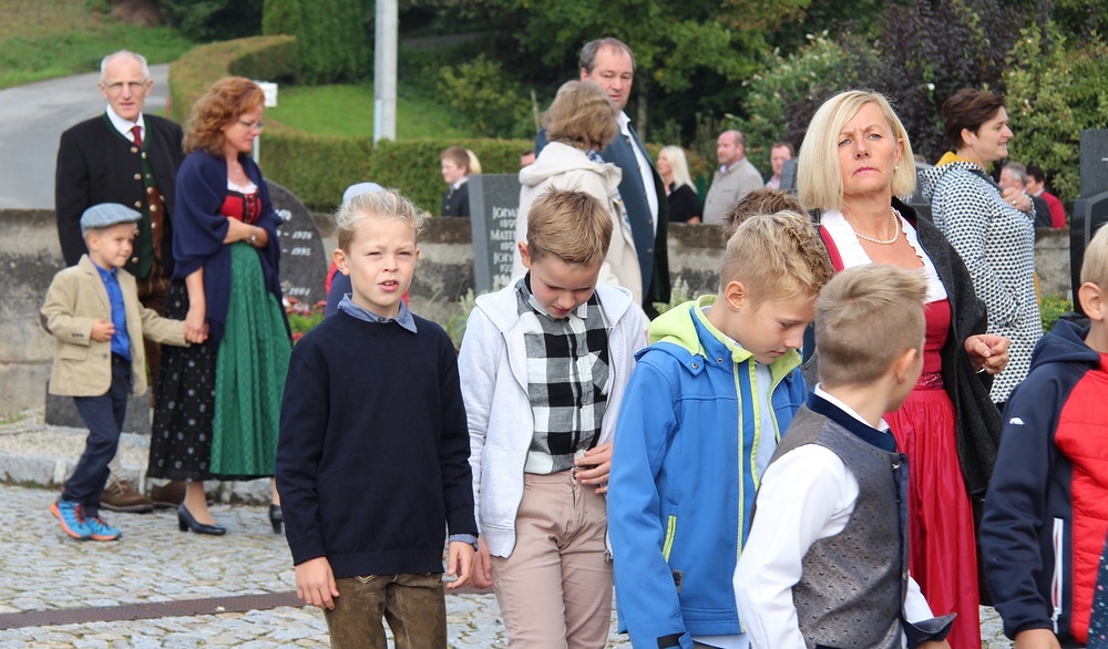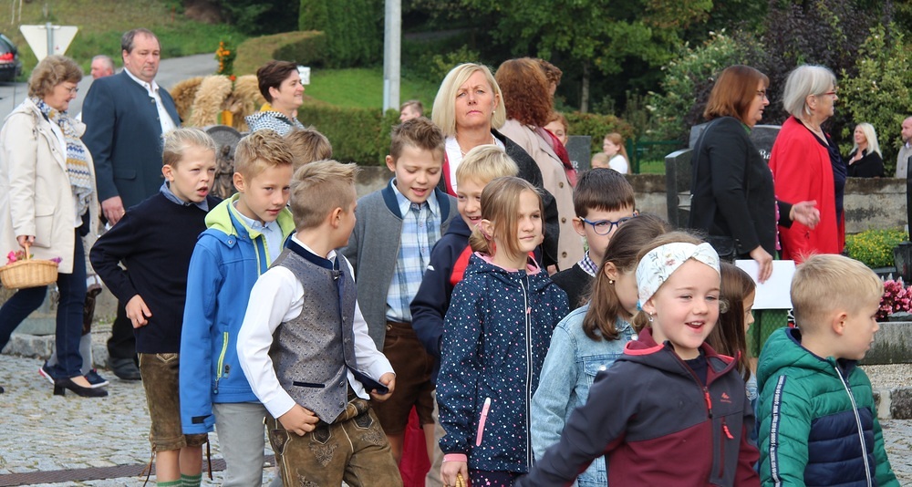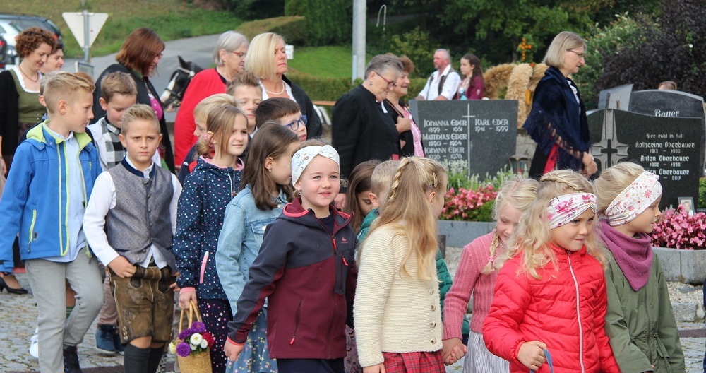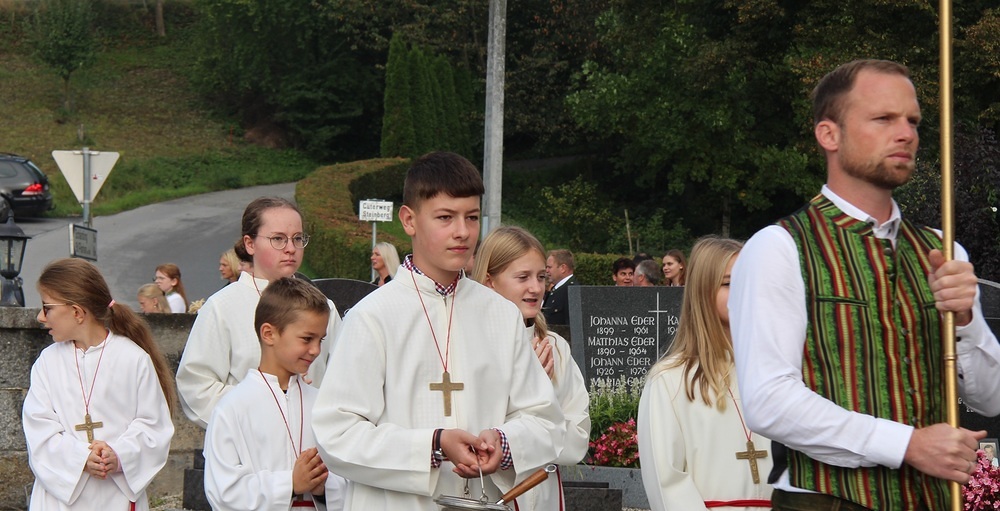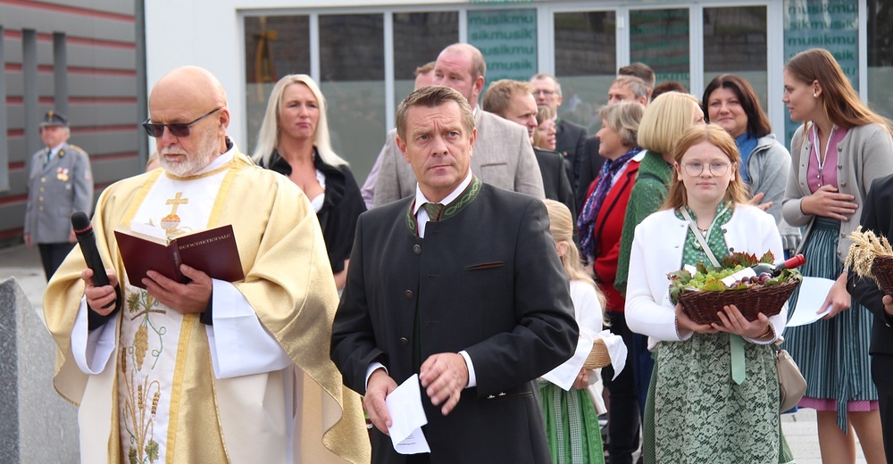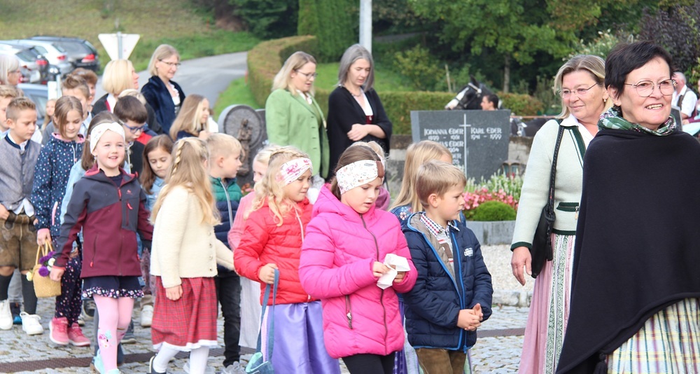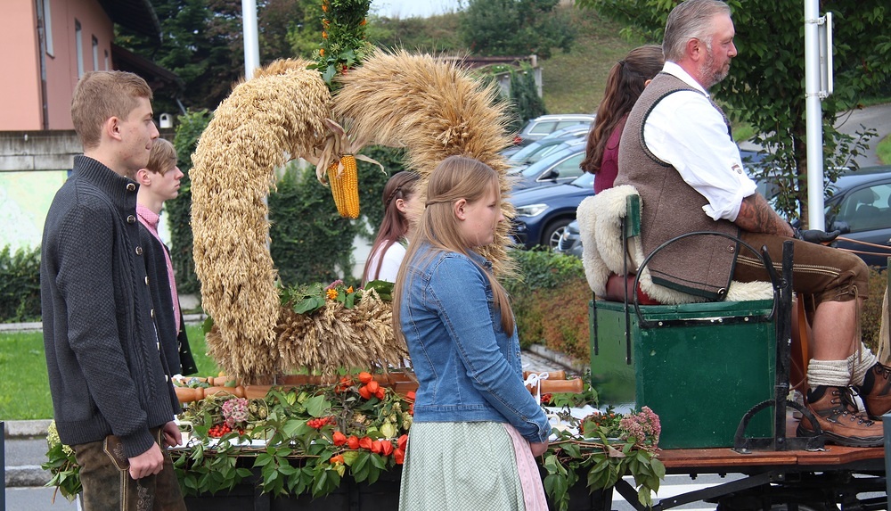 Kunstvoll zur Erntekrone gebundenes Getreide, Obst, Gemüse und Blumen werden in einer festlichen Prozession von der Ortschaften: Wienering, Edermaning und Eggenberg vom Kirchenplatz in die Kirche getragen. Der Duft der Früchte und die bunten Farben der Erntegaben stimmen uns dankbar.