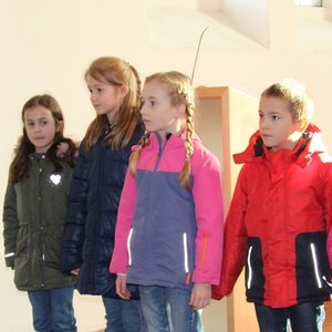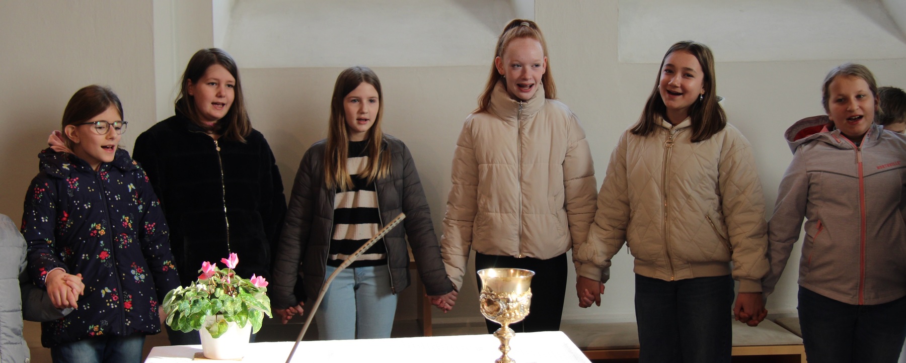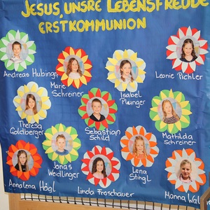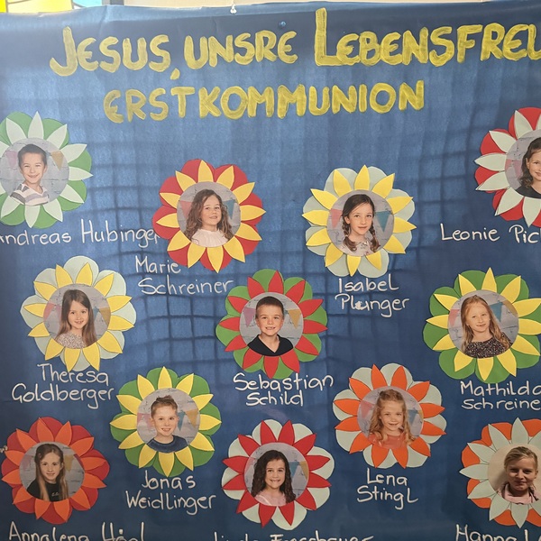 Liebe Erstkommunionkinder, liebe Geschwister und Eltern, liebe Tischmütter: die Zeit, die für euch jetzt beginnt, ist so richtig ein Geschenk. Ihr Kinder werdet viel von Jesus kennenlernen, ihr, liebe Eltern und Geschwister, werdet noch mehr zusammenwachsen: denn ihr seid ja die Kirche im Kleinen; und ihr, liebe Tischmütter, werdet zusammen mit den Kindern auf Entdeckungsreise gehen: Jesus und seine Lebensbotschaft entdecken. Er ist unsere Mitte. Danke für Eure Bereitschaft.