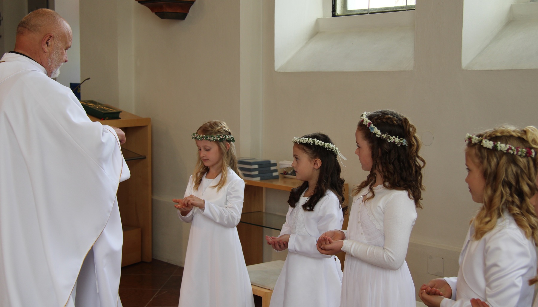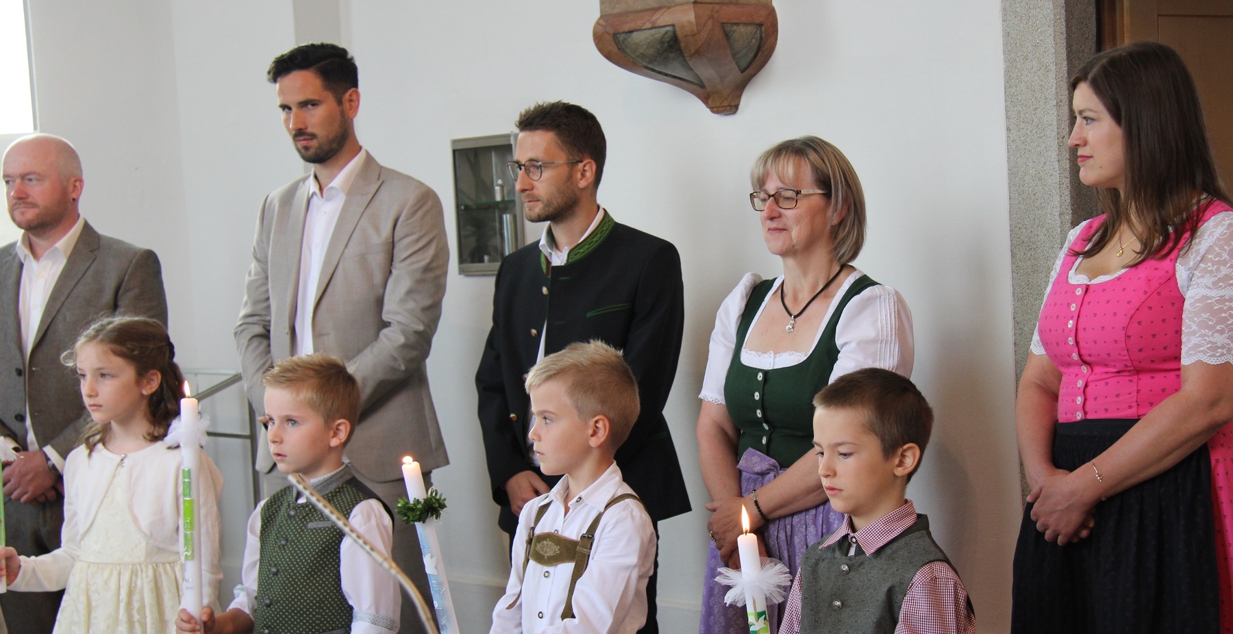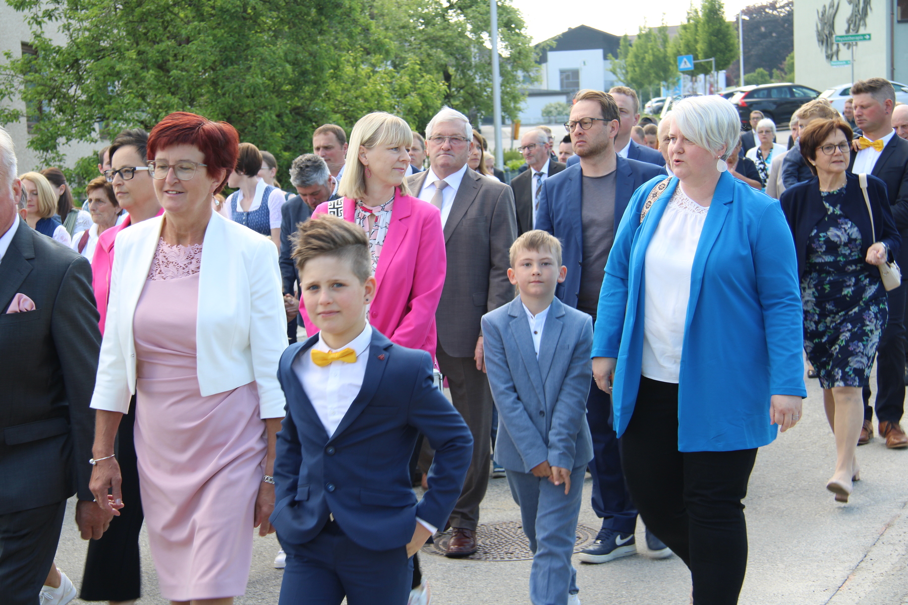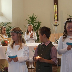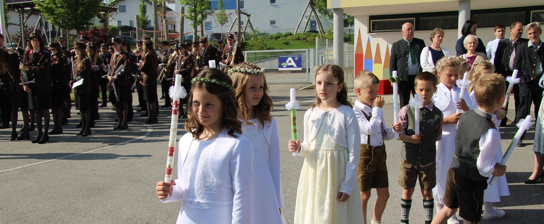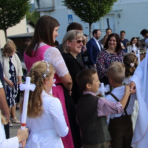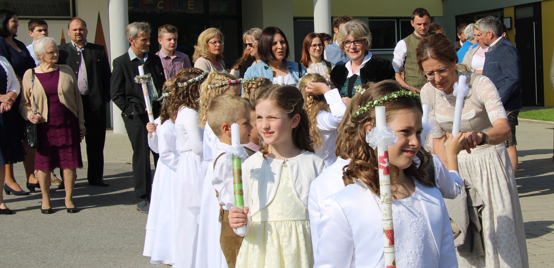Insgesamt 12 Mädchen und Buben aus der Gemeinde Rainbach gingen am Christi Himmerfahrt zum ersten Mal an den Tisch des Herrn. Für die 12 Kinder aus Rainbach beginnt dieser Tag besonders früh.. Die Aufstellung aller Kinder fand ebenfalls traditionell vor der Schule statt. Hier trafen sich Kinder und Familien aus allen Orten, um dann ebenfalls mit schöner Blasmusik, Pfarrer Thaddäus ,und den Ministranten bei strahlendem Sonnenschein in die geschmückte und bis zum letzten Platz voll besuchte Kirche St. Peter einzuziehen. Der Festgottesdienst zur ersten heiligen Kommunion stand unter dem Motto „ Jesus ,unsere Lenensfreude“. In seiner Predigt ging Hauptzelebrant Pfarrer Thaddäus Kret darauf ein, dass natürlich jeder Mensch eingeladen ist, die Köstlichkeiten an Gottes Tisch zu genießen, Jesus lädt jeden ein an seinem Tisch zu sitzen. Diesen festen Platz bei Jesus wünschte Pfarrer thaddäus jedem Kommunionkind für die Zukunft. Für eine wunderschöne, musikalische Gestaltung des Festgottesdienstes sorgten Fam. Niedermaier mit Kinderchor.