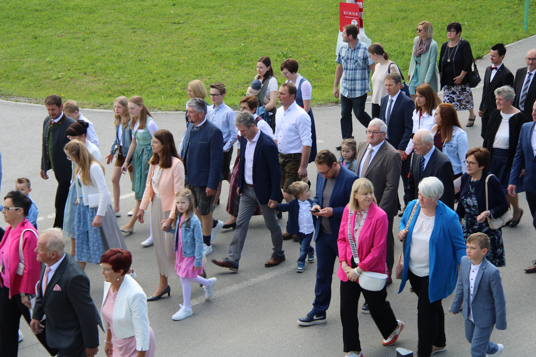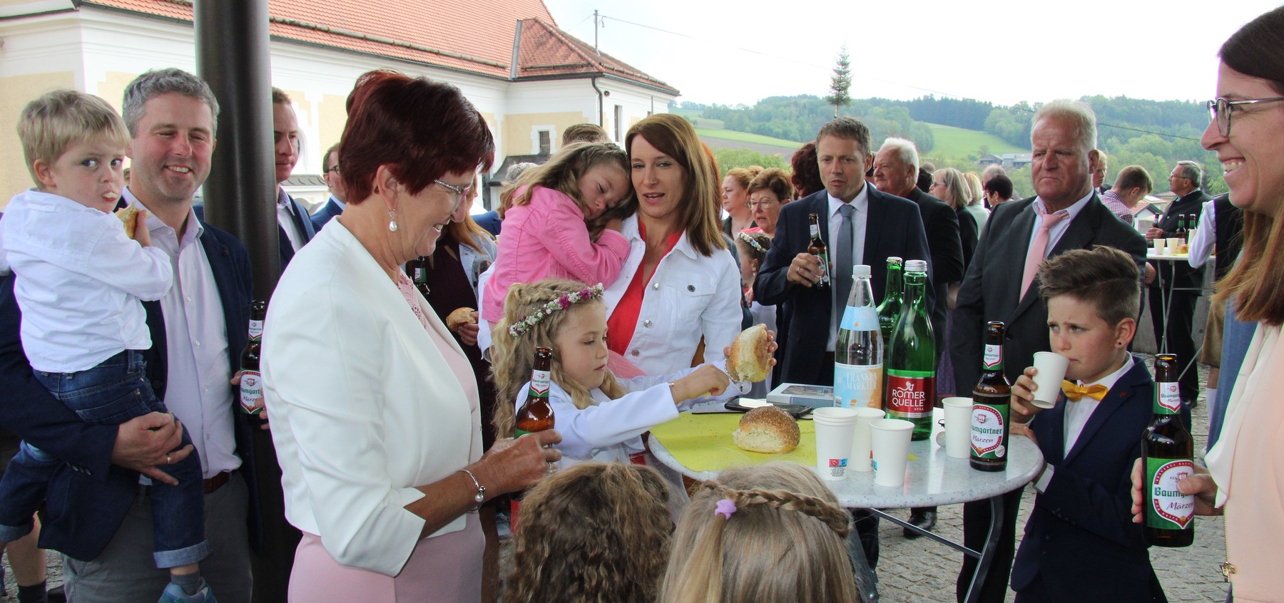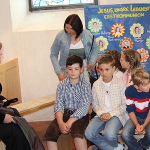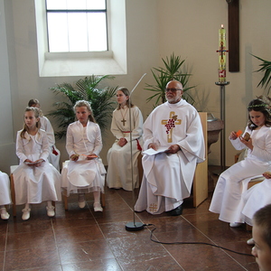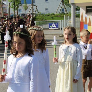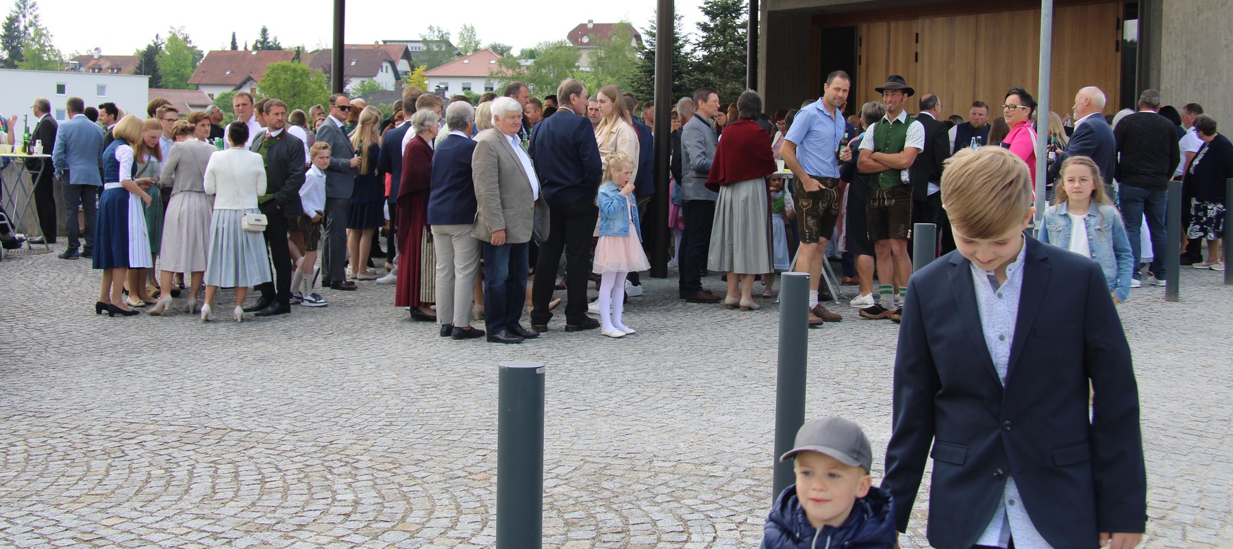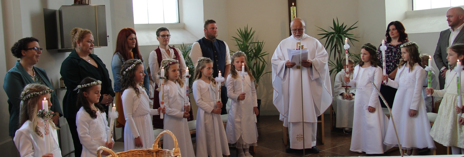 Insgesamt 12 Mädchen und Buben aus der Gemeinde Rainbach gingen am Christi Himmerfahrt zum ersten Mal an den Tisch des Herrn. Für die 12 Kinder aus Rainbach beginnt dieser Tag besonders früh.. Die Aufstellung aller Kinder fand ebenfalls traditionell vor der Schule statt. Hier trafen sich Kinder und Familien aus allen Orten, um dann ebenfalls mit schöner Blasmusik, Pfarrer Thaddäus ,und den Ministranten bei strahlendem Sonnenschein in die geschmückte und bis zum letzten Platz voll besuchte Kirche St. Peter einzuziehen. Der Festgottesdienst zur ersten heiligen Kommunion stand unter dem Motto „ Jesus ,unsere Lenensfreude“. In seiner Predigt ging Hauptzelebrant Pfarrer Thaddäus Kret darauf ein, dass natürlich jeder Mensch eingeladen ist, die Köstlichkeiten an Gottes Tisch zu genießen, Jesus lädt jeden ein an seinem Tisch zu sitzen. Diesen festen Platz bei Jesus wünschte Pfarrer thaddäus jedem Kommunionkind für die Zukunft. Für eine wunderschöne, musikalische Gestaltung des Festgottesdienstes sorgten Fam. Niedermaier mit Kinderchor.