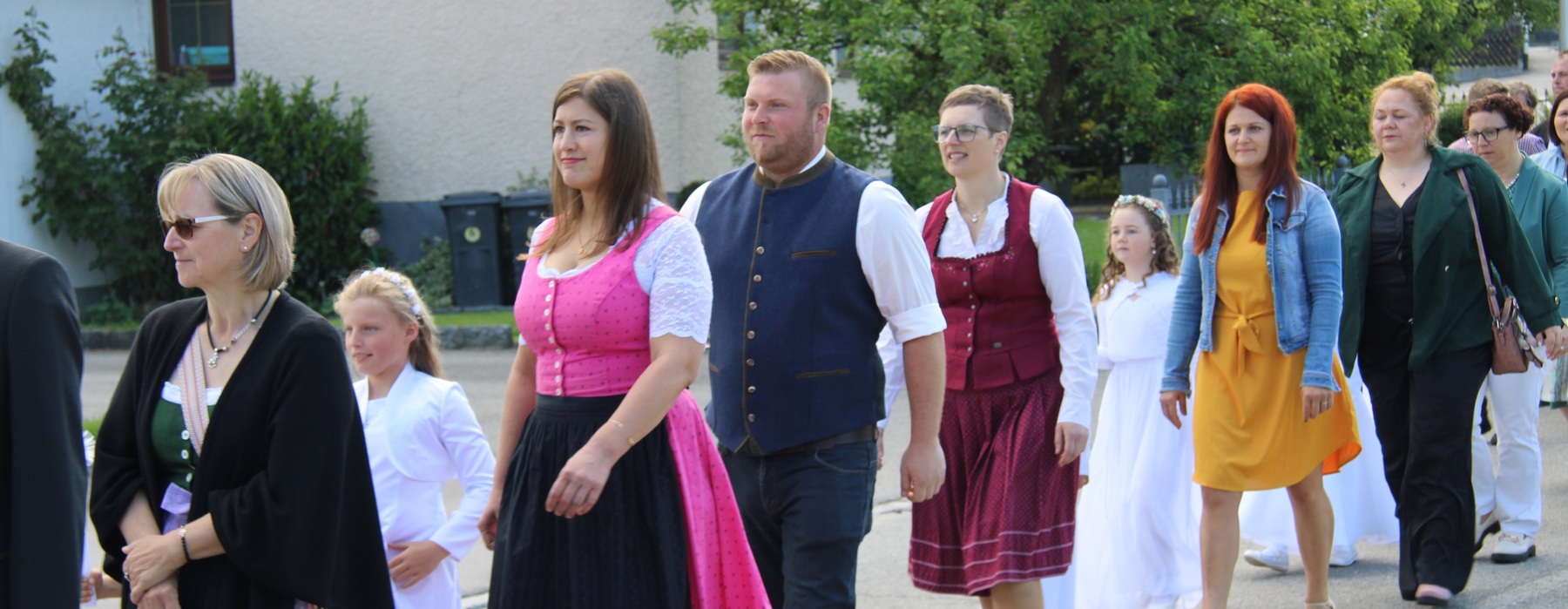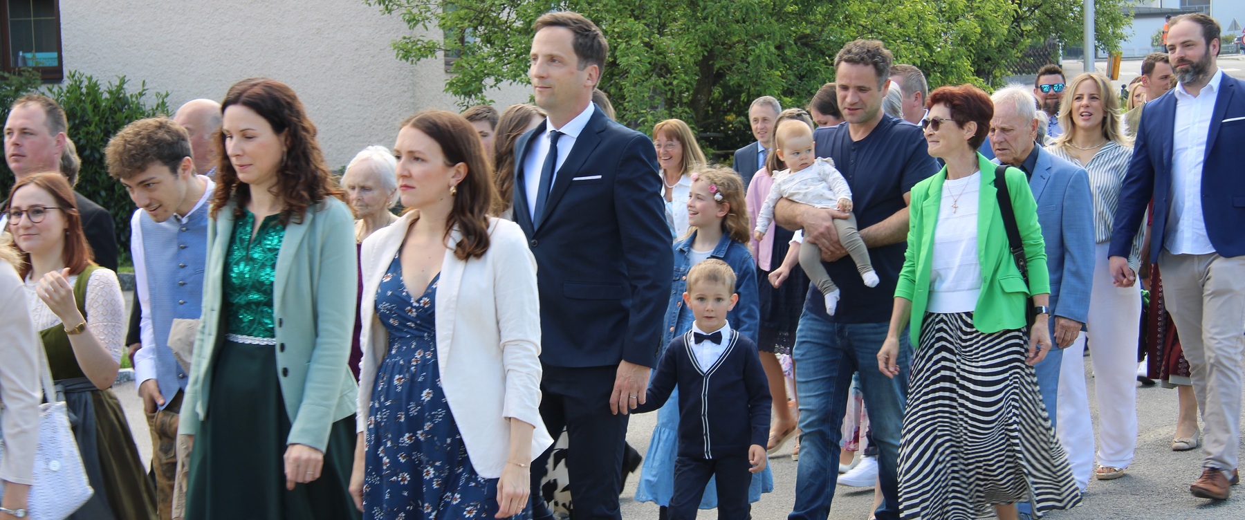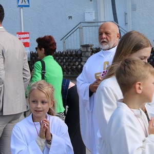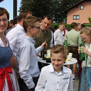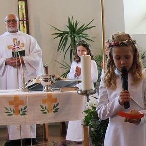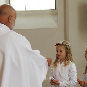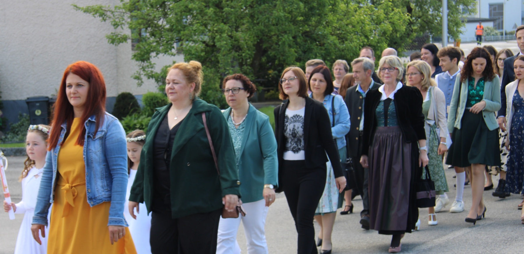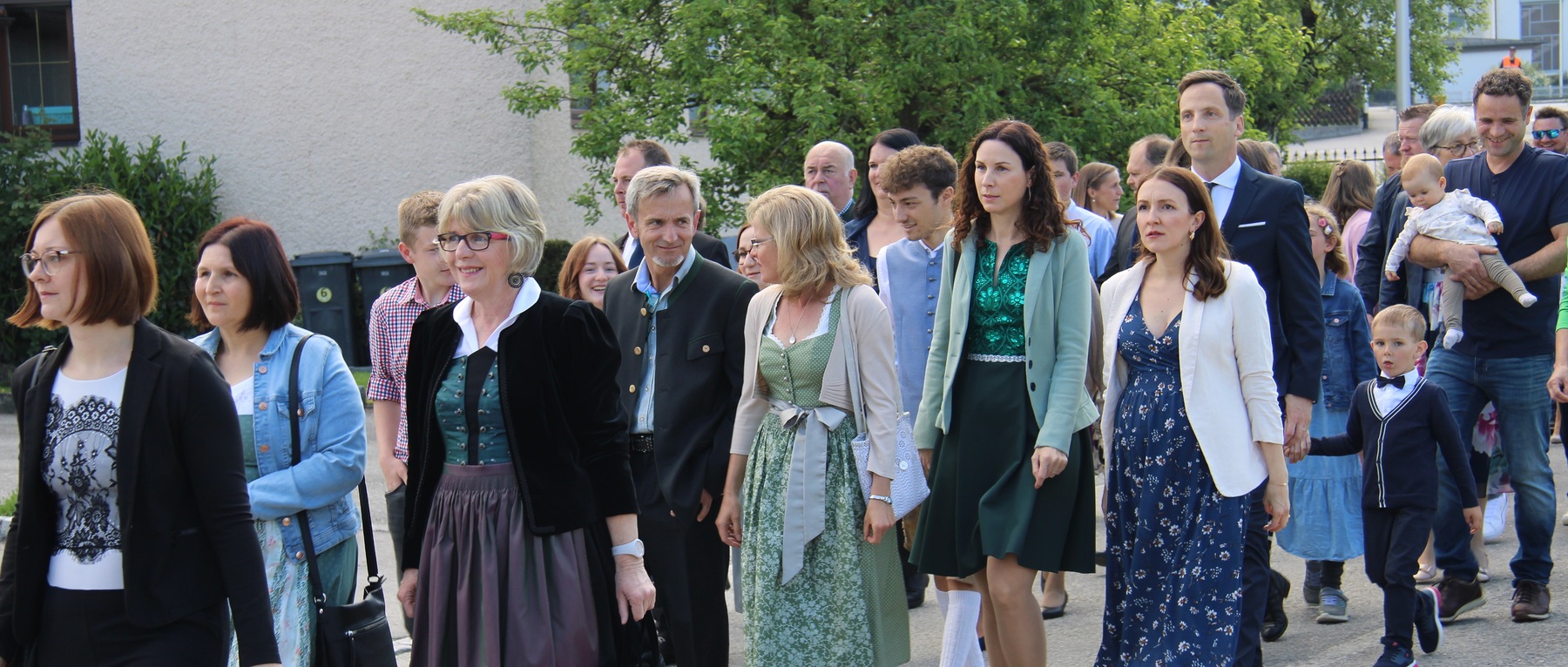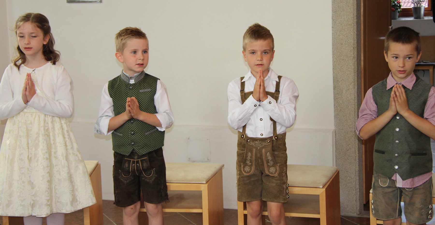 Insgesamt 12 Mädchen und Buben aus der Gemeinde Rainbach gingen am Christi Himmerfahrt zum ersten Mal an den Tisch des Herrn. Für die 12 Kinder aus Rainbach beginnt dieser Tag besonders früh.. Die Aufstellung aller Kinder fand ebenfalls traditionell vor der Schule statt. Hier trafen sich Kinder und Familien aus allen Orten, um dann ebenfalls mit schöner Blasmusik, Pfarrer Thaddäus ,und den Ministranten bei strahlendem Sonnenschein in die geschmückte und bis zum letzten Platz voll besuchte Kirche St. Peter einzuziehen. Der Festgottesdienst zur ersten heiligen Kommunion stand unter dem Motto „ Jesus ,unsere Lenensfreude“. In seiner Predigt ging Hauptzelebrant Pfarrer Thaddäus Kret darauf ein, dass natürlich jeder Mensch eingeladen ist, die Köstlichkeiten an Gottes Tisch zu genießen, Jesus lädt jeden ein an seinem Tisch zu sitzen. Diesen festen Platz bei Jesus wünschte Pfarrer thaddäus jedem Kommunionkind für die Zukunft. Für eine wunderschöne, musikalische Gestaltung des Festgottesdienstes sorgten Fam. Niedermaier mit Kinderchor.