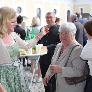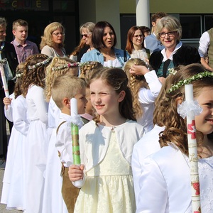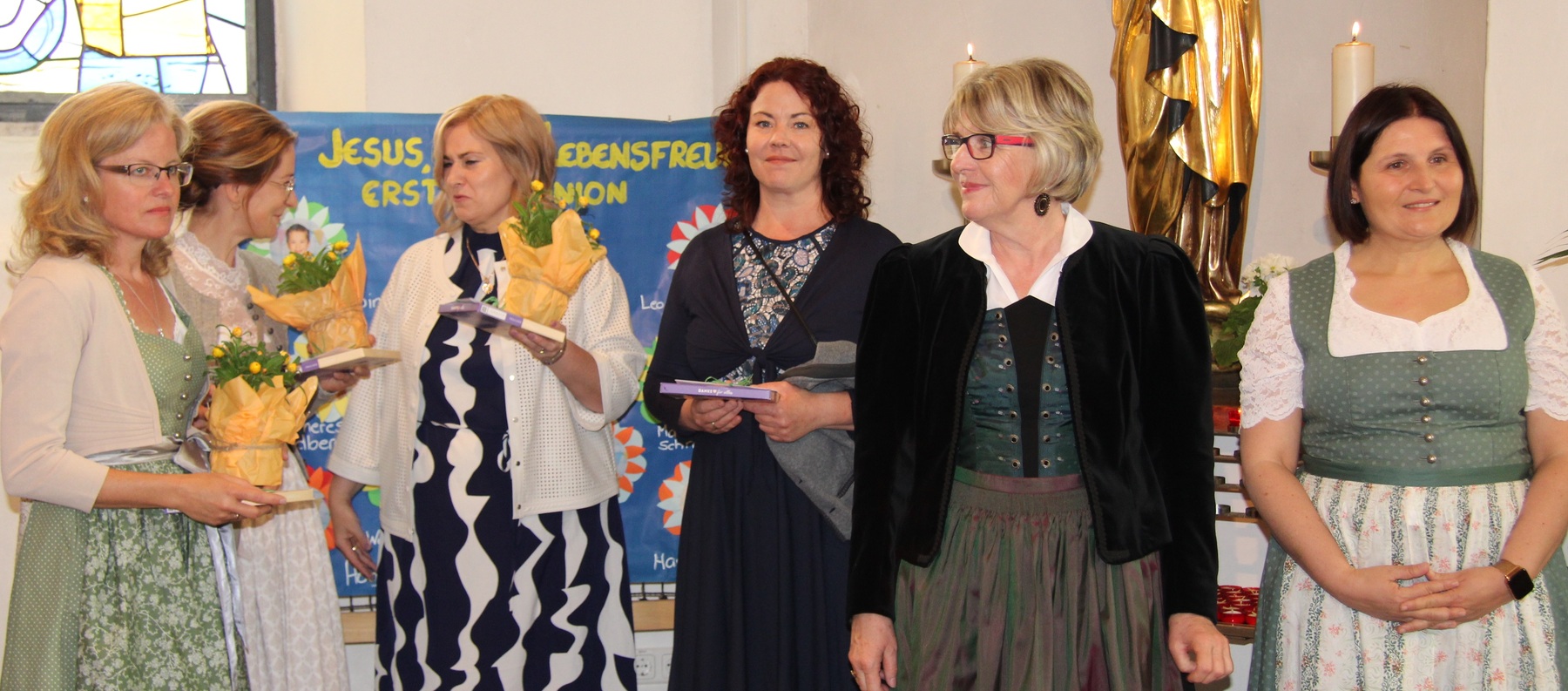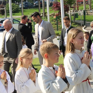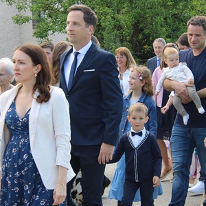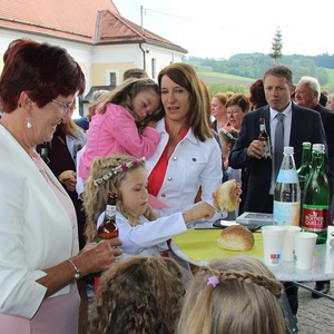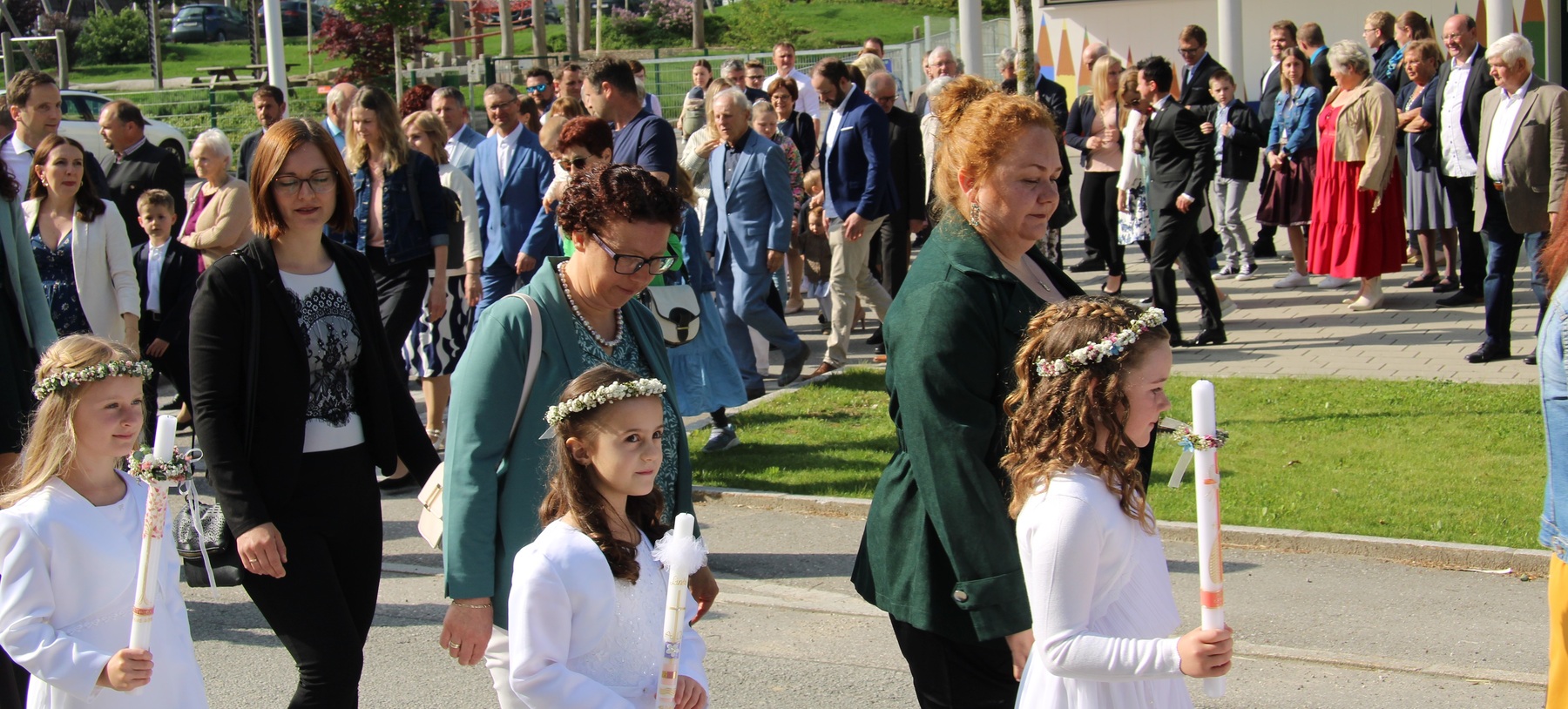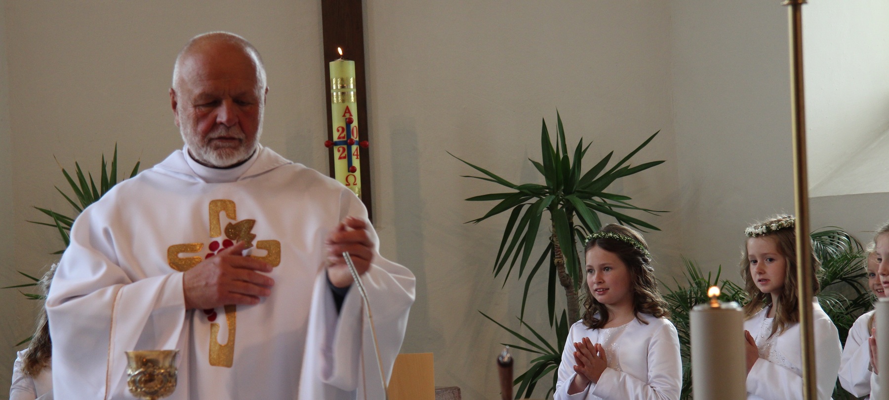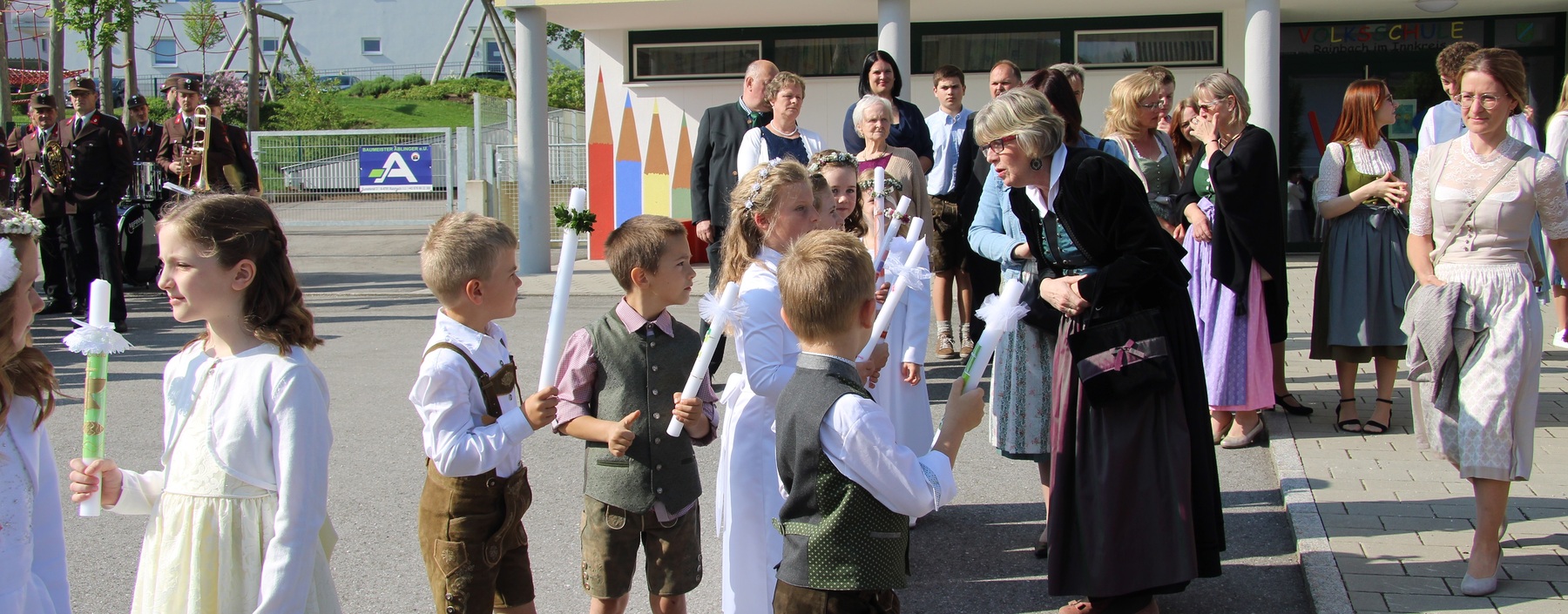 Insgesamt 12 Mädchen und Buben aus der Gemeinde Rainbach gingen am Christi Himmerfahrt zum ersten Mal an den Tisch des Herrn. Für die 12 Kinder aus Rainbach beginnt dieser Tag besonders früh.. Die Aufstellung aller Kinder fand ebenfalls traditionell vor der Schule statt. Hier trafen sich Kinder und Familien aus allen Orten, um dann ebenfalls mit schöner Blasmusik, Pfarrer Thaddäus ,und den Ministranten bei strahlendem Sonnenschein in die geschmückte und bis zum letzten Platz voll besuchte Kirche St. Peter einzuziehen. Der Festgottesdienst zur ersten heiligen Kommunion stand unter dem Motto „ Jesus ,unsere Lenensfreude“. In seiner Predigt ging Hauptzelebrant Pfarrer Thaddäus Kret darauf ein, dass natürlich jeder Mensch eingeladen ist, die Köstlichkeiten an Gottes Tisch zu genießen, Jesus lädt jeden ein an seinem Tisch zu sitzen. Diesen festen Platz bei Jesus wünschte Pfarrer thaddäus jedem Kommunionkind für die Zukunft. Für eine wunderschöne, musikalische Gestaltung des Festgottesdienstes sorgten Fam. Niedermaier mit Kinderchor.