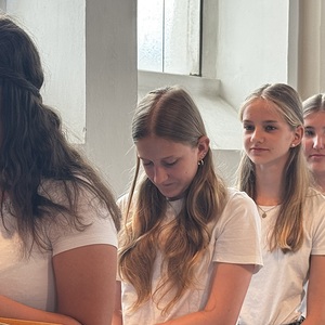 Voller Freude nehmen das erste Mal 10 Ministrant*innen aus der Pfarrgemeinde Rainbach teil.