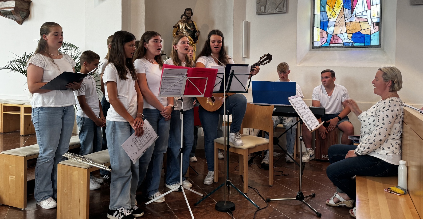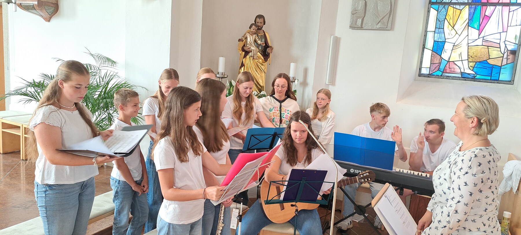 Am Sonntag, 14. Juli haben diese jungen Pilger aus Rainbach den Gottesdienst gestaltet. Unter der musikalischen Leitung von Christa Schmid haben sich die pilgernden Ministranten der Pfarrgemeinschaft vorgestellt.