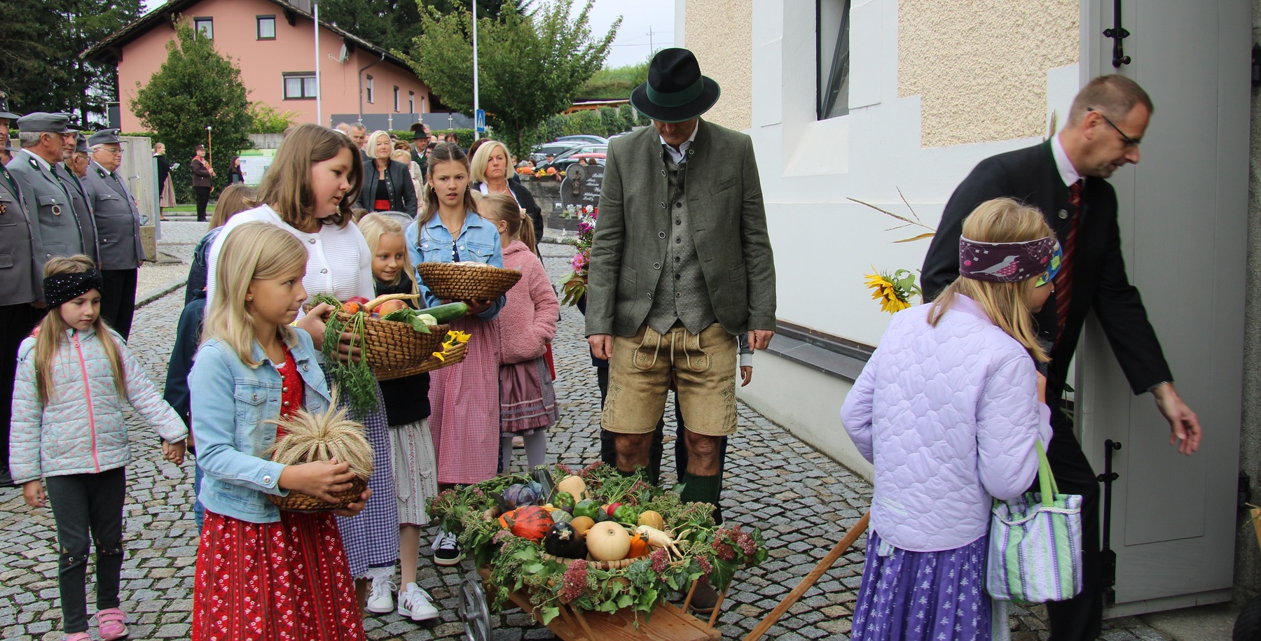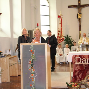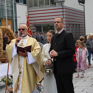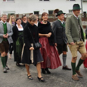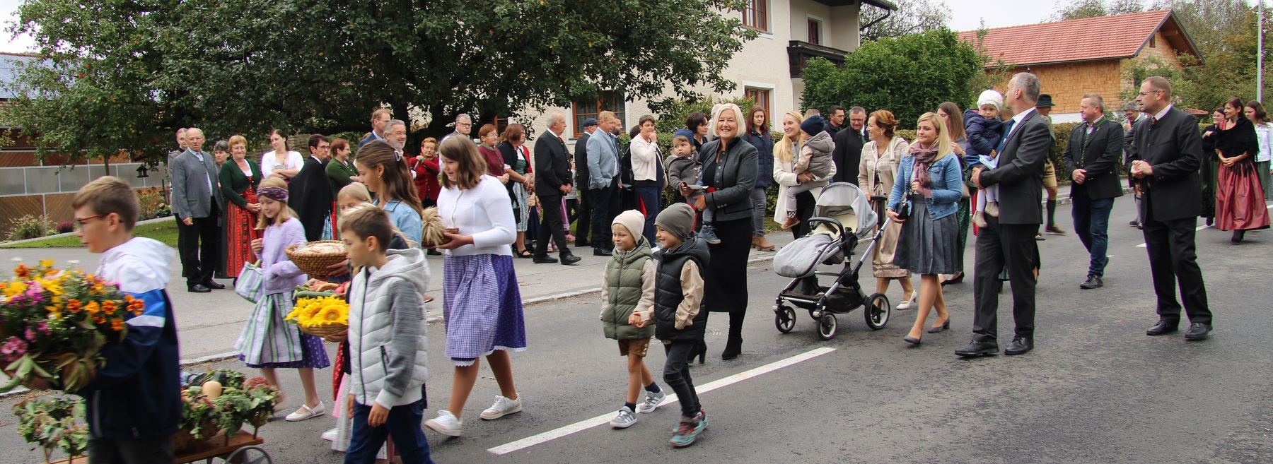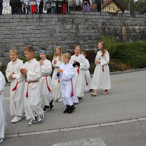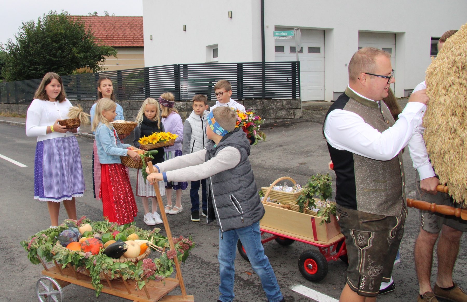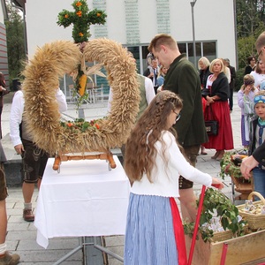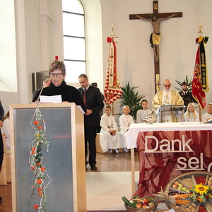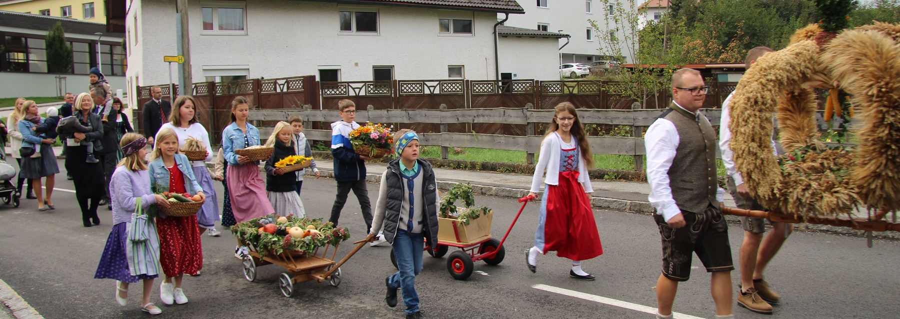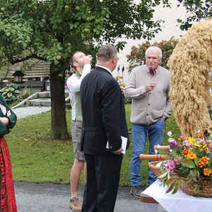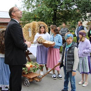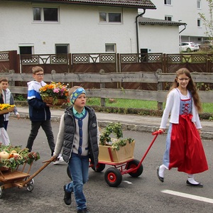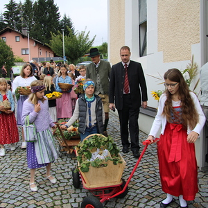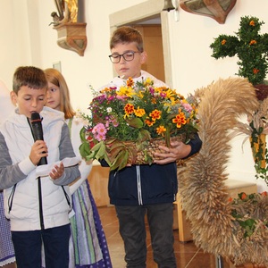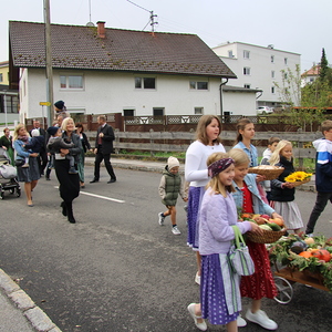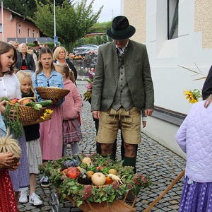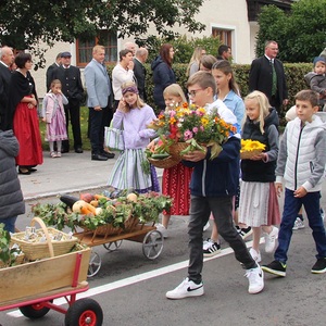 Am 29. September wurde in Rainbach das Erntedankfest gefeiert. Die Ortschaft Hauzing war in diesem Jahr für die Vorbereitung des Festes verantwortlich. In der Früh traf sich die Dorfgemeinschaft bei Fam. Moritz und zog in Begleitung der Feuerwehrmusikkapelle mit der Erntekrone zum Gemeindeplatz. In der Begrüßung durch die Dorfgemeinschaft wurde auf die Bedeutung des Erntedankfestes hingewiesen. Angesichts der vielen Krisen und sinnlosen Kriege weltweit und der zahlreichen Unwetter im heurigen Jahr in und um Österreich, die so viel Zerstörung und Leid gebracht haben, sollten wir uns wieder bewusst machen, dass vieles nicht so selbstverständlich ist, wie wir es gerne glauben. Wir sollten wieder mal bewusst Dankeschön sagen, dass wir in einem Land leben dürfen, wo Frieden herrscht, in einem Ort, der von Naturkatastrophen verschont wurde und in einer Gemeinde, wo der Zusammenhalt noch funktioniert. Ganz bewusst Dankeschön sagen für die verschiedensten Ernten in der Landwirtschaft und in den Gärten, Dankeschön für Familie und Freunde, Dankeschön für die Arbeit und den Arbeitsplatz - einfach wieder einmal Vergelt’s Gott sagen für’s Leben, das wünschte die Hauzinger Dorfgemeinschaft auf dem Gemeindeplatz der Pfarrbevölkerung. Nach der feierlichen Segnung der Erntekrone durch Pfarrer Kret und der musikalischen Umrahmung durch unseren Kirchchor, führte der feierliche Festzug, angeführt von der Feuerwehrmusikkapelle, in die Pfarrkirche. Dort wurde gemeinsam mit der gesamten Pfarrbevölkerung, der Feuerwehr, Kameradschaftsbund, Landjugend, Volksschulkinder und Goldhaubenfrauen gemeinsam gebetet, gesungen und gefeiert. Zur Gabenbereitung überbrachten Kinder Körbe mit Getreide, Brot, Gemüse und Obst, sowie Blumen. Als Erinnerungsgeschenk gab es kleine Gläser mit Honig und Ausmalbilder für die Kinder. Zum Abschluss bedankte sich Pfarrer Kret auch bei der älteren Gemeindebevölkerung, deren Ehrentag heuer wieder passenderweise mit dem Erntedankfest gefeiert wurde. Gemütlich klang das Erntedankfest beim Kirchenwirt aus, wo die die ältere Generation von der Gemeinde Rainbach zum Mittagessen eingeladen wurde.