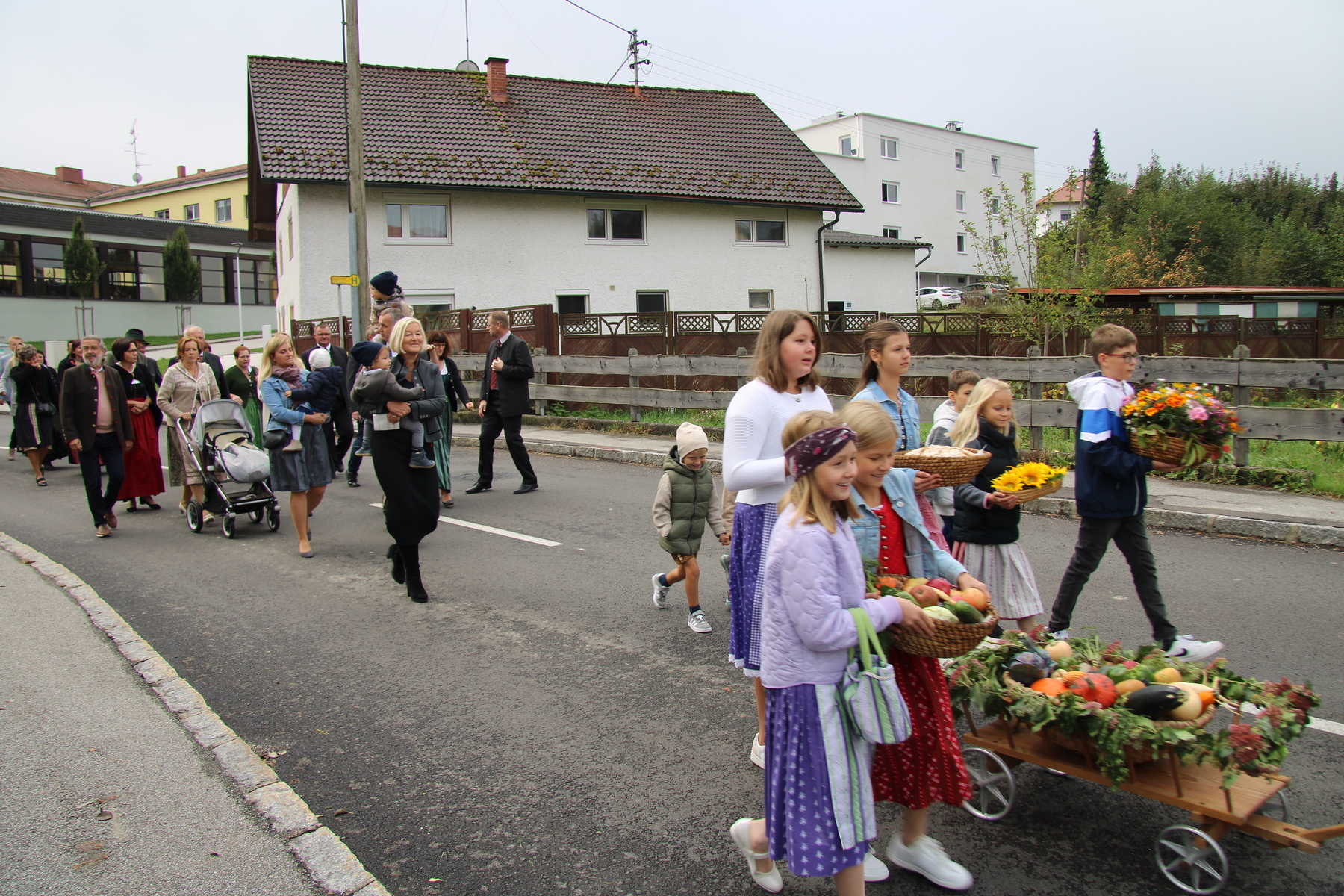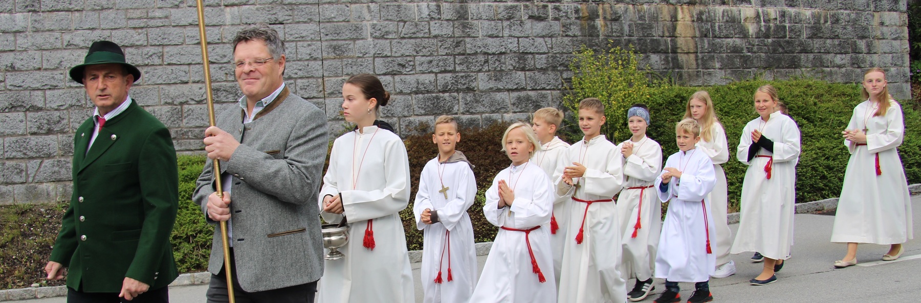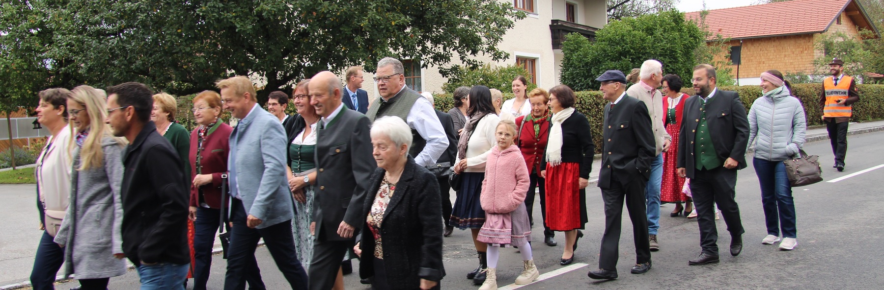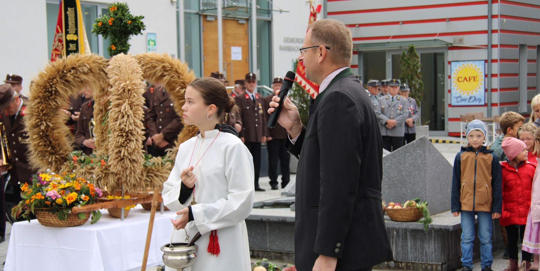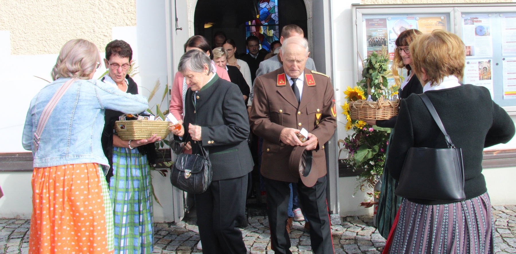 Am 29. September wurde in Rainbach das Erntedankfest gefeiert. Die Ortschaft Hauzing war in diesem Jahr für die Vorbereitung des Festes verantwortlich. In der Früh traf sich die Dorfgemeinschaft bei Fam. Moritz und zog in Begleitung der Feuerwehrmusikkapelle mit der Erntekrone zum Gemeindeplatz. In der Begrüßung durch die Dorfgemeinschaft wurde auf die Bedeutung des Erntedankfestes hingewiesen. Angesichts der vielen Krisen und sinnlosen Kriege weltweit und der zahlreichen Unwetter im heurigen Jahr in und um Österreich, die so viel Zerstörung und Leid gebracht haben, sollten wir uns wieder bewusst machen, dass vieles nicht so selbstverständlich ist, wie wir es gerne glauben. Wir sollten wieder mal bewusst Dankeschön sagen, dass wir in einem Land leben dürfen, wo Frieden herrscht, in einem Ort, der von Naturkatastrophen verschont wurde und in einer Gemeinde, wo der Zusammenhalt noch funktioniert. Ganz bewusst Dankeschön sagen für die verschiedensten Ernten in der Landwirtschaft und in den Gärten, Dankeschön für Familie und Freunde, Dankeschön für die Arbeit und den Arbeitsplatz - einfach wieder einmal Vergelt’s Gott sagen für’s Leben, das wünschte die Hauzinger Dorfgemeinschaft auf dem Gemeindeplatz der Pfarrbevölkerung. Nach der feierlichen Segnung der Erntekrone durch Pfarrer Kret und der musikalischen Umrahmung durch unseren Kirchchor, führte der feierliche Festzug, angeführt von der Feuerwehrmusikkapelle, in die Pfarrkirche. Dort wurde gemeinsam mit der gesamten Pfarrbevölkerung, der Feuerwehr, Kameradschaftsbund, Landjugend, Volksschulkinder und Goldhaubenfrauen gemeinsam gebetet, gesungen und gefeiert. Zur Gabenbereitung überbrachten Kinder Körbe mit Getreide, Brot, Gemüse und Obst, sowie Blumen. Als Erinnerungsgeschenk gab es kleine Gläser mit Honig und Ausmalbilder für die Kinder. Zum Abschluss bedankte sich Pfarrer Kret auch bei der älteren Gemeindebevölkerung, deren Ehrentag heuer wieder passenderweise mit dem Erntedankfest gefeiert wurde. Gemütlich klang das Erntedankfest beim Kirchenwirt aus, wo die die ältere Generation von der Gemeinde Rainbach zum Mittagessen eingeladen wurde.