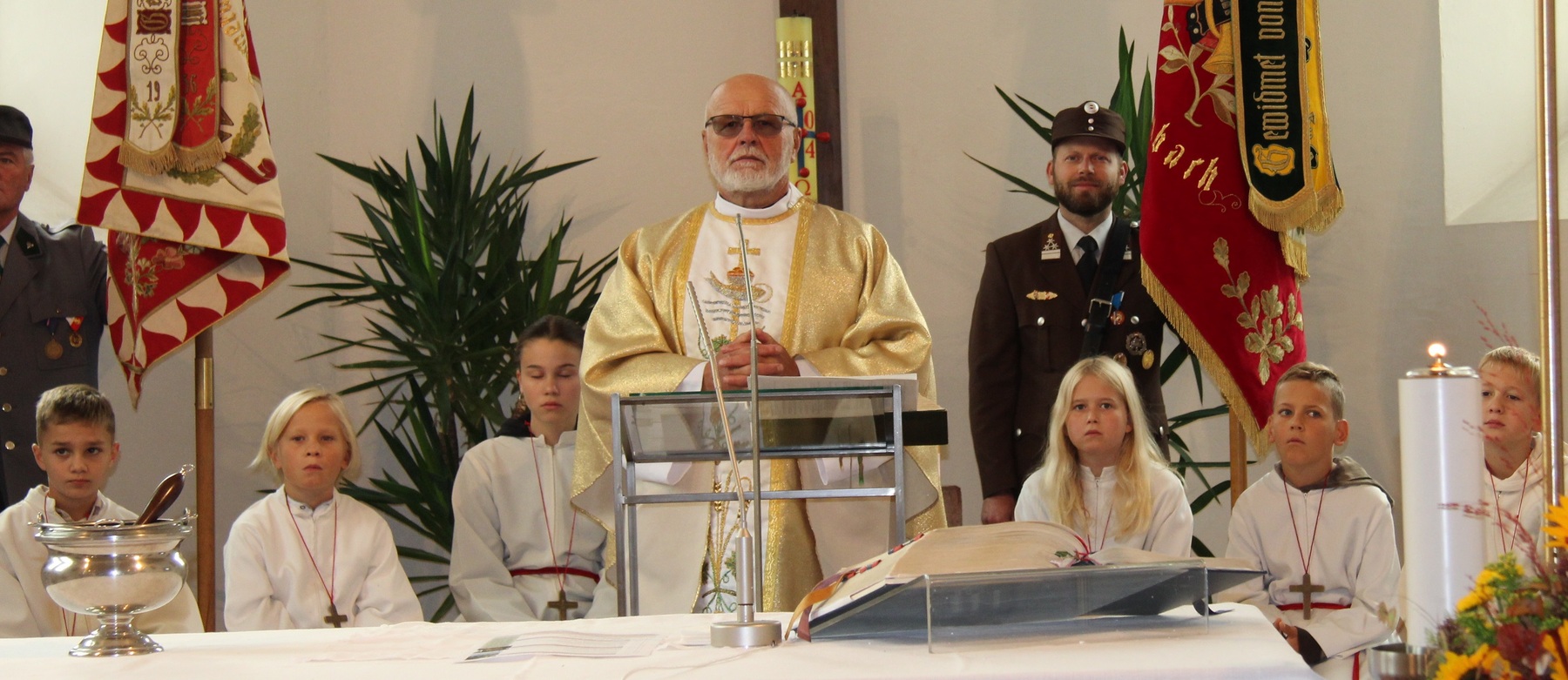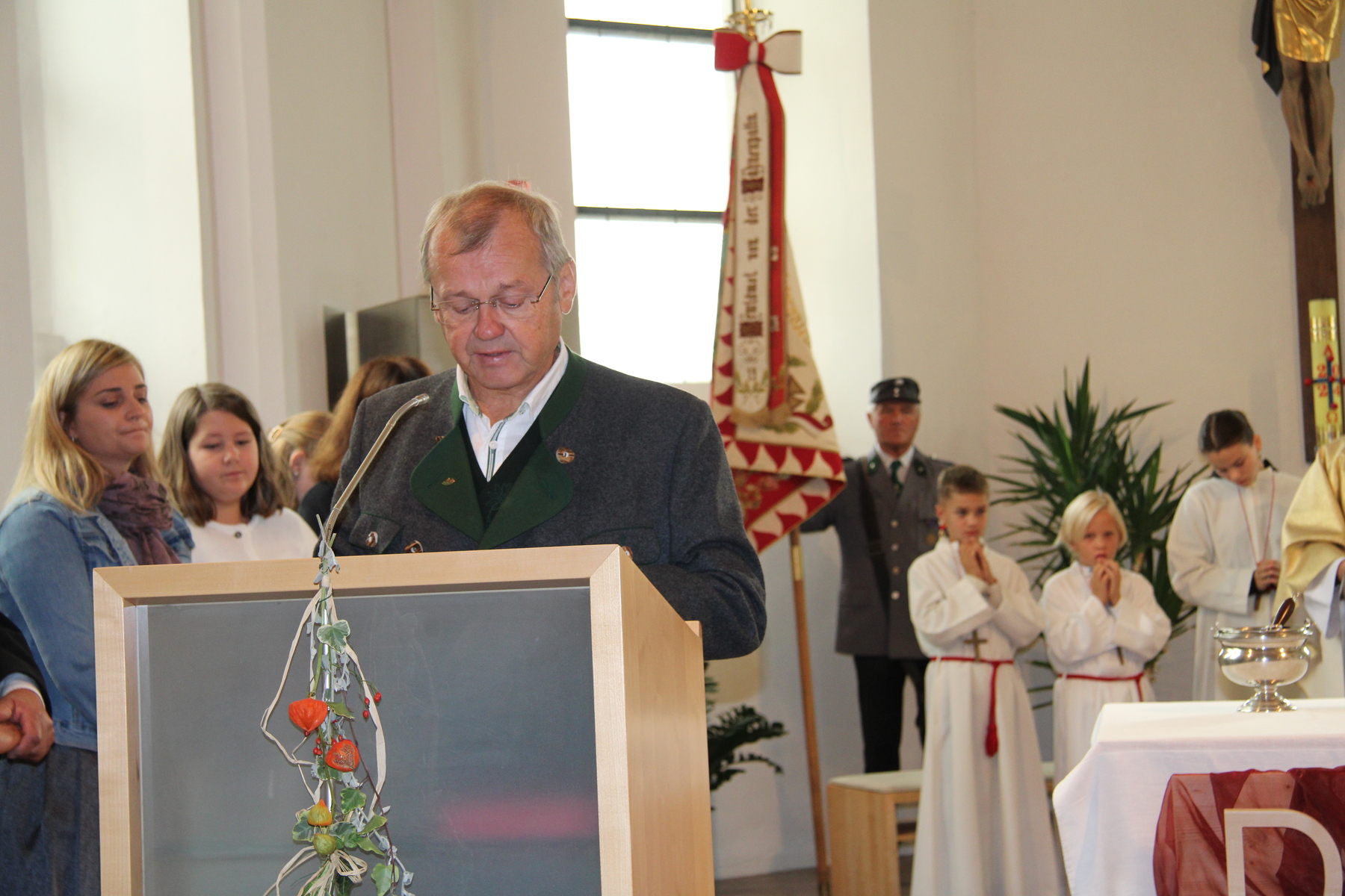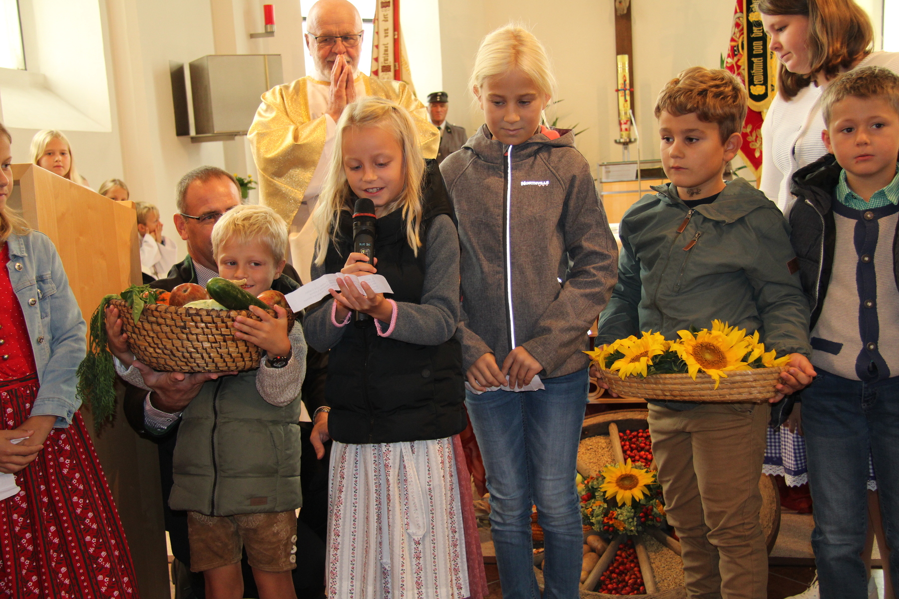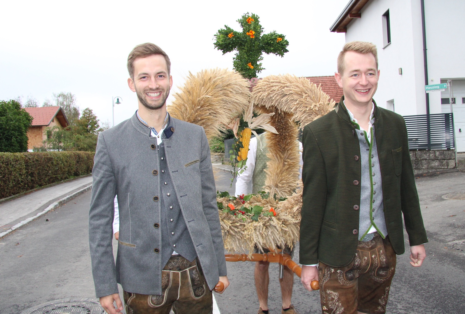 Am 29. September wurde in Rainbach das Erntedankfest gefeiert. Die Ortschaft Hauzing war in diesem Jahr für die Vorbereitung des Festes verantwortlich. In der Früh traf sich die Dorfgemeinschaft bei Fam. Moritz und zog in Begleitung der Feuerwehrmusikkapelle mit der Erntekrone zum Gemeindeplatz. In der Begrüßung durch die Dorfgemeinschaft wurde auf die Bedeutung des Erntedankfestes hingewiesen. Angesichts der vielen Krisen und sinnlosen Kriege weltweit und der zahlreichen Unwetter im heurigen Jahr in und um Österreich, die so viel Zerstörung und Leid gebracht haben, sollten wir uns wieder bewusst machen, dass vieles nicht so selbstverständlich ist, wie wir es gerne glauben. Wir sollten wieder mal bewusst Dankeschön sagen, dass wir in einem Land leben dürfen, wo Frieden herrscht, in einem Ort, der von Naturkatastrophen verschont wurde und in einer Gemeinde, wo der Zusammenhalt noch funktioniert. Ganz bewusst Dankeschön sagen für die verschiedensten Ernten in der Landwirtschaft und in den Gärten, Dankeschön für Familie und Freunde, Dankeschön für die Arbeit und den Arbeitsplatz - einfach wieder einmal Vergelt’s Gott sagen für’s Leben, das wünschte die Hauzinger Dorfgemeinschaft auf dem Gemeindeplatz der Pfarrbevölkerung. Nach der feierlichen Segnung der Erntekrone durch Pfarrer Kret und der musikalischen Umrahmung durch unseren Kirchchor, führte der feierliche Festzug, angeführt von der Feuerwehrmusikkapelle, in die Pfarrkirche. Dort wurde gemeinsam mit der gesamten Pfarrbevölkerung, der Feuerwehr, Kameradschaftsbund, Landjugend, Volksschulkinder und Goldhaubenfrauen gemeinsam gebetet, gesungen und gefeiert. Zur Gabenbereitung überbrachten Kinder Körbe mit Getreide, Brot, Gemüse und Obst, sowie Blumen. Als Erinnerungsgeschenk gab es kleine Gläser mit Honig und Ausmalbilder für die Kinder. Zum Abschluss bedankte sich Pfarrer Kret auch bei der älteren Gemeindebevölkerung, deren Ehrentag heuer wieder passenderweise mit dem Erntedankfest gefeiert wurde. Gemütlich klang das Erntedankfest beim Kirchenwirt aus, wo die die ältere Generation von der Gemeinde Rainbach zum Mittagessen eingeladen wurde.