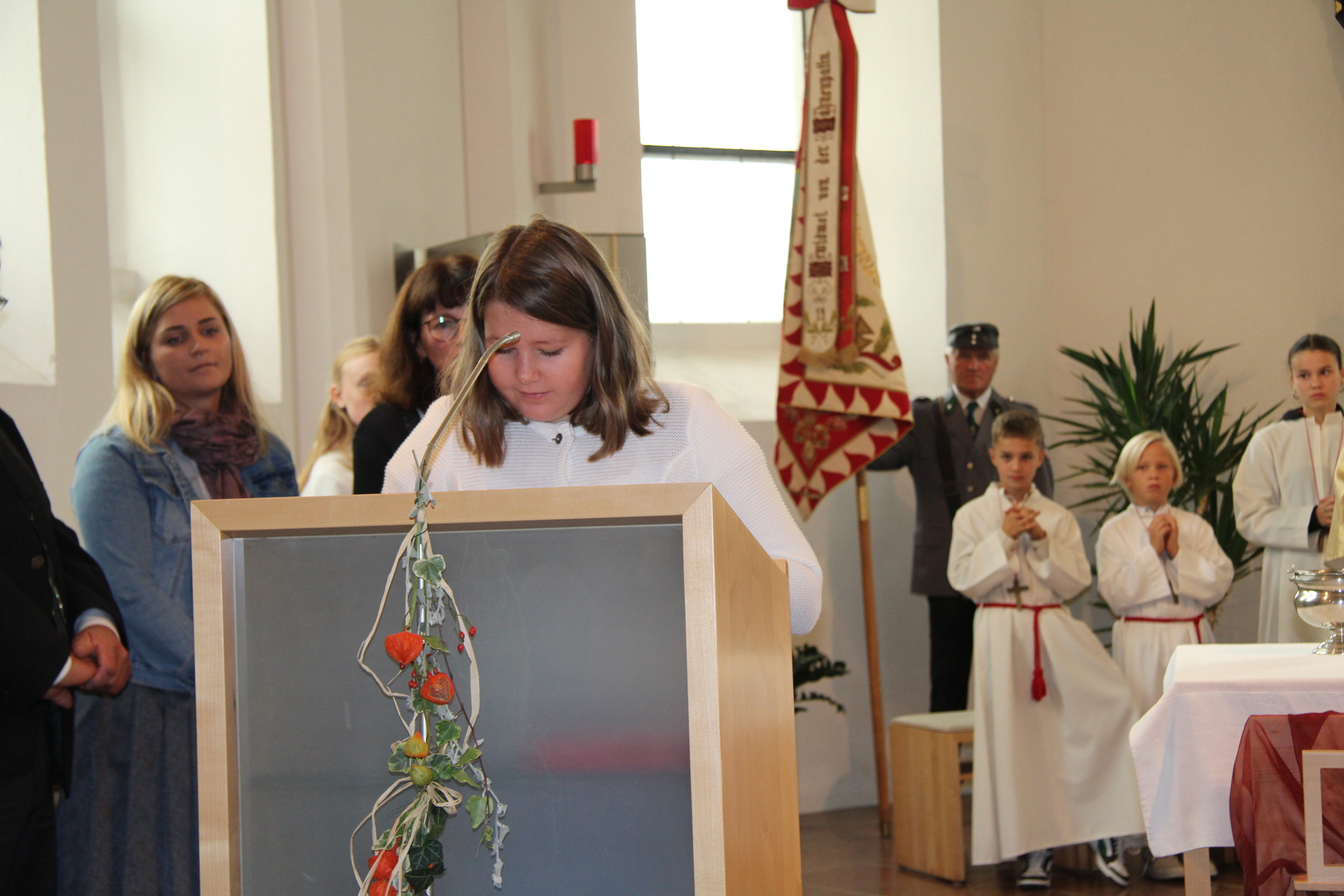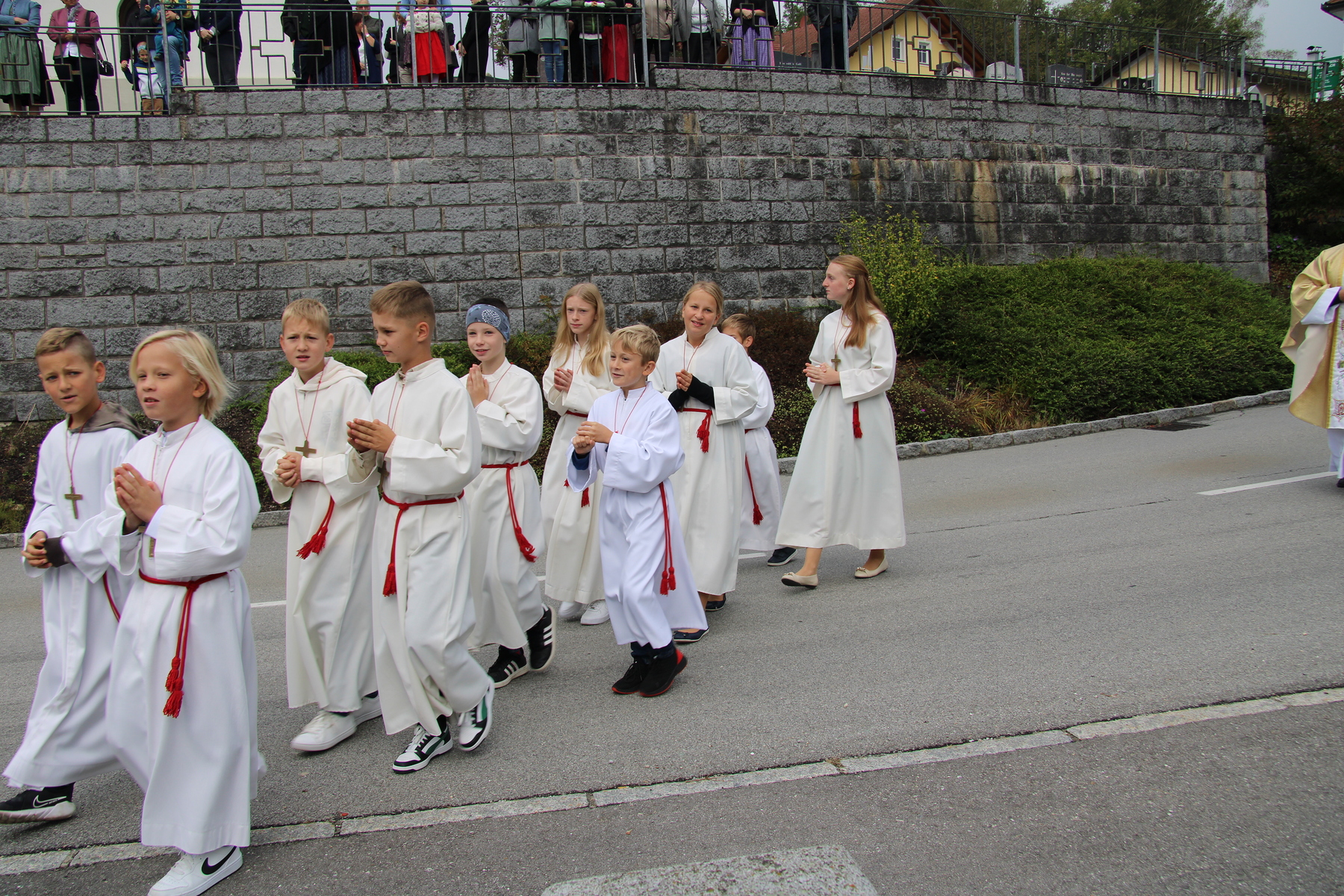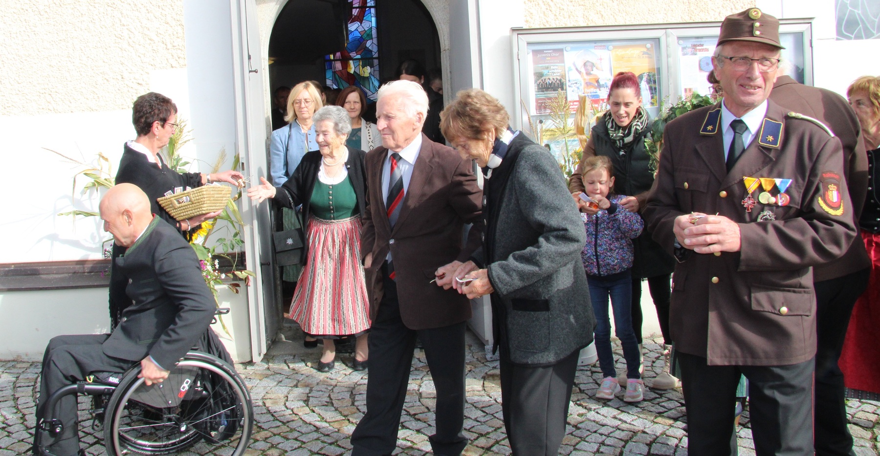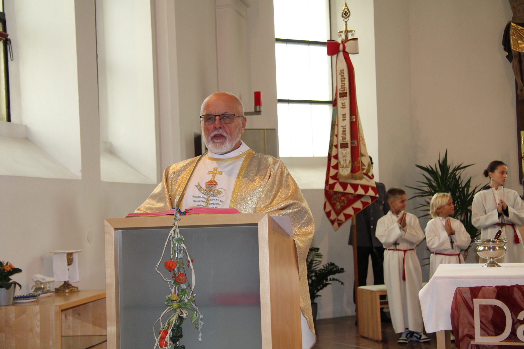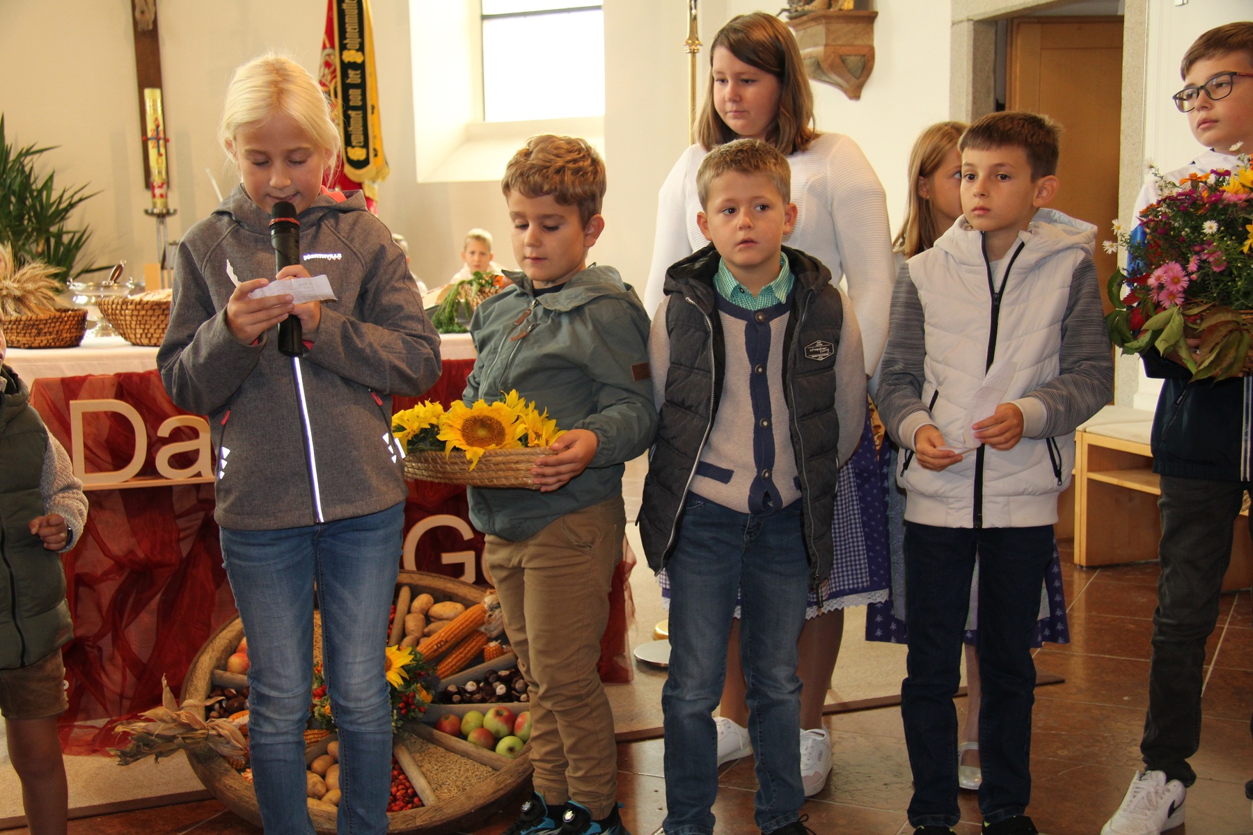 Am 29. September wurde in Rainbach das Erntedankfest gefeiert. Die Ortschaft Hauzing war in diesem Jahr für die Vorbereitung des Festes verantwortlich. In der Früh traf sich die Dorfgemeinschaft bei Fam. Moritz und zog in Begleitung der Feuerwehrmusikkapelle mit der Erntekrone zum Gemeindeplatz. In der Begrüßung durch die Dorfgemeinschaft wurde auf die Bedeutung des Erntedankfestes hingewiesen. Angesichts der vielen Krisen und sinnlosen Kriege weltweit und der zahlreichen Unwetter im heurigen Jahr in und um Österreich, die so viel Zerstörung und Leid gebracht haben, sollten wir uns wieder bewusst machen, dass vieles nicht so selbstverständlich ist, wie wir es gerne glauben. Wir sollten wieder mal bewusst Dankeschön sagen, dass wir in einem Land leben dürfen, wo Frieden herrscht, in einem Ort, der von Naturkatastrophen verschont wurde und in einer Gemeinde, wo der Zusammenhalt noch funktioniert. Ganz bewusst Dankeschön sagen für die verschiedensten Ernten in der Landwirtschaft und in den Gärten, Dankeschön für Familie und Freunde, Dankeschön für die Arbeit und den Arbeitsplatz - einfach wieder einmal Vergelt’s Gott sagen für’s Leben, das wünschte die Hauzinger Dorfgemeinschaft auf dem Gemeindeplatz der Pfarrbevölkerung. Nach der feierlichen Segnung der Erntekrone durch Pfarrer Kret und der musikalischen Umrahmung durch unseren Kirchchor, führte der feierliche Festzug, angeführt von der Feuerwehrmusikkapelle, in die Pfarrkirche. Dort wurde gemeinsam mit der gesamten Pfarrbevölkerung, der Feuerwehr, Kameradschaftsbund, Landjugend, Volksschulkinder und Goldhaubenfrauen gemeinsam gebetet, gesungen und gefeiert. Zur Gabenbereitung überbrachten Kinder Körbe mit Getreide, Brot, Gemüse und Obst, sowie Blumen. Als Erinnerungsgeschenk gab es kleine Gläser mit Honig und Ausmalbilder für die Kinder. Zum Abschluss bedankte sich Pfarrer Kret auch bei der älteren Gemeindebevölkerung, deren Ehrentag heuer wieder passenderweise mit dem Erntedankfest gefeiert wurde. Gemütlich klang das Erntedankfest beim Kirchenwirt aus, wo die die ältere Generation von der Gemeinde Rainbach zum Mittagessen eingeladen wurde.
