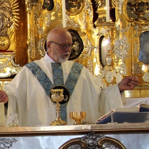 Um 10.30 Uhr war Hl. Messe mit unserem Pfarrer Thaddäus Kret . Nachmittags ging die Fahrt weiter nach Marktl. Dort hatten wir die Pfarrkirche St. Oswald mit dem Taufbecken ,in dem Joseph Ratzinger am Tag seiner Geburt getauft wurde besucht. Mit einer Andacht beendeten wir unsere Wallfahrt und es ging wieder zurück nach Rainbach