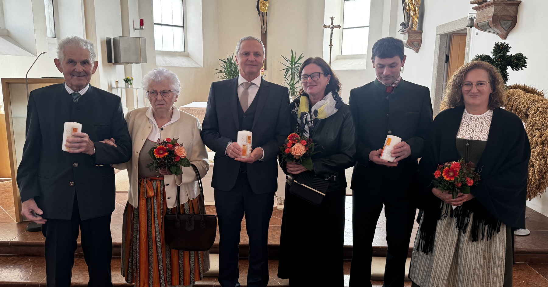 .Der festliche Gottesdienst wurde musikalisch vom Chor begleitet. Herr Pfarrer Thaddäus Kret segnete alle Jubelpaare und überreichte eine Kerze der Pfarre.