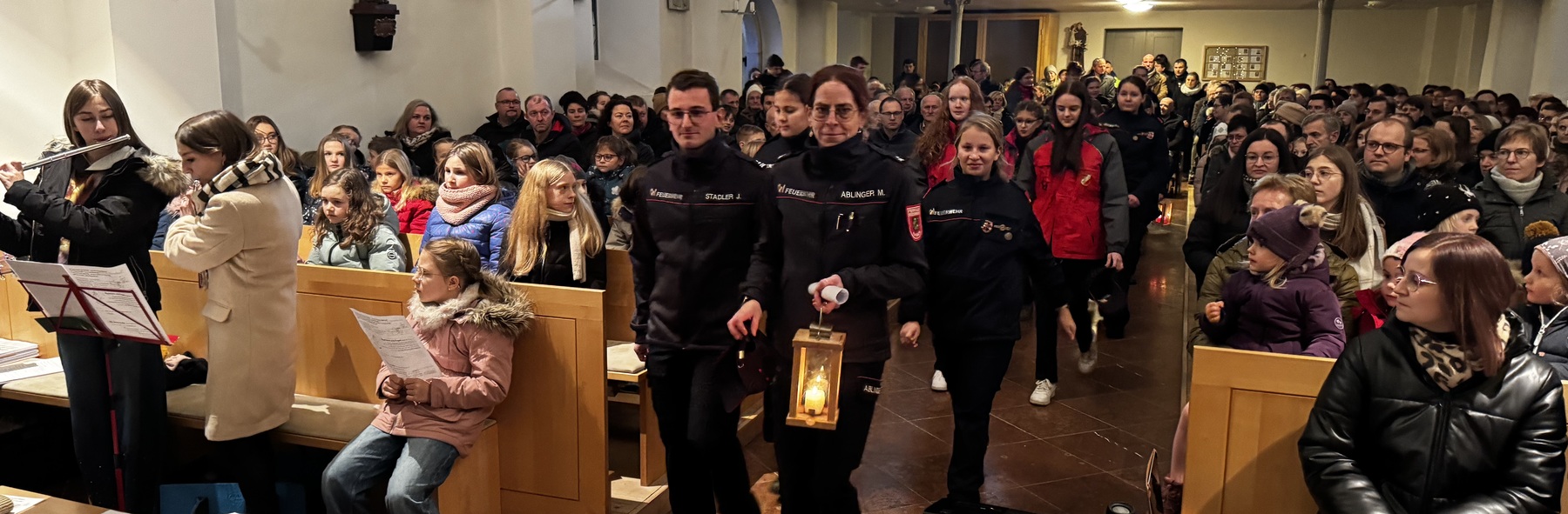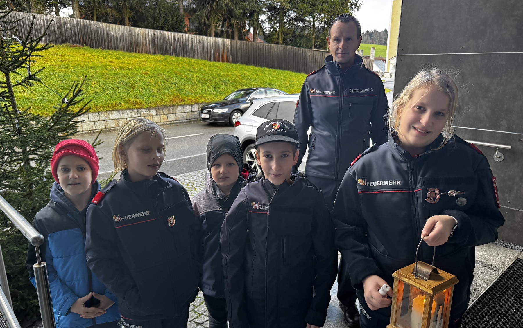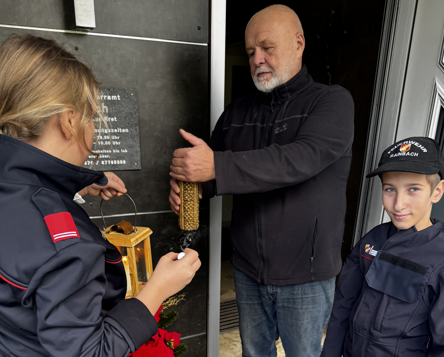 Am Dienstagvormittag brachten Mitglieder der Feuerwehrjugend der Freiwilligen Feuerwehr Rainbach das Friedenslicht nach Rainbach: Eder Marlies und Moritz Alexander übergaben das leuchtende Weihnachtssymbol an Pfarrer Thaddäus und am Abend feierlich in der Kirche