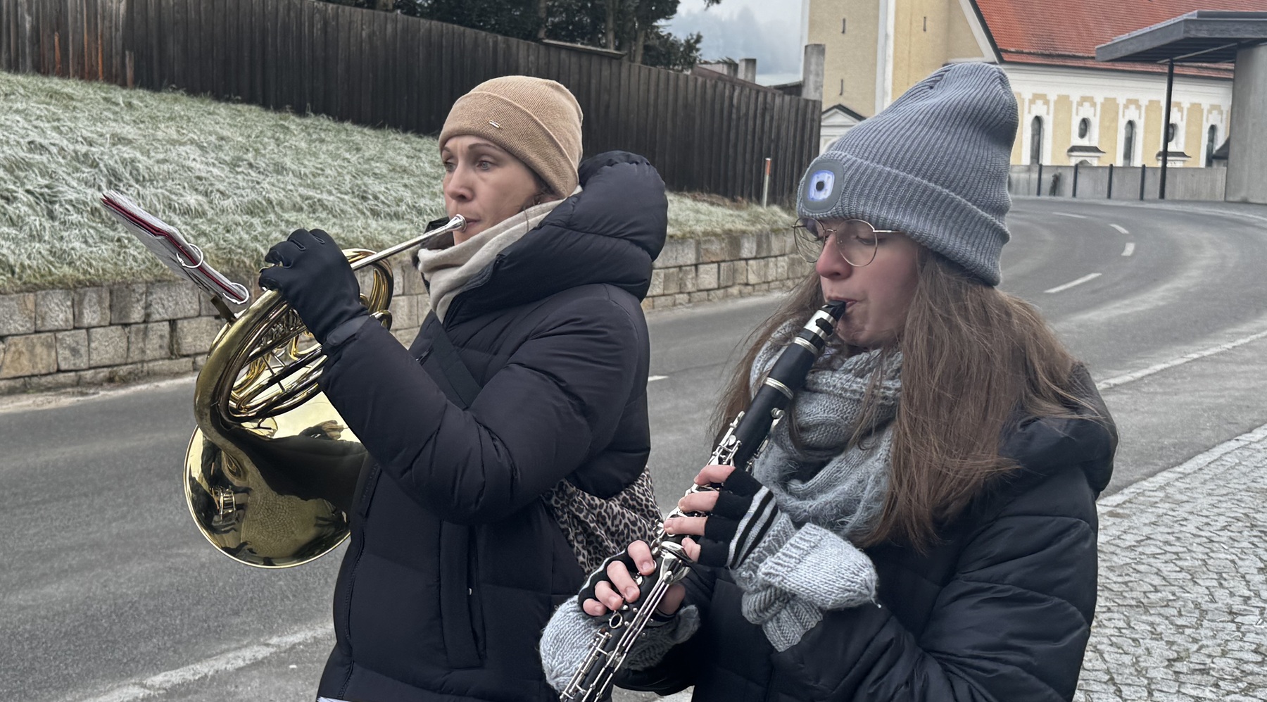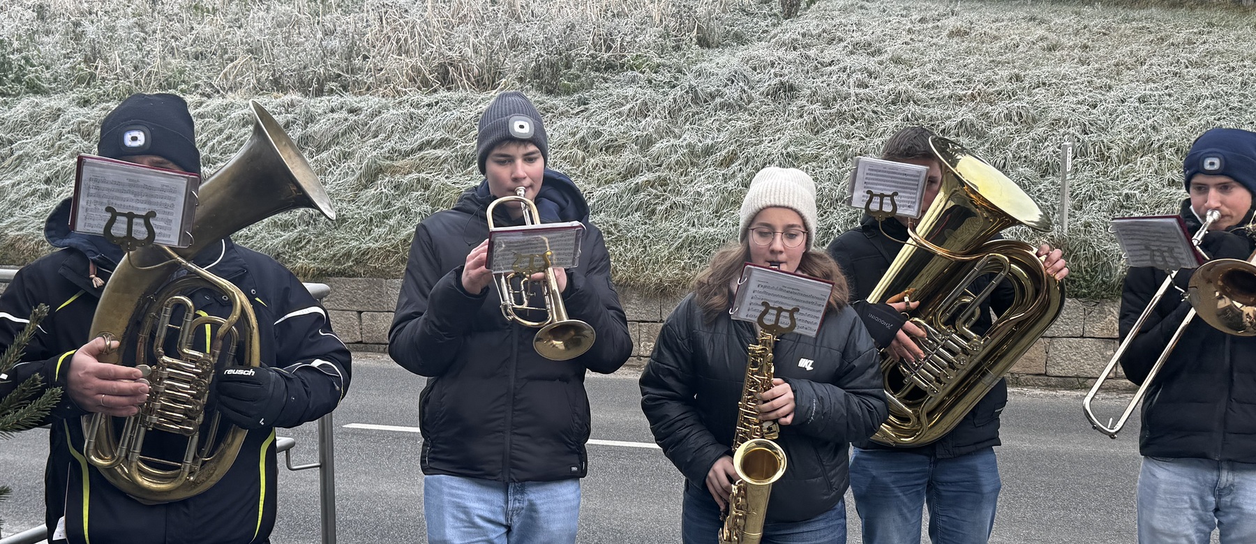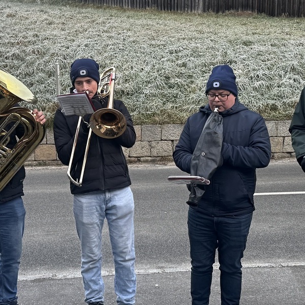 Auch heuer ist die Musikkapelle Rainbach zum Neujahrsanblasen unterwegs. Sie brachten mit ihren Blasinstrumenten Neujahrswünsche für den Pfarrer Thaddäus Dankeschön !