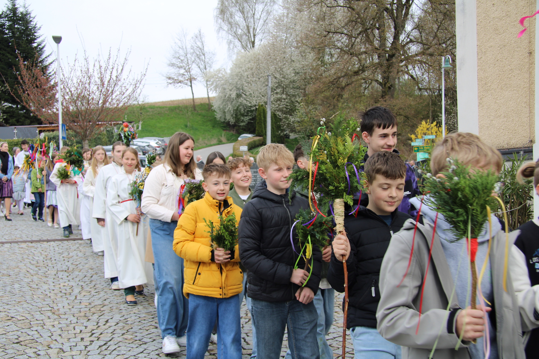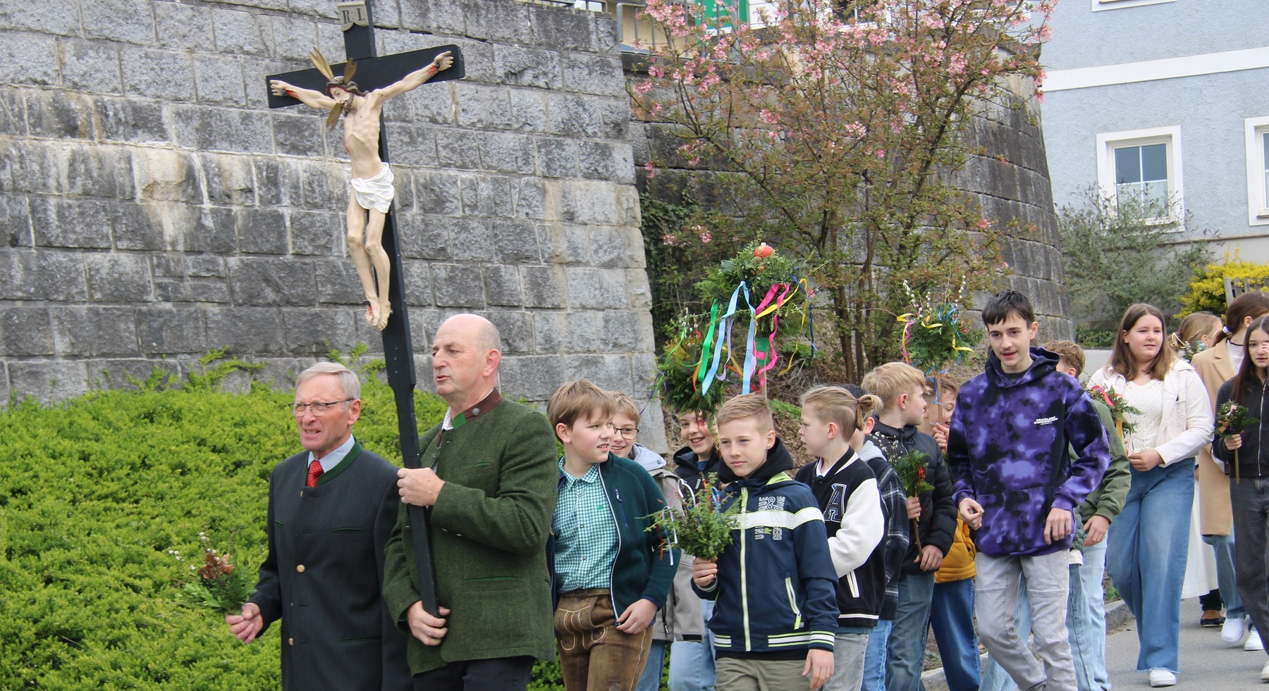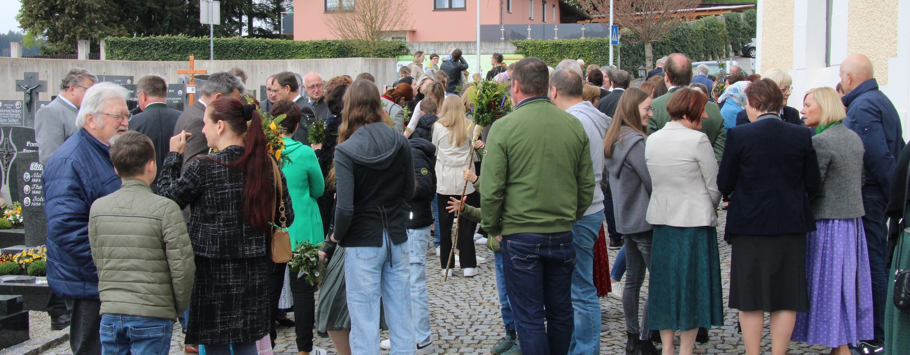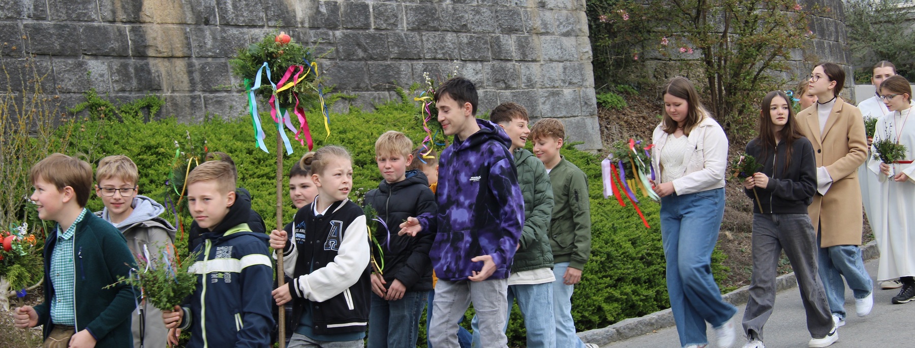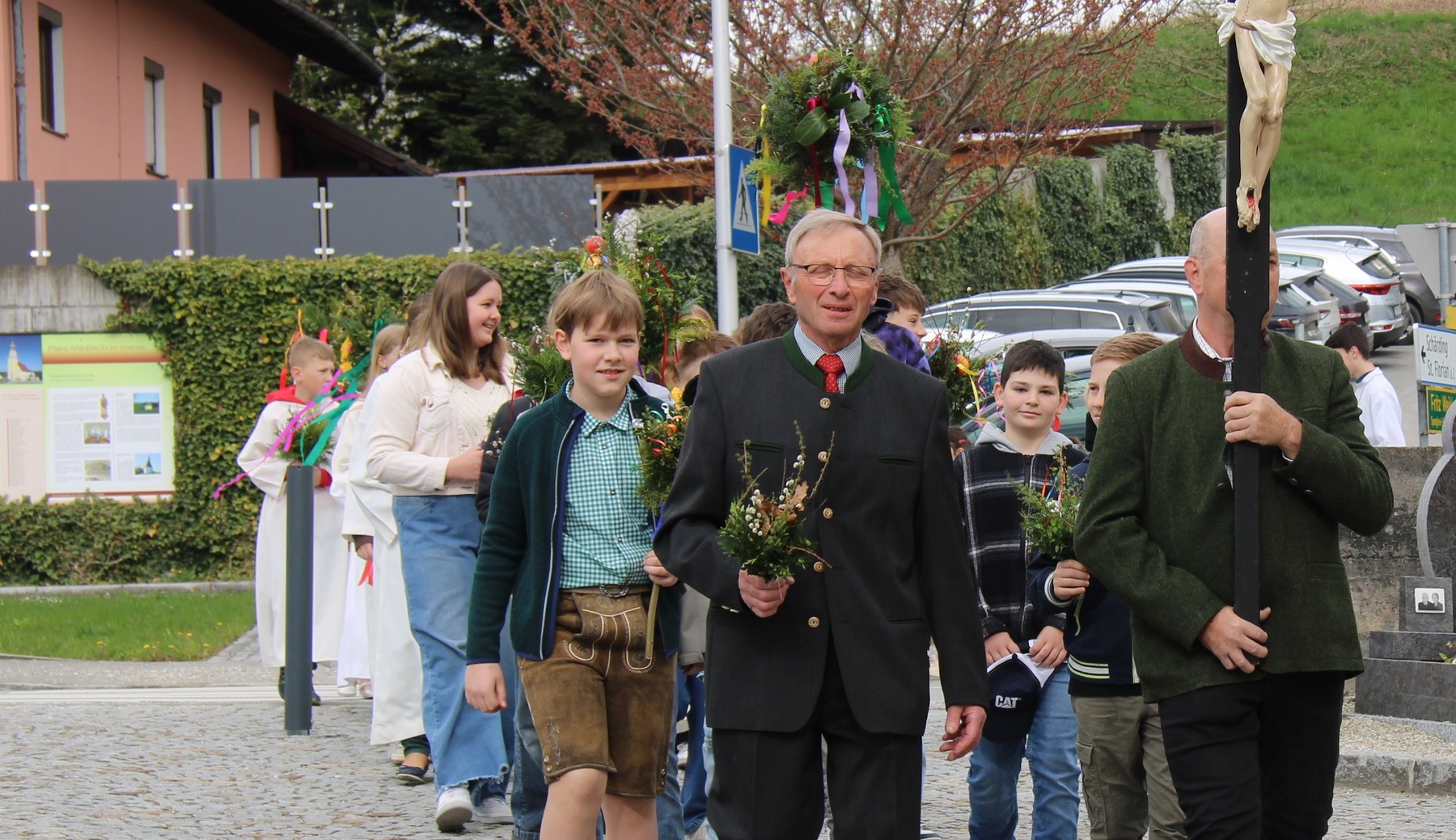 Jesus zieht auf einem Esel in Jerusalem ein und wird von den Menschen wie ein König geehrt. In Erinnerung daran zog unsere Pfarrgemeinde auch heuer wieder in einer feierlichen Prozession von der Gemeindeplatz zur Pfarrkirche, wo eine feierliche Messe stattfand.