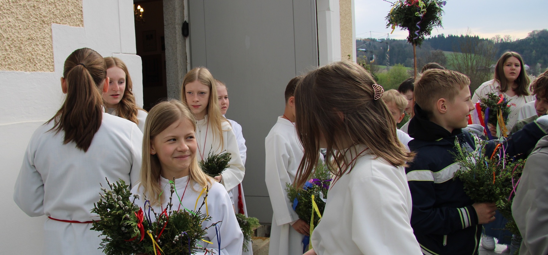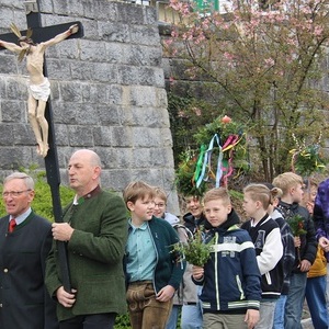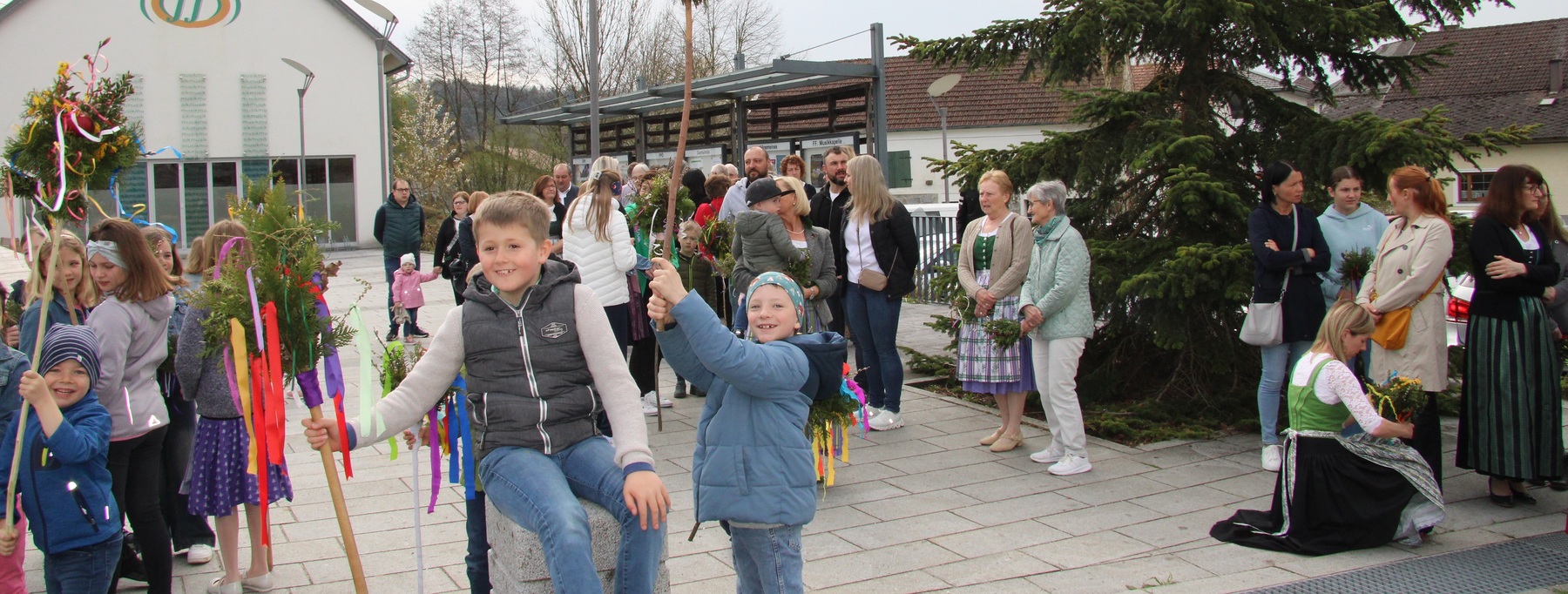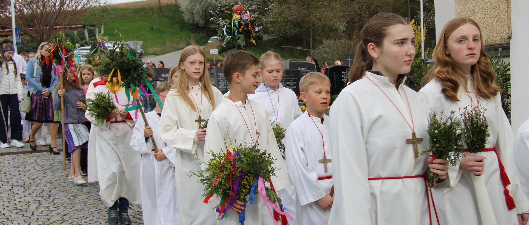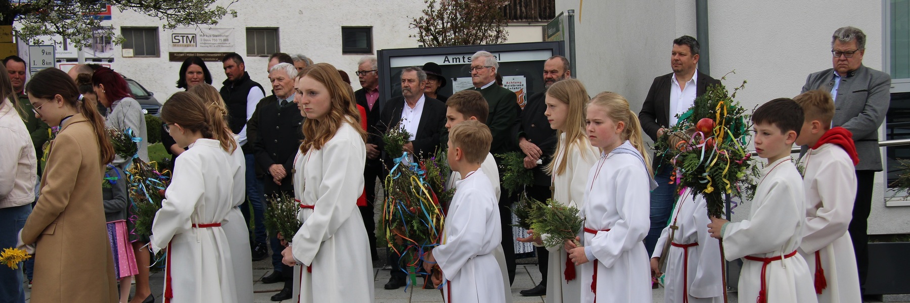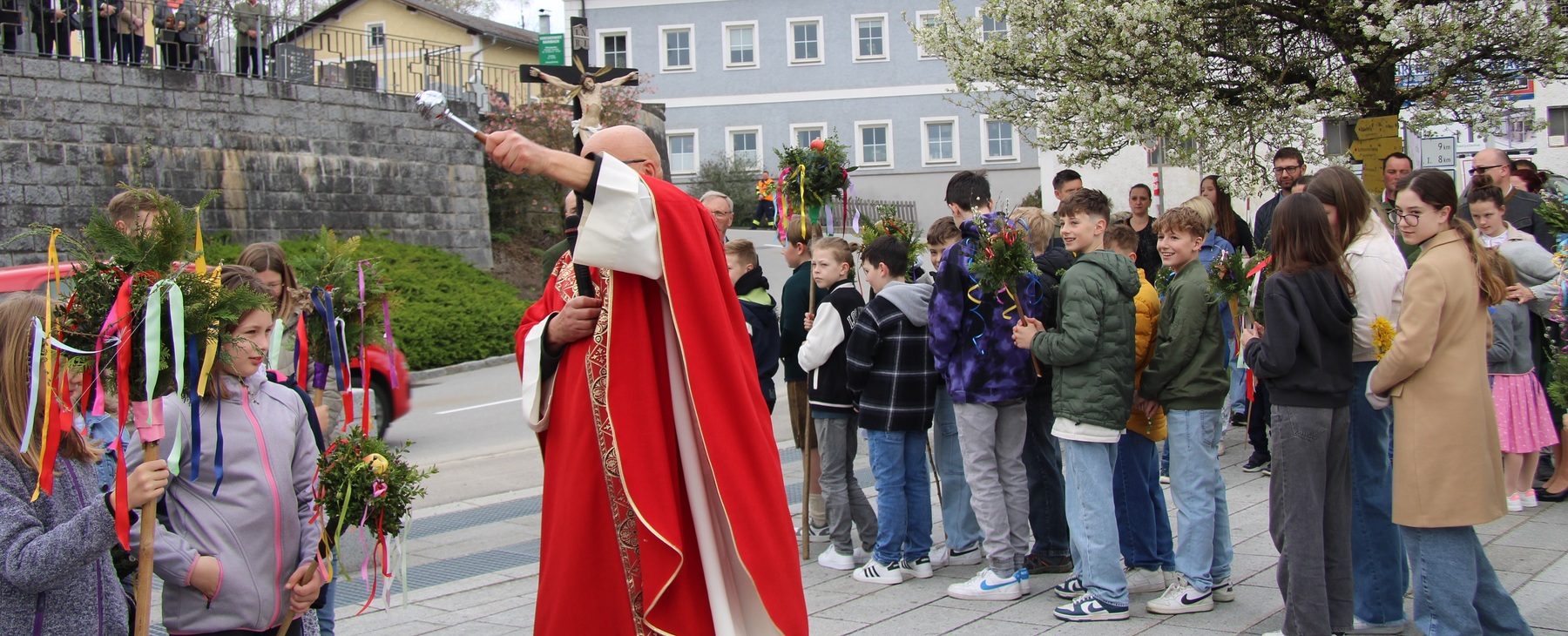 Jesus zieht auf einem Esel in Jerusalem ein und wird von den Menschen wie ein König geehrt. In Erinnerung daran zog unsere Pfarrgemeinde auch heuer wieder in einer feierlichen Prozession von der Gemeindeplatz zur Pfarrkirche, wo eine feierliche Messe stattfand.