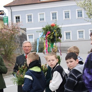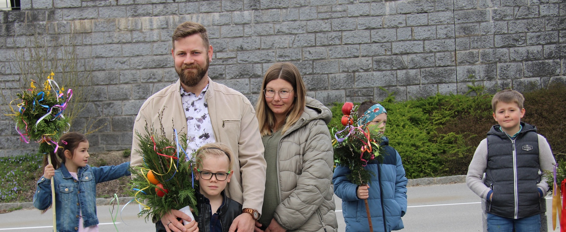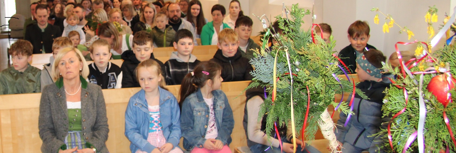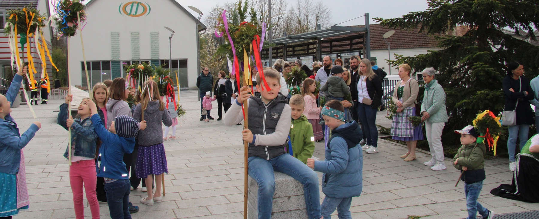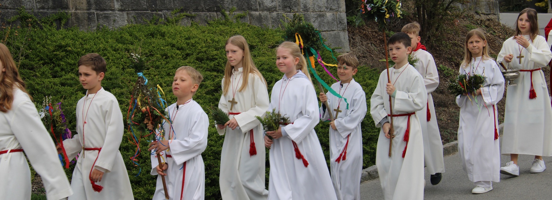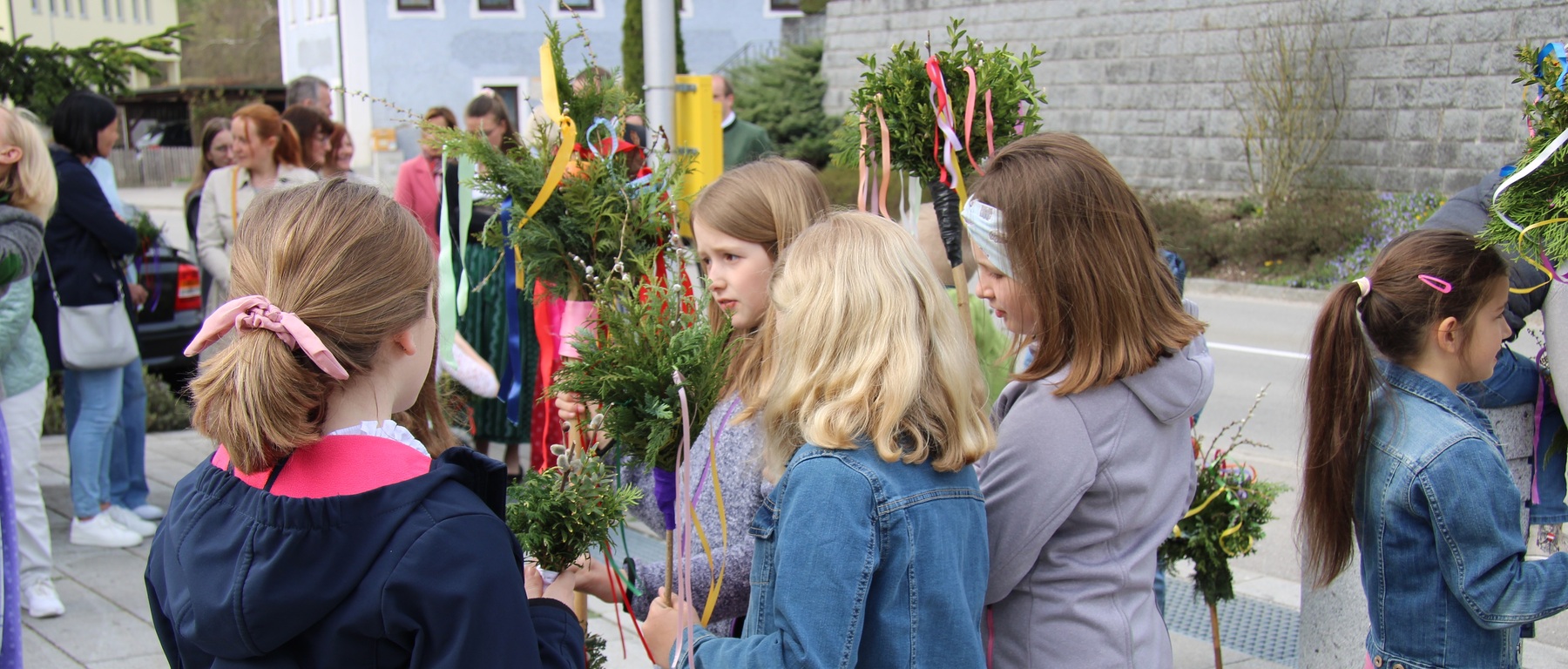 Jesus zieht auf einem Esel in Jerusalem ein und wird von den Menschen wie ein König geehrt. In Erinnerung daran zog unsere Pfarrgemeinde auch heuer wieder in einer feierlichen Prozession von der Gemeindeplatz zur Pfarrkirche, wo eine feierliche Messe stattfand.