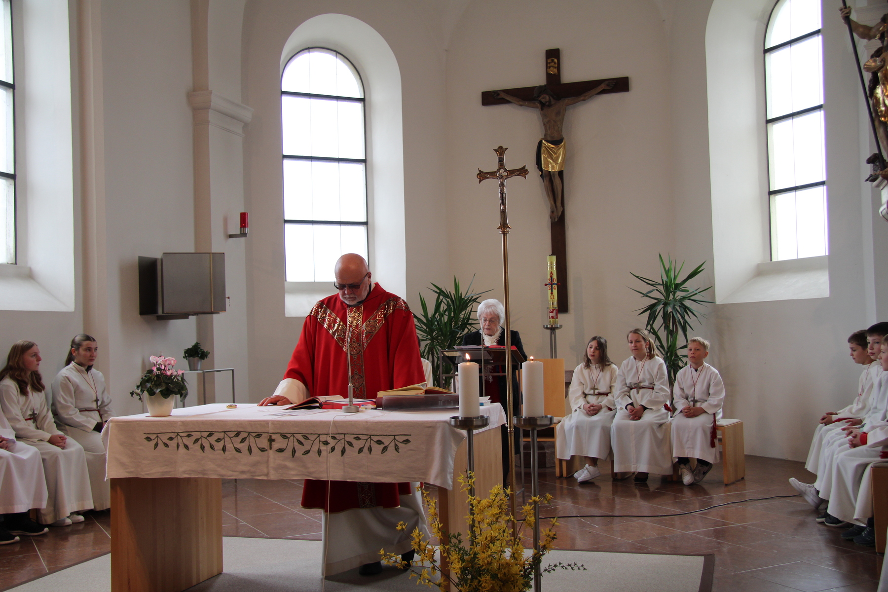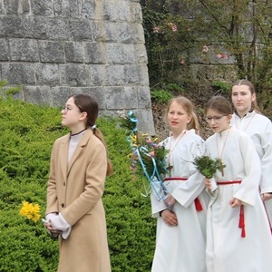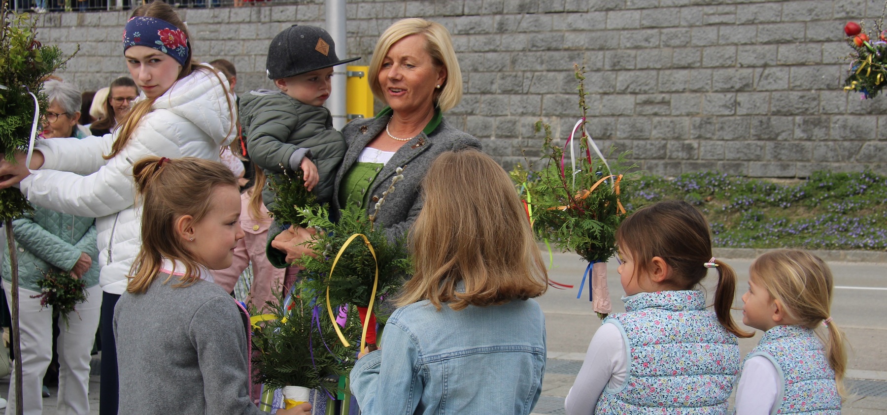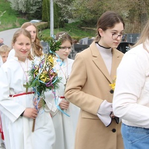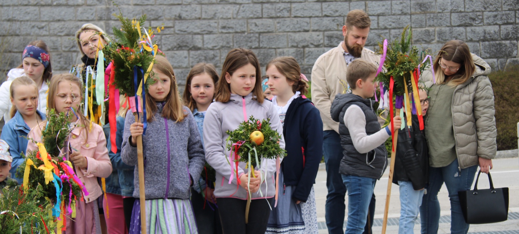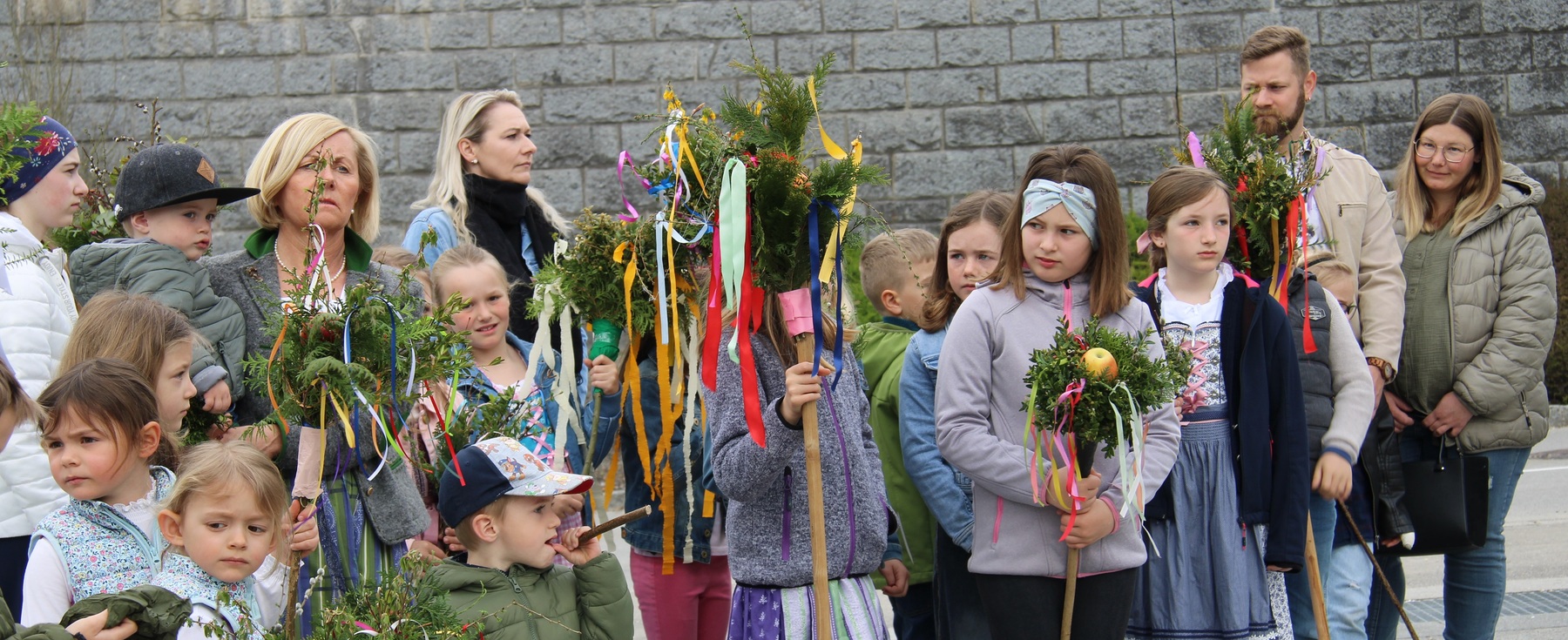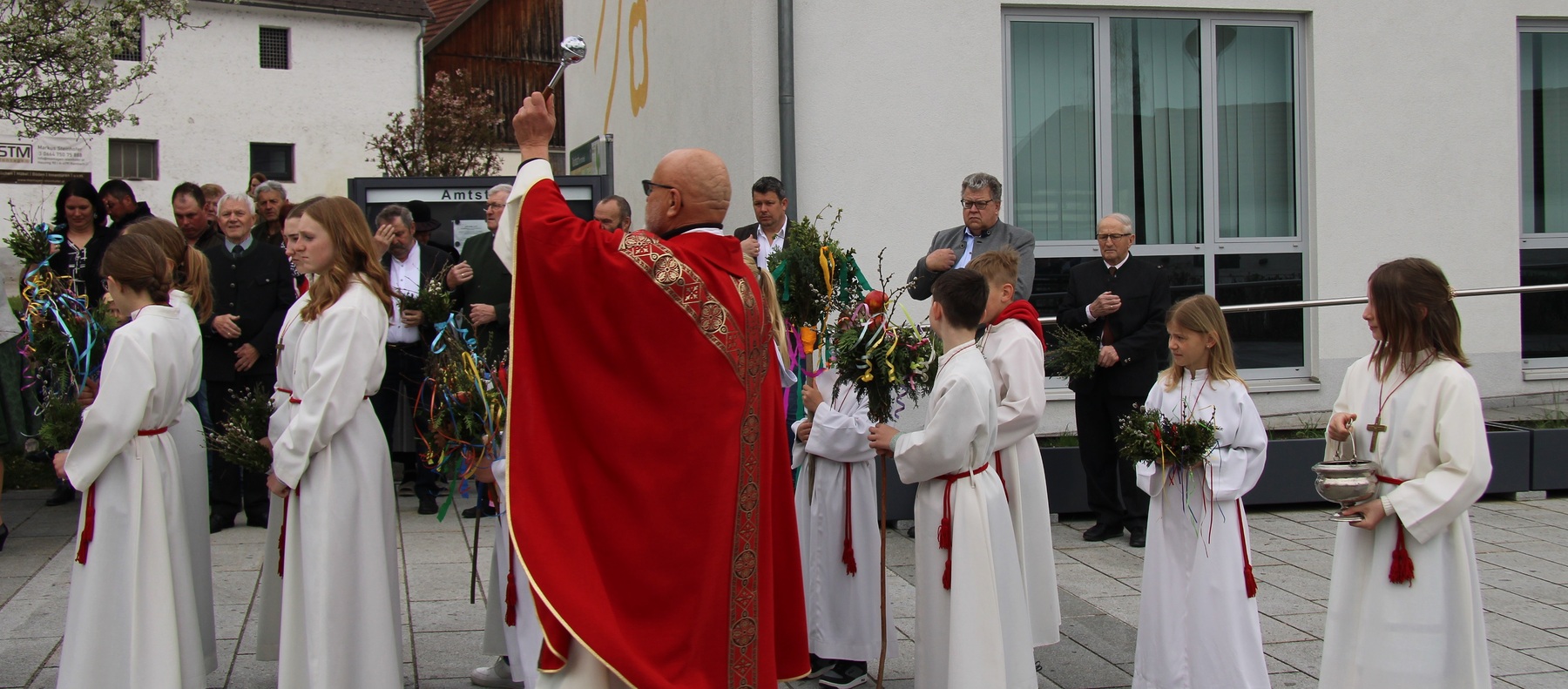 Jesus zieht auf einem Esel in Jerusalem ein und wird von den Menschen wie ein König geehrt. In Erinnerung daran zog unsere Pfarrgemeinde auch heuer wieder in einer feierlichen Prozession von der Gemeindeplatz zur Pfarrkirche, wo eine feierliche Messe stattfand.