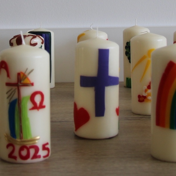 Firmlinge verzieren Kerzen für ältere und kranke Menschen