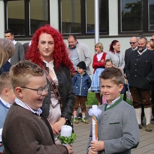 Die Musikkapelle Rainbach begleitete die Kinder zur Kirche. Pfarrer Thaddäus leitete den Gottesdienst, gesanglich wurden die Kinder vom Volkschule Rainbach unterstützt.