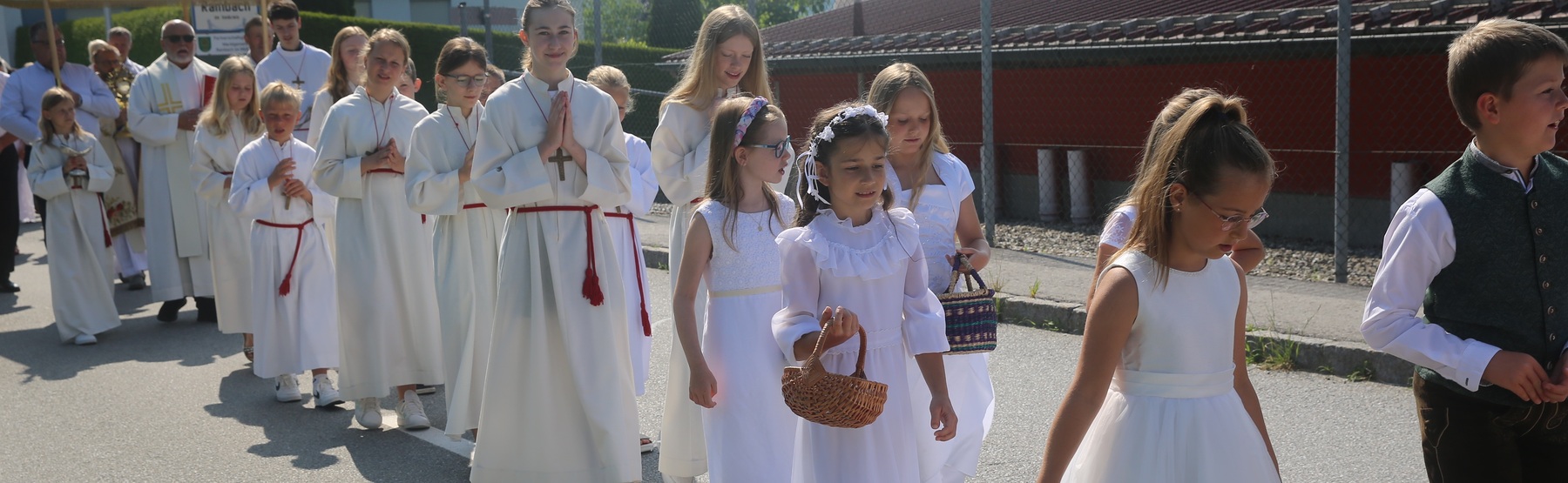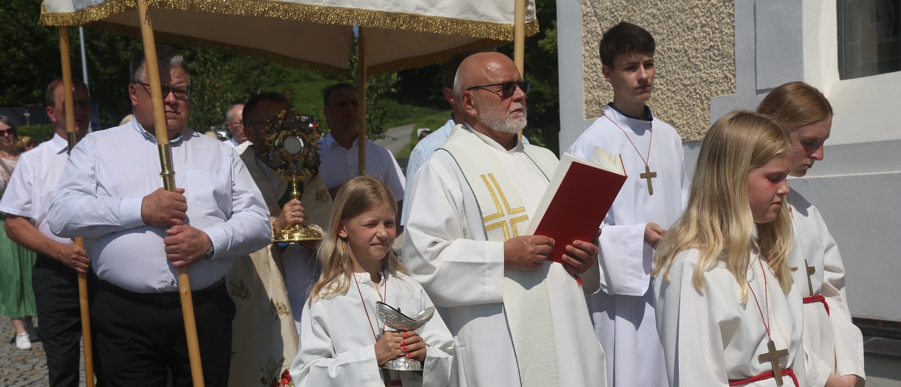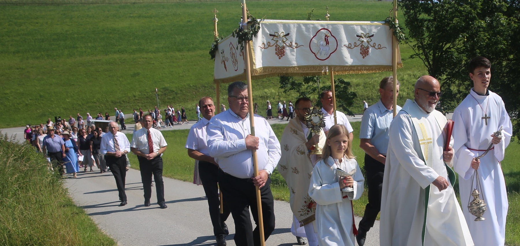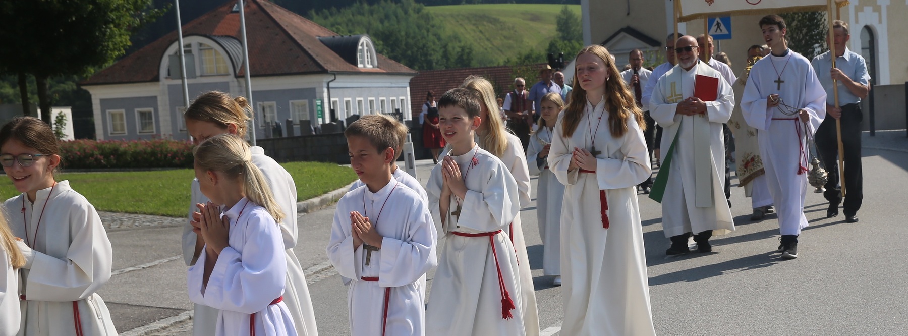 Am heutigen Fronleichnamstag durften wir die heilige Messe mit anschließender Prozession bei strahlendem Sonnenschein feiern. Ganz herzlich bedankt sich die Pfarre bei den teilnehmenden Vereinen und den Erstkommunionkindern fürs mitfeiern. Der Musikkapelle und dem Kirchenchor für die feierliche musikalische Umrahmung ein herzliches Dankeschön. Danke auch an die Ministranten, der Mesnerin, den Vorbetern und den Himmelträgern für ihren Dienst. Die Birken wurden von Hauzinger Franz gespendet und von den Zechpröbsten aufgestellt - danke dafür. Ein besonderer Dank gilt heuer Diakon Diesenberger Thomas für das Tragen der Monstranz. All jenen welche die Altäre vorbereitet haben, ebenfalls ein herzlicher Vergelts Gott. Zuletzt ein Danke an unseren Fotographen und alle die Mitgefeiert haben.