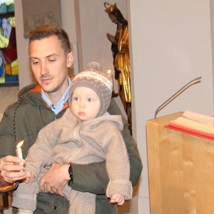 Die Segnung der Täuflinge des vergangenen Jahres nahm Pf. Thaddäus beim fröhlichen Gottesdienst am 1. Februar 2026 vor. Der Kirchenraum pulsierte mit dem Geplapper,oder Quengeln der jüngsten Pfarrmitglieder.