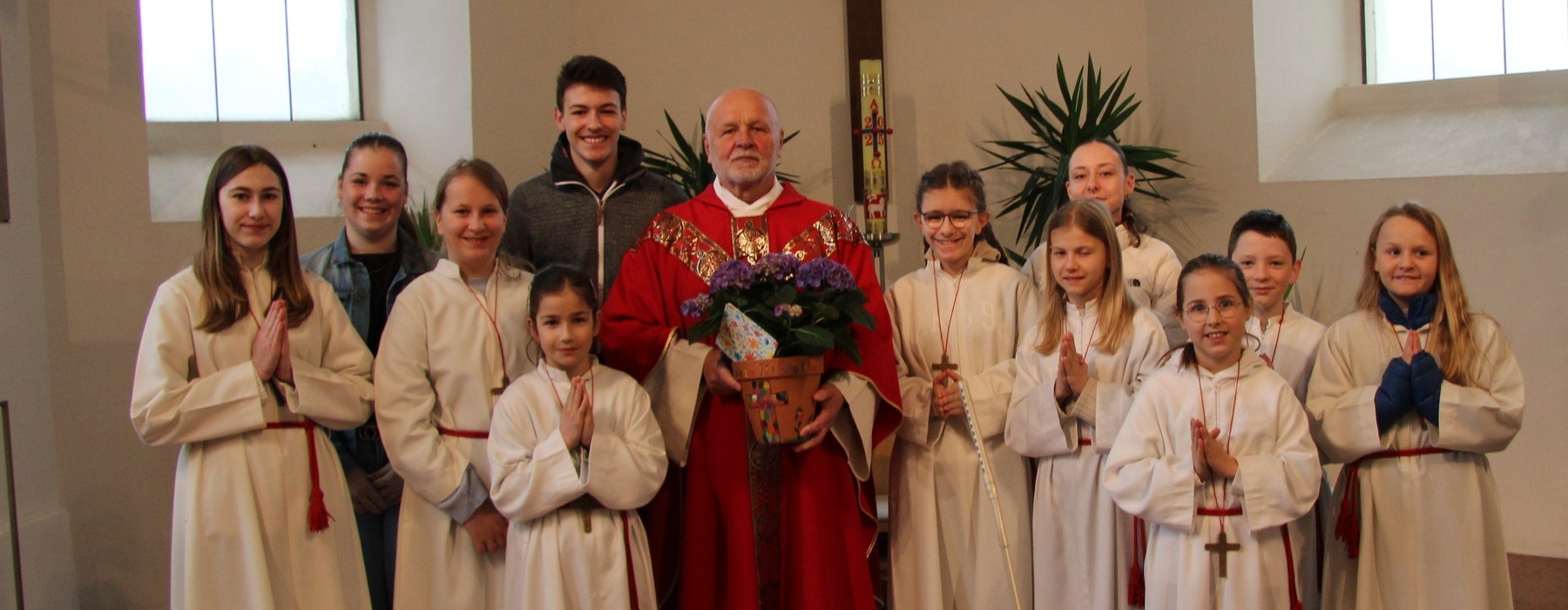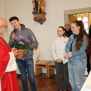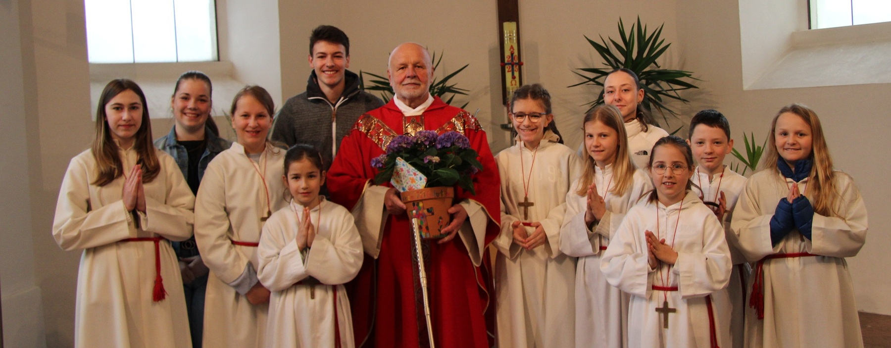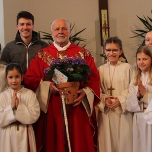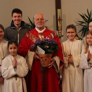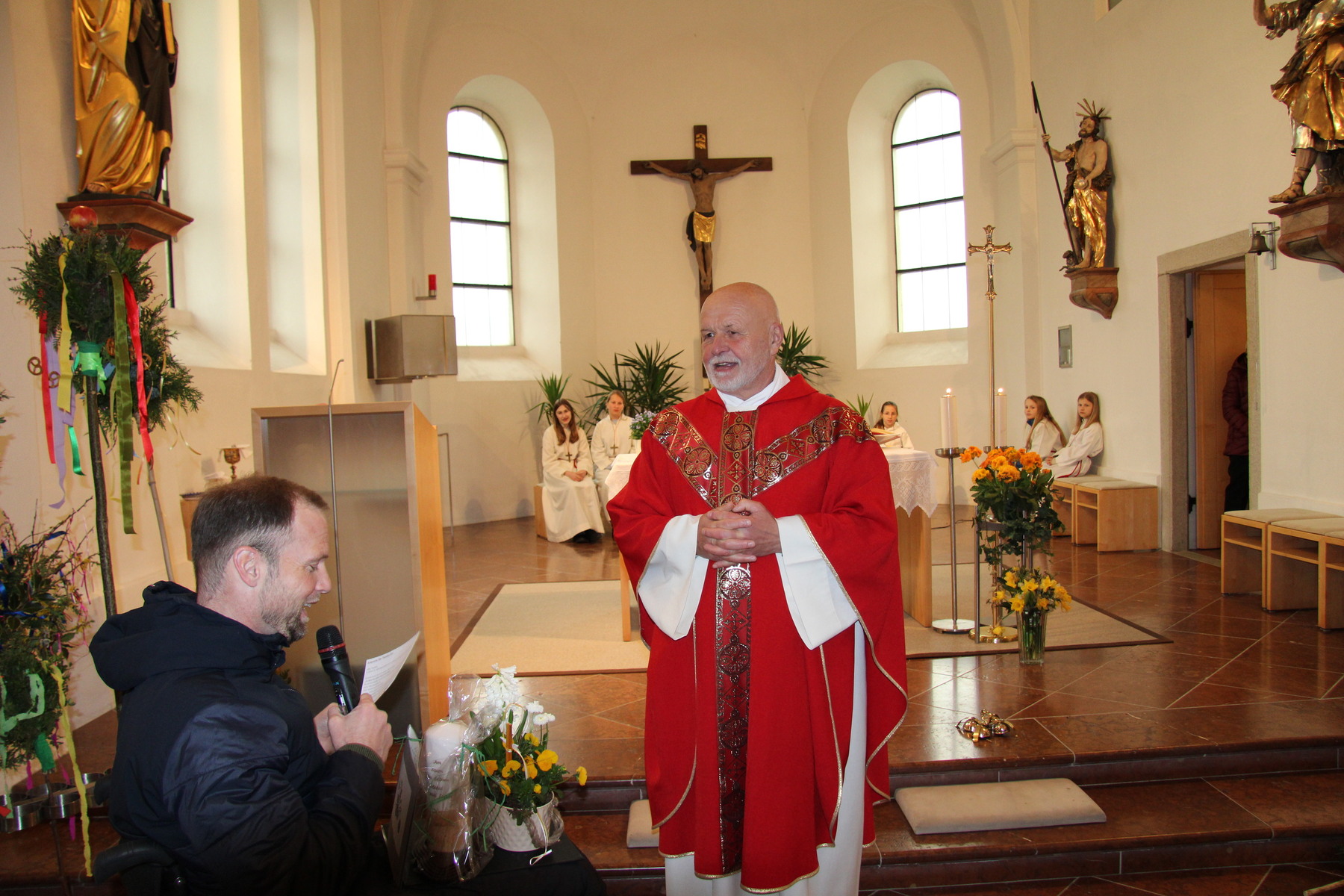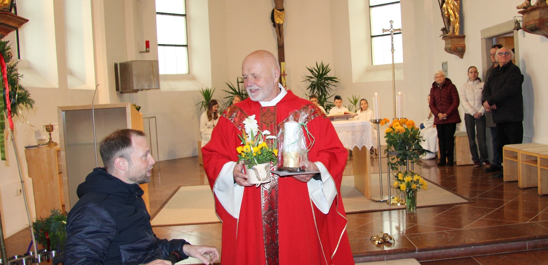 Wir möchten Dir aber auch DANKE sagen. DANKE für Deinen unermüdlichen Einsatz in unserer Pfarre und für Dein Wirken, mit dem Du uns Gottes Nähe immer wieder spüren lässt. DANKE für die Zeit, die Du mit „Deiner“ Pfarrgemeinde verbringst, sei es bei besinnlichen Feiern , aber auch bei den zahlreichen unterhaltsamen Veranstaltungen in unserem Ort. Dass Du „ein Pfarrer für ALLE“ bist, zeigt auch die Tatsache, dass Dir heute nicht nur wir, sondern auch die Pfarremeinde Rainbach und viele mehr gratulieren. Wir hoffen, dass Du Dich über unser kleines Geburtstagsfest gefreut hast und dass Du uns noch viele Jahre als „unser lieber Herr Pfarrer“ erhalten bleibst.