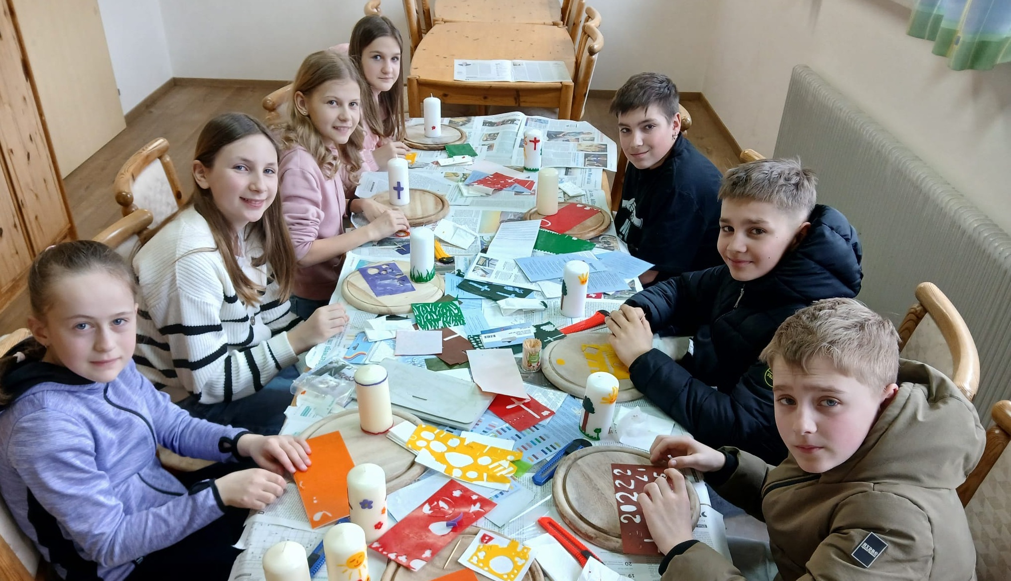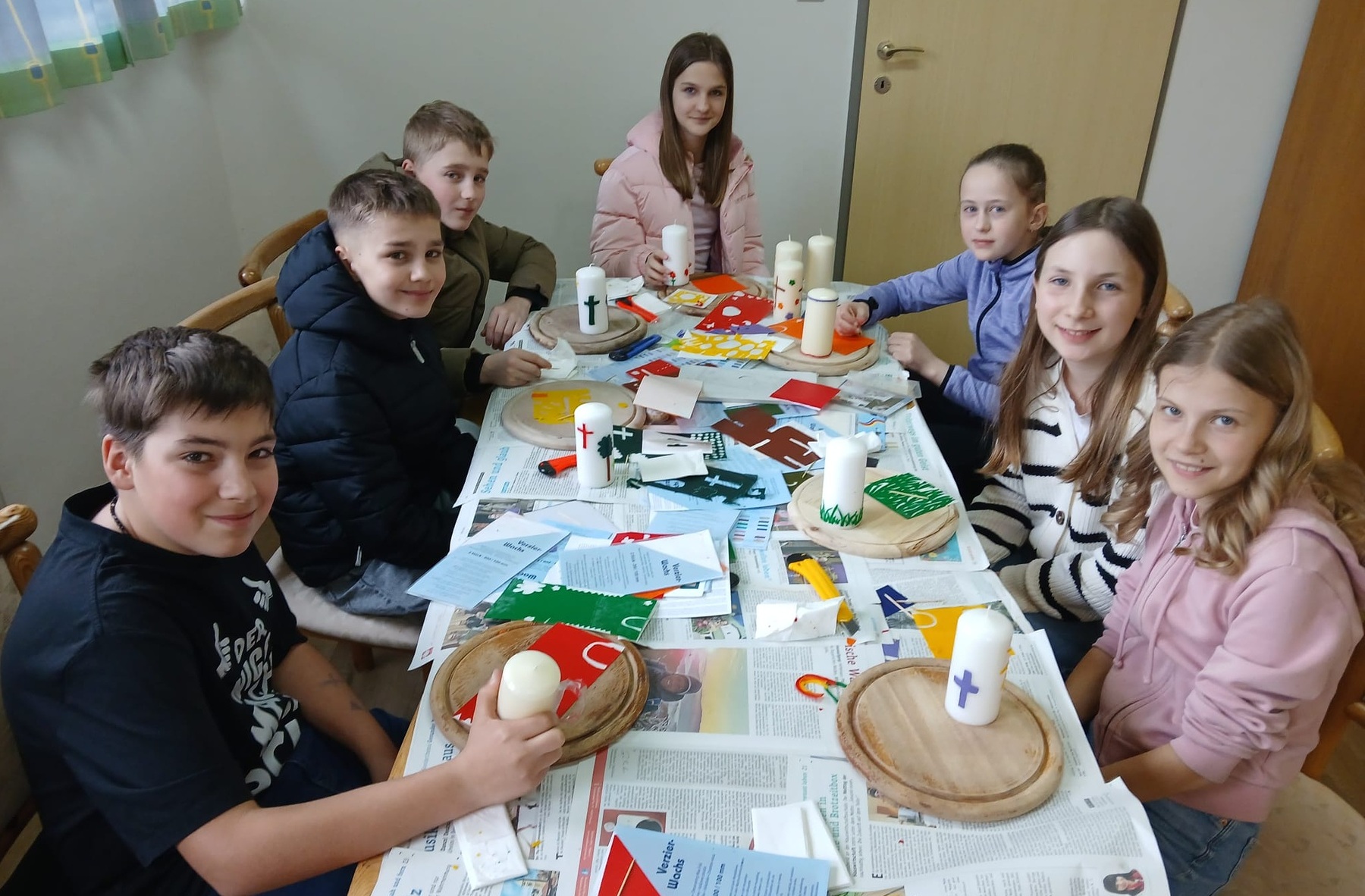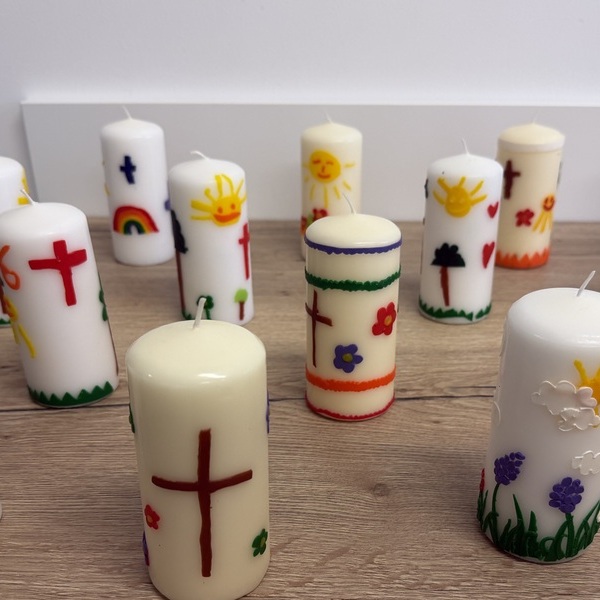 Firmlinge verzieren Kerzen für ältere und kranke Menschen