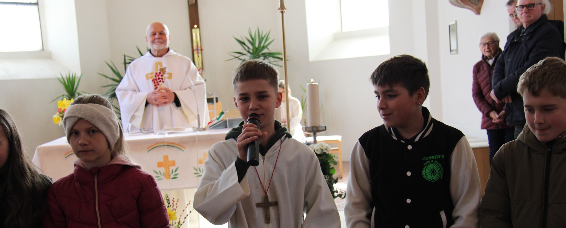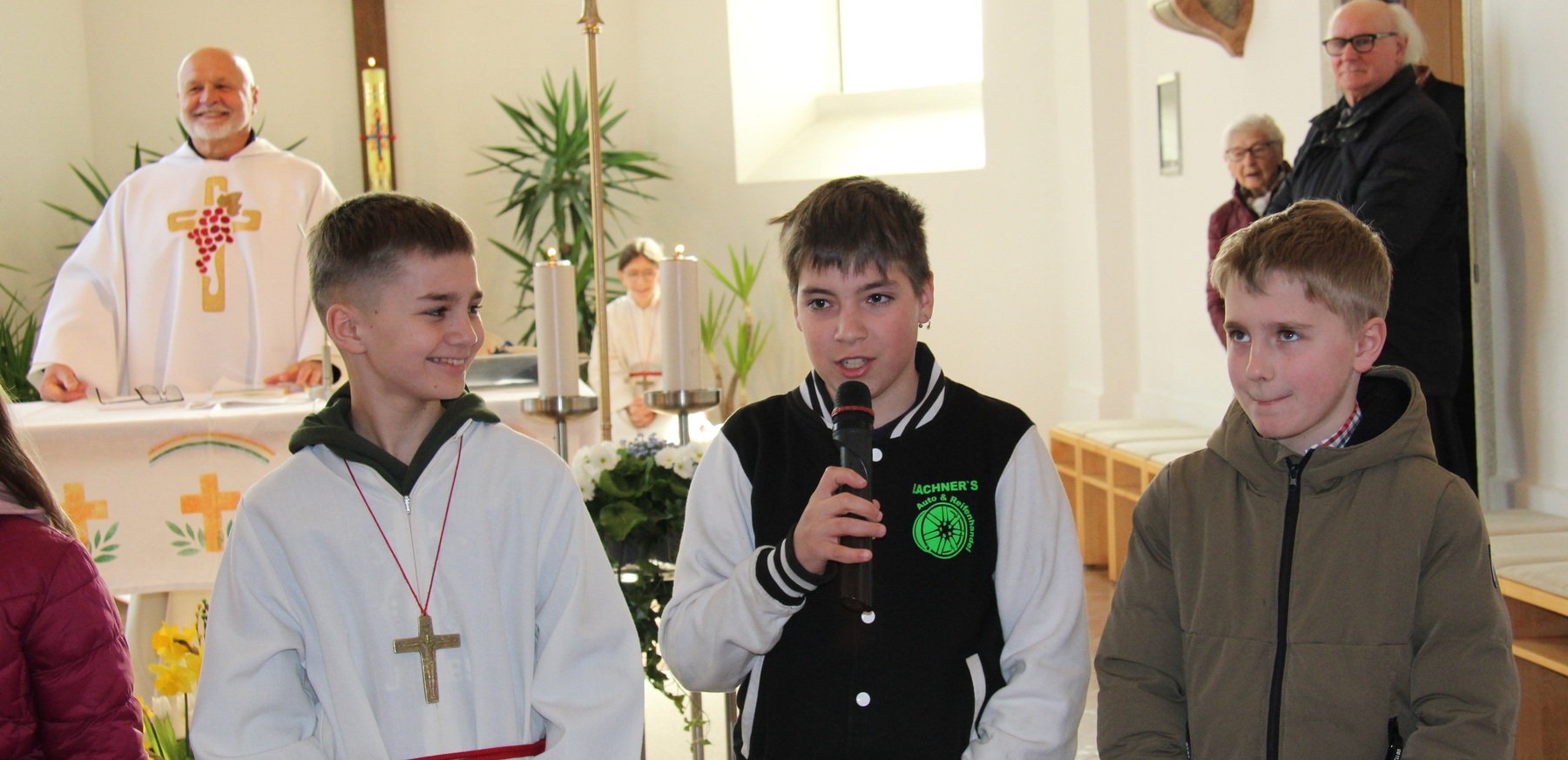 Am Ostermontag , dem 6.April durften sich die Firmlinge in der Pfarrkirche vorstellen. Unserer Lieber Pfarrer Thaddäus begrüßte die Firmlinge mit Ihren Eltern, Großeltern und Paten